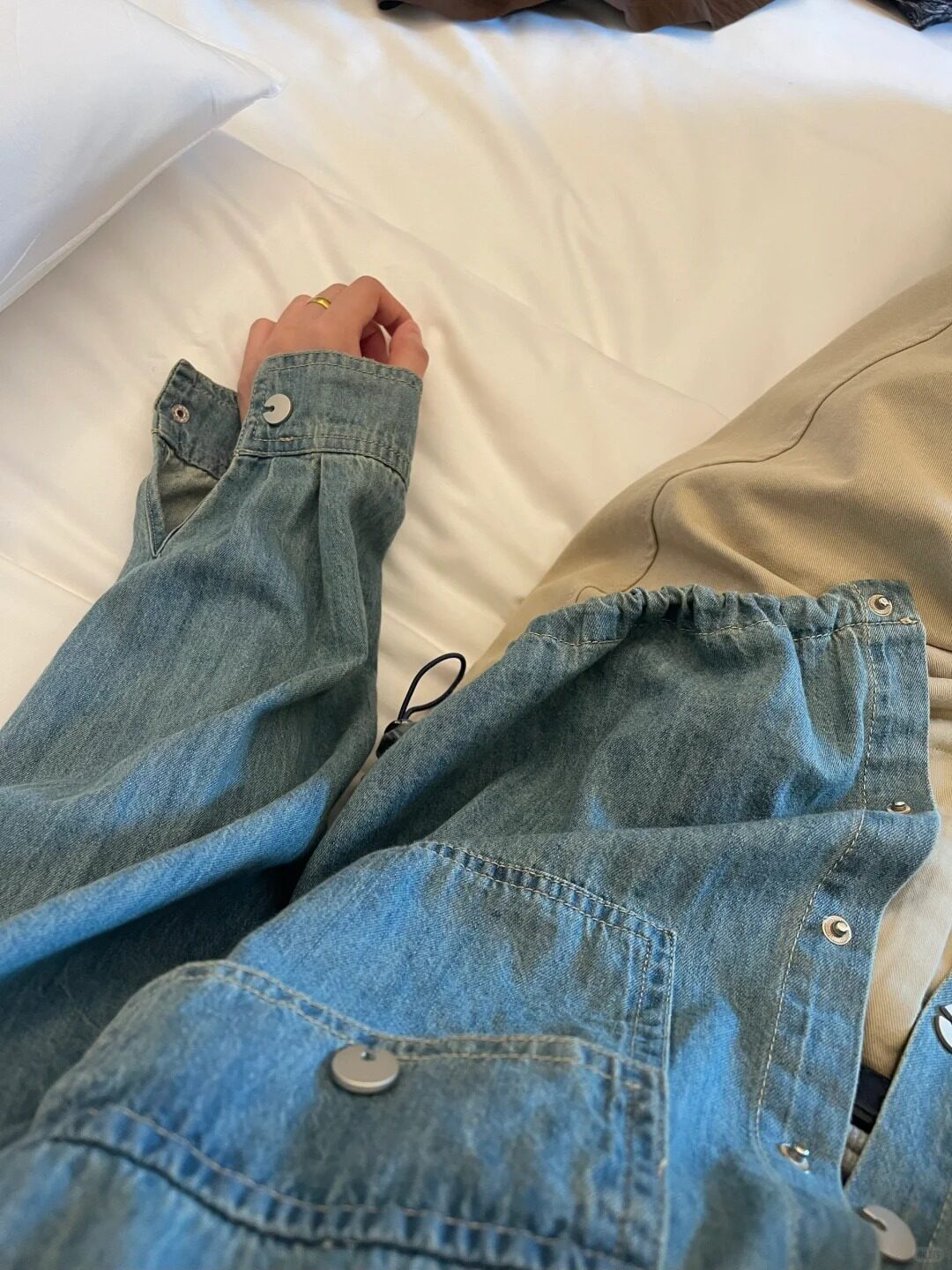 Korean Retro High-End Washed Denim Shirt for Women 2025 Autumn New Korean Style Casual Drawstring Short Top