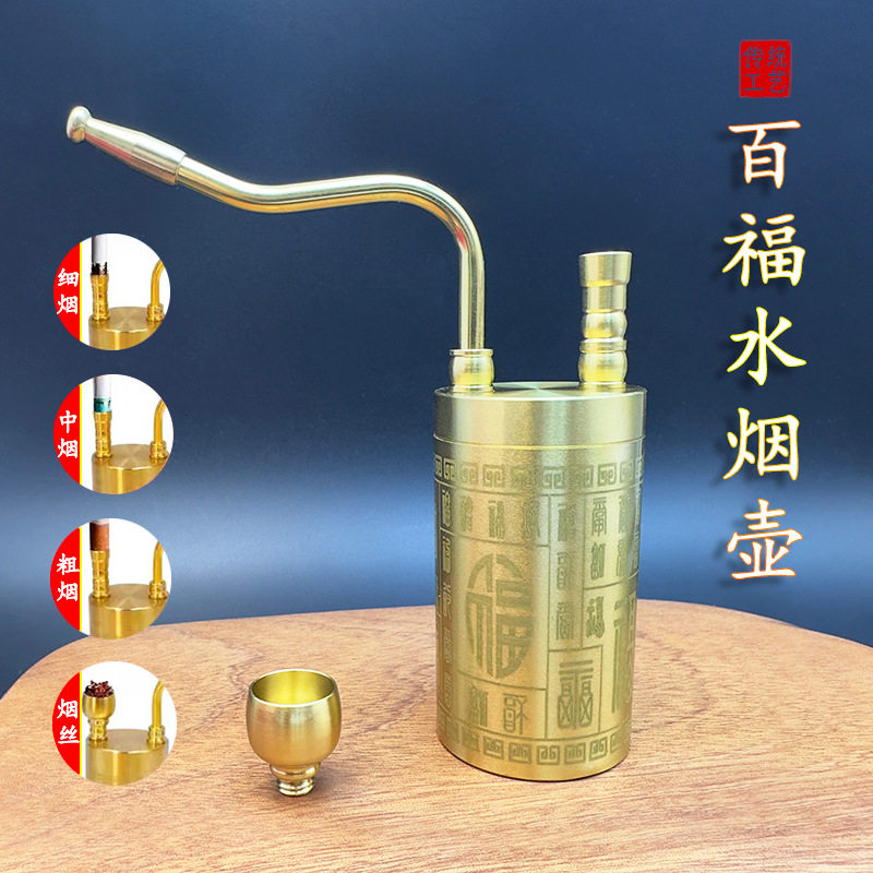 Brass Smoking Pipe with Detachable Water Filter, High-End Decorative Smoking Pipe, Traditional Style
