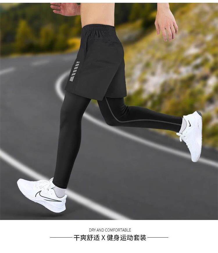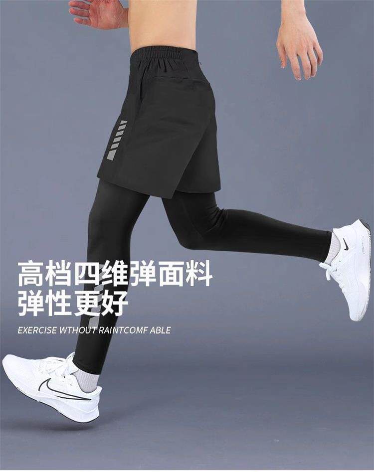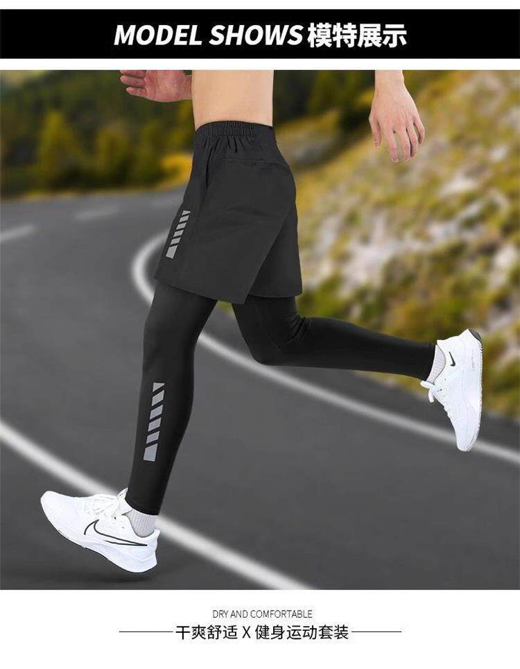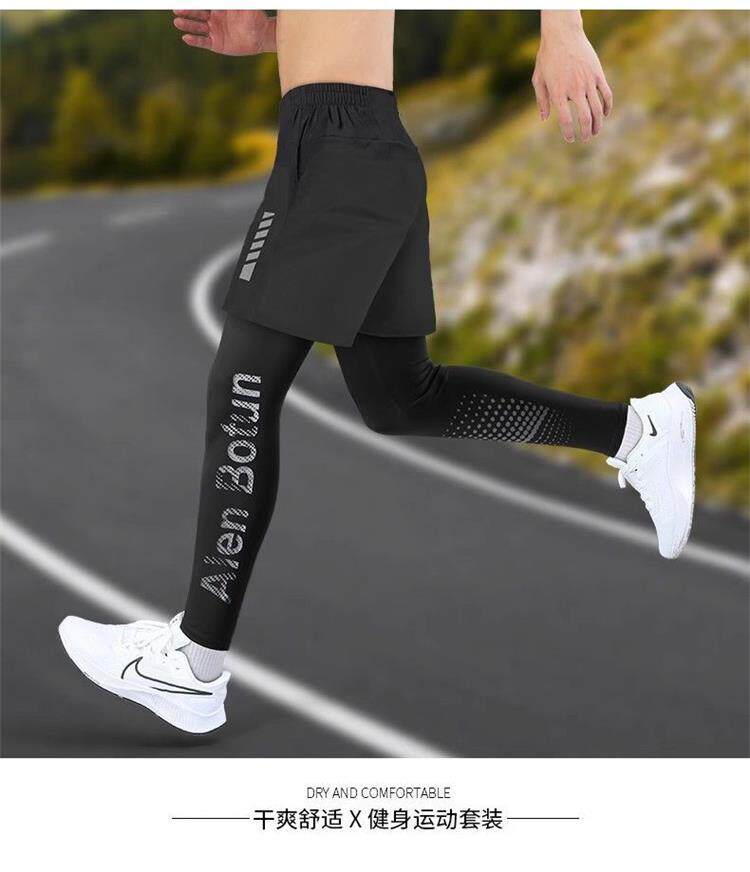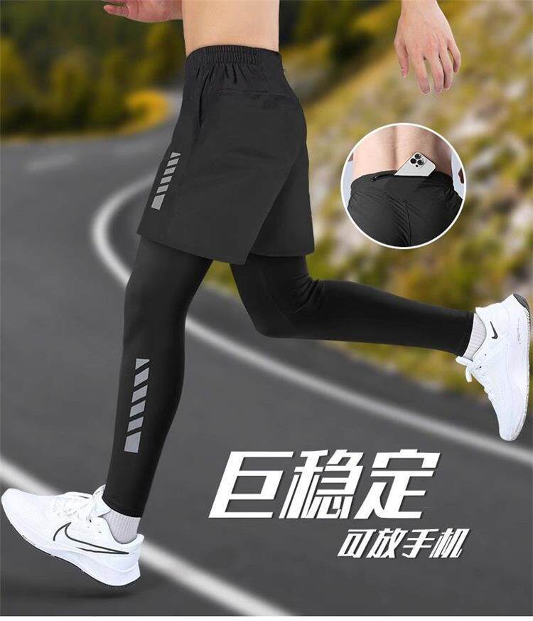 Fake Two-Piece Running Pants for Men, Can Hold a Phone, Autumn and Winter Quick-Drying Tight-Fitting Sports Long Pants, Marathon Fitness Training Pants