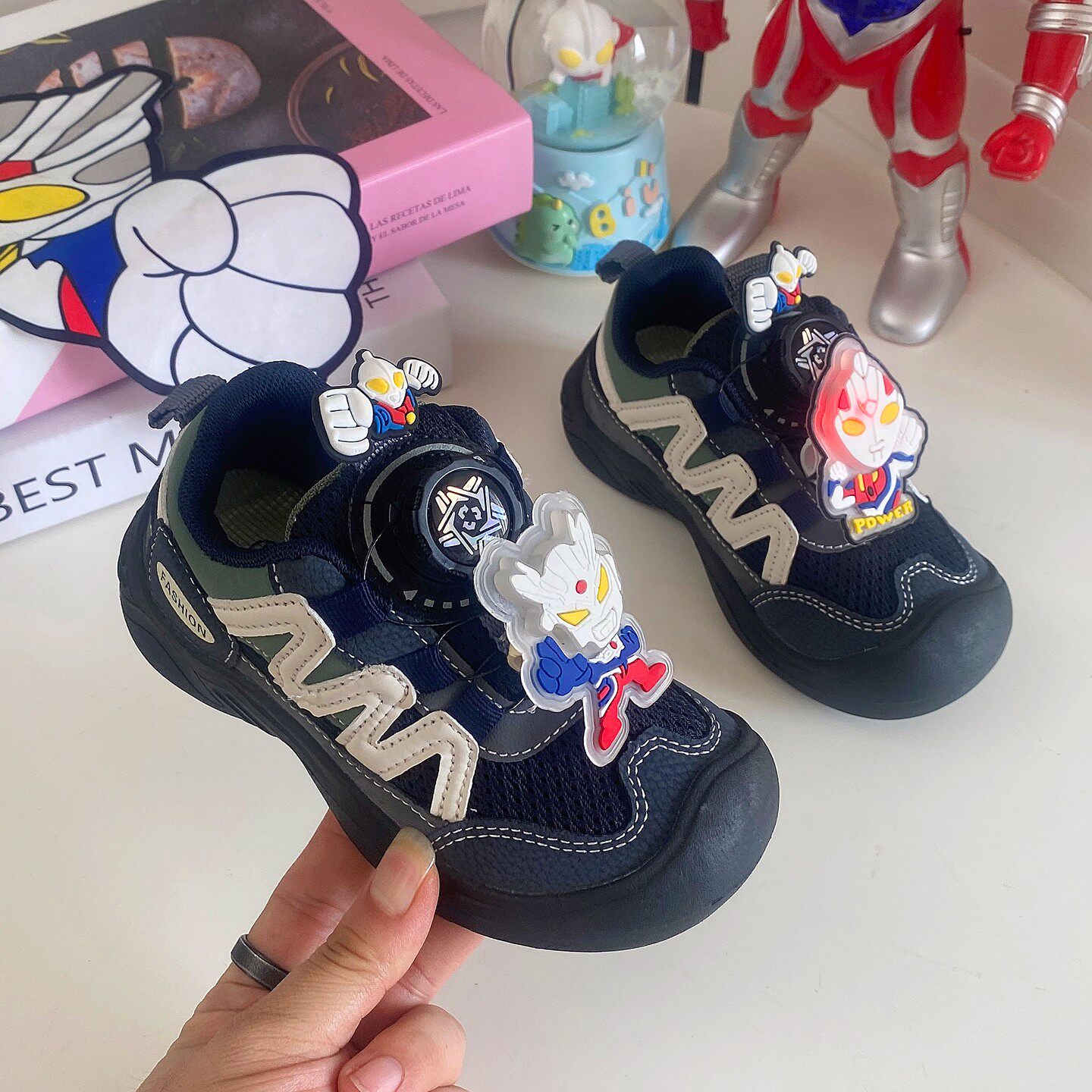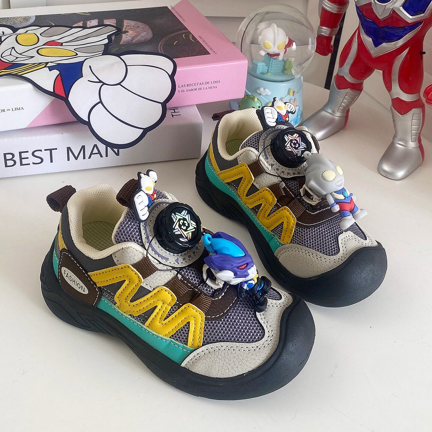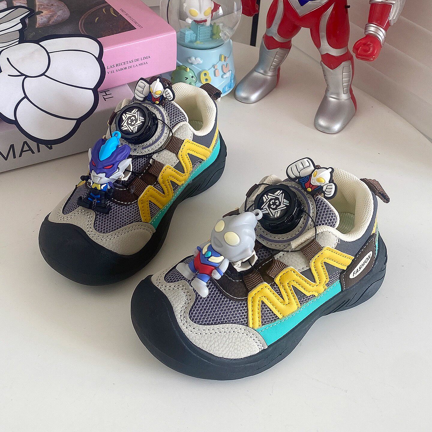 Dhwa British Co-Branded Boys' Mesh Sneakers 2025 Spring and Autumn Ultraman Breathable Wear-Resistant Non-Slip Dad Shoes