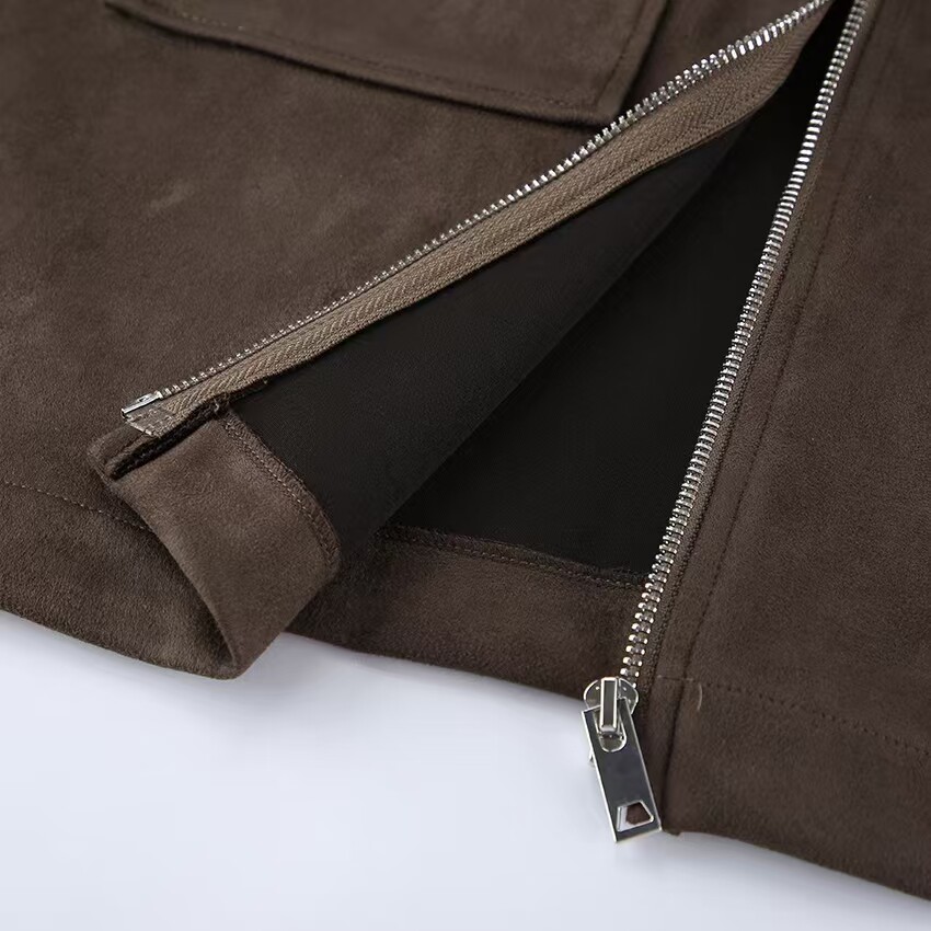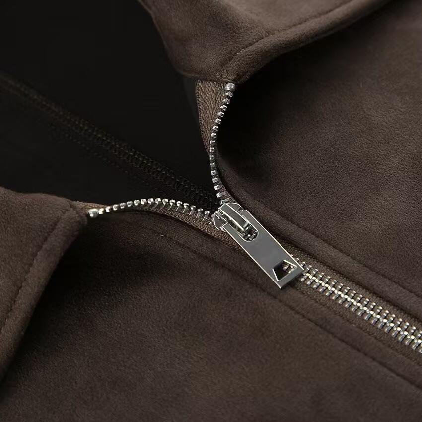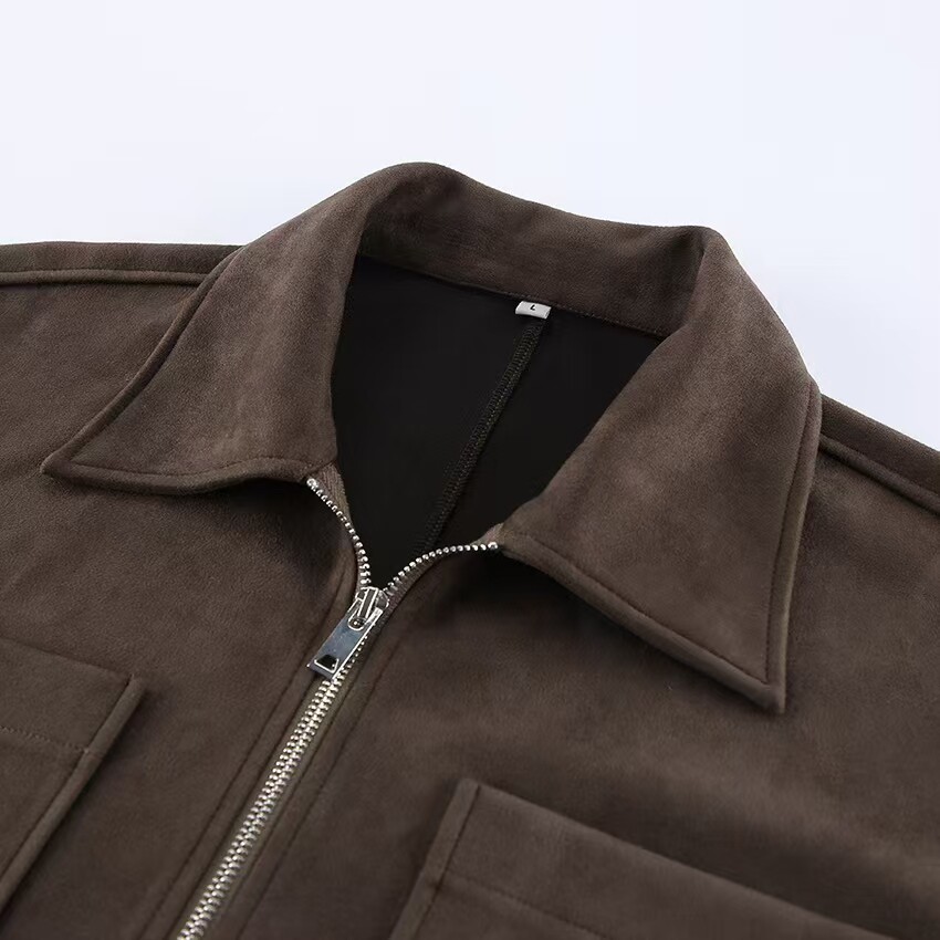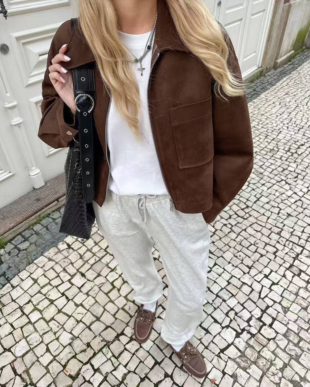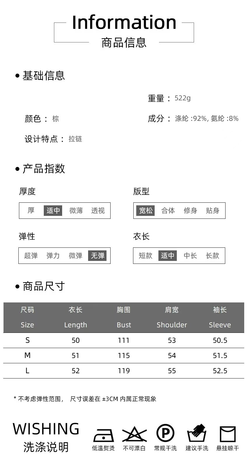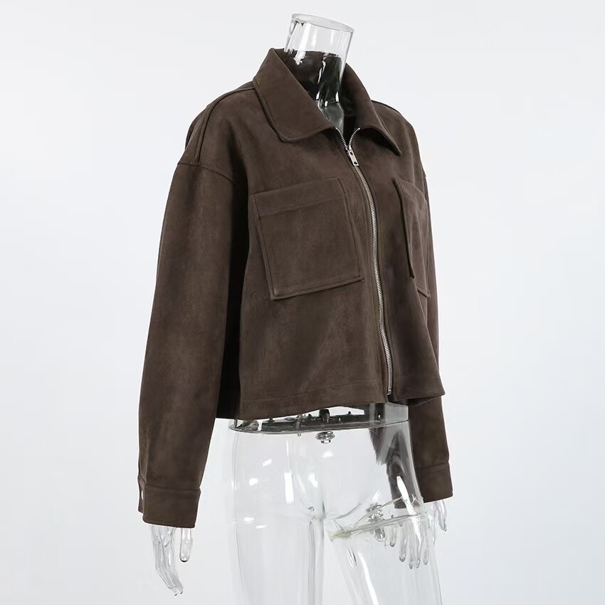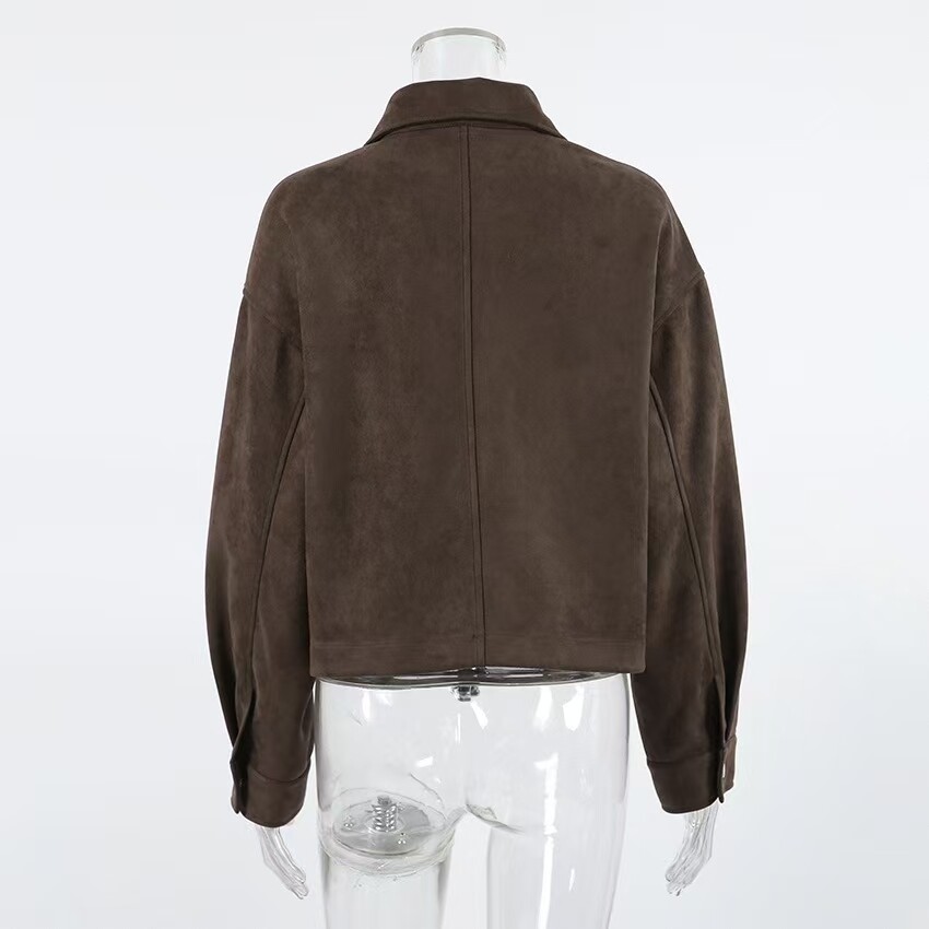 European and American Style New Fashion Loose Lapel Long-Sleeve Short Zipper Jacket Coat