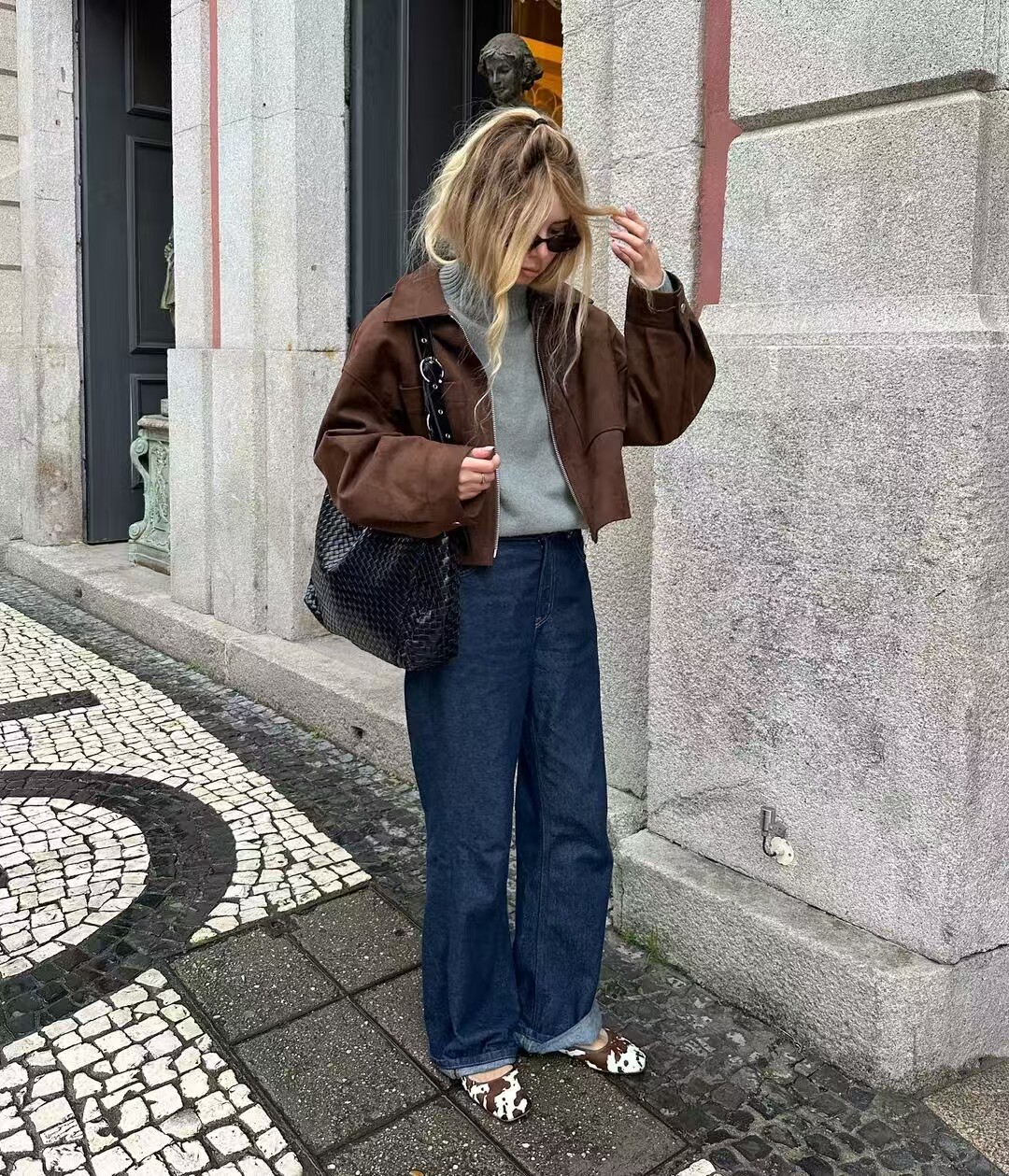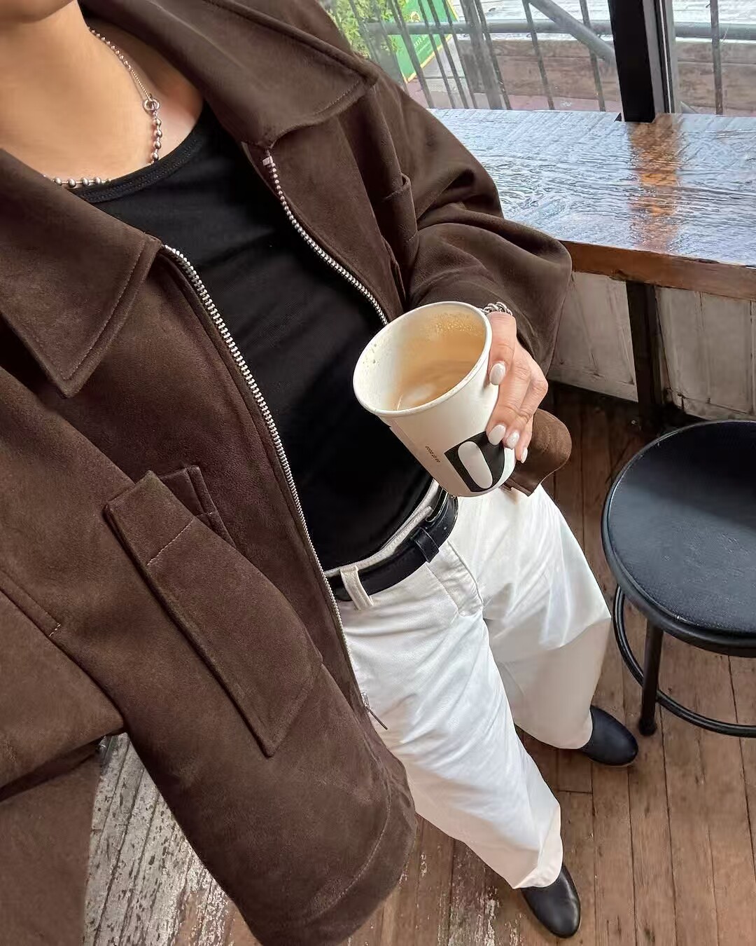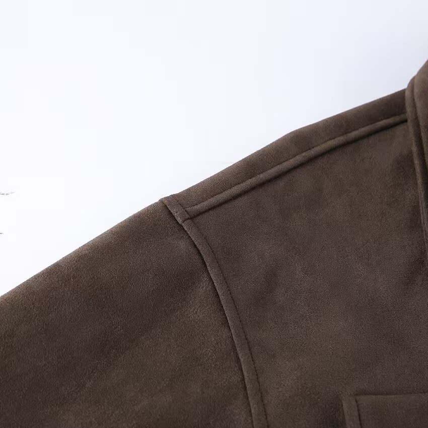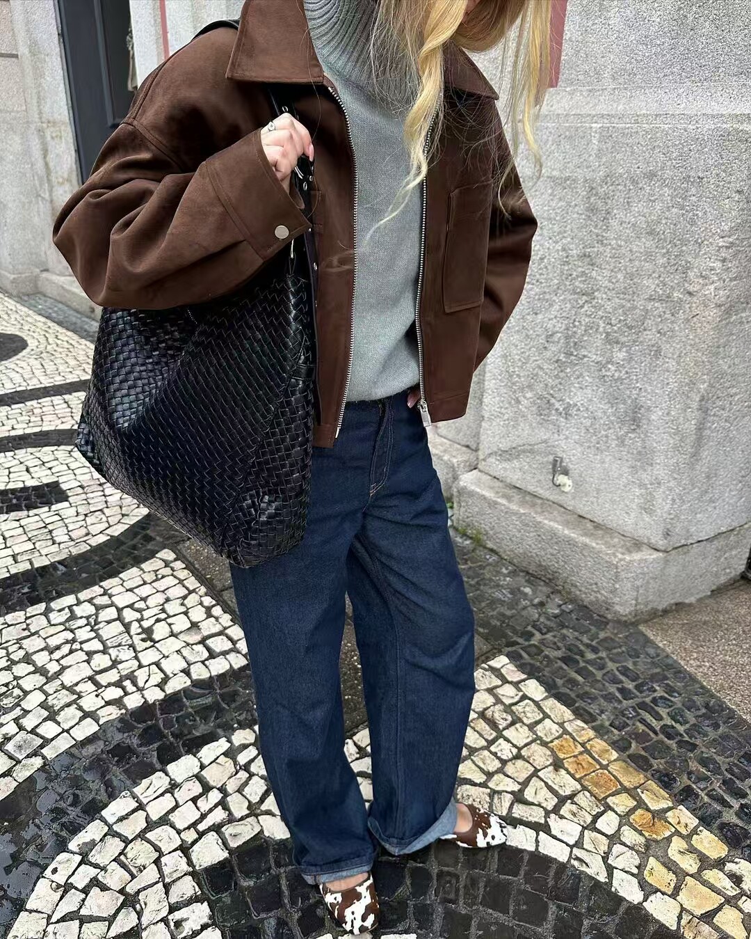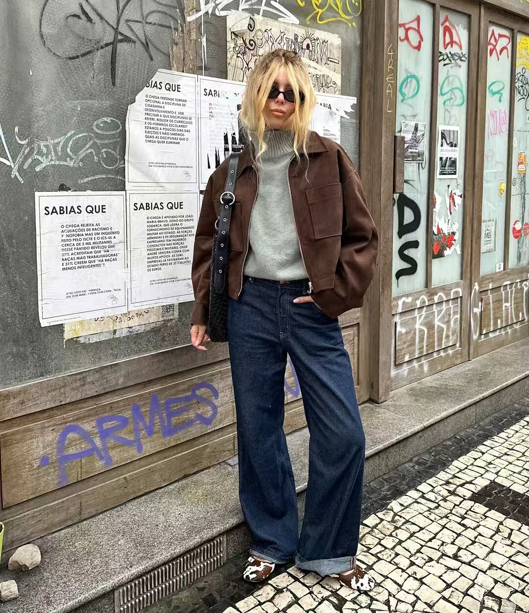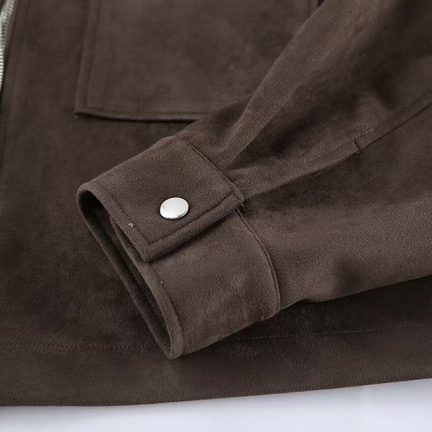 European and American Style New Fashion Loose Lapel Long-Sleeve Short Zipper Jacket Coat