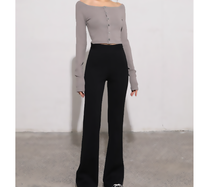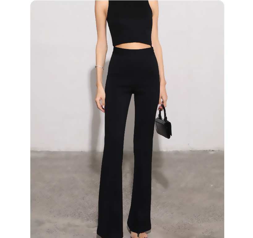 Versatile and Leg-Lengthening Slim-Fit Flared Suit Pants, Straight-Leg Long Pants for Women, Simple Black