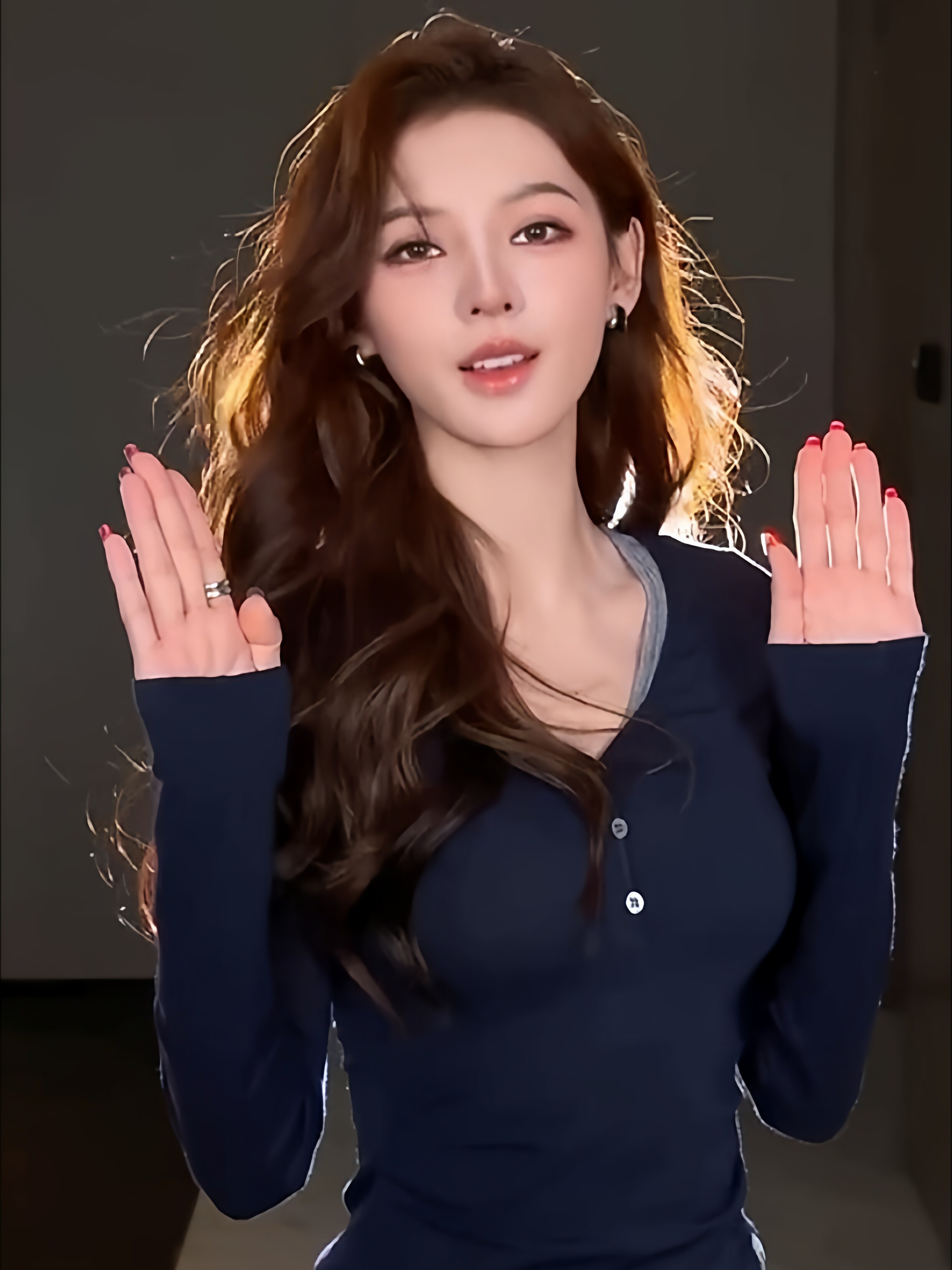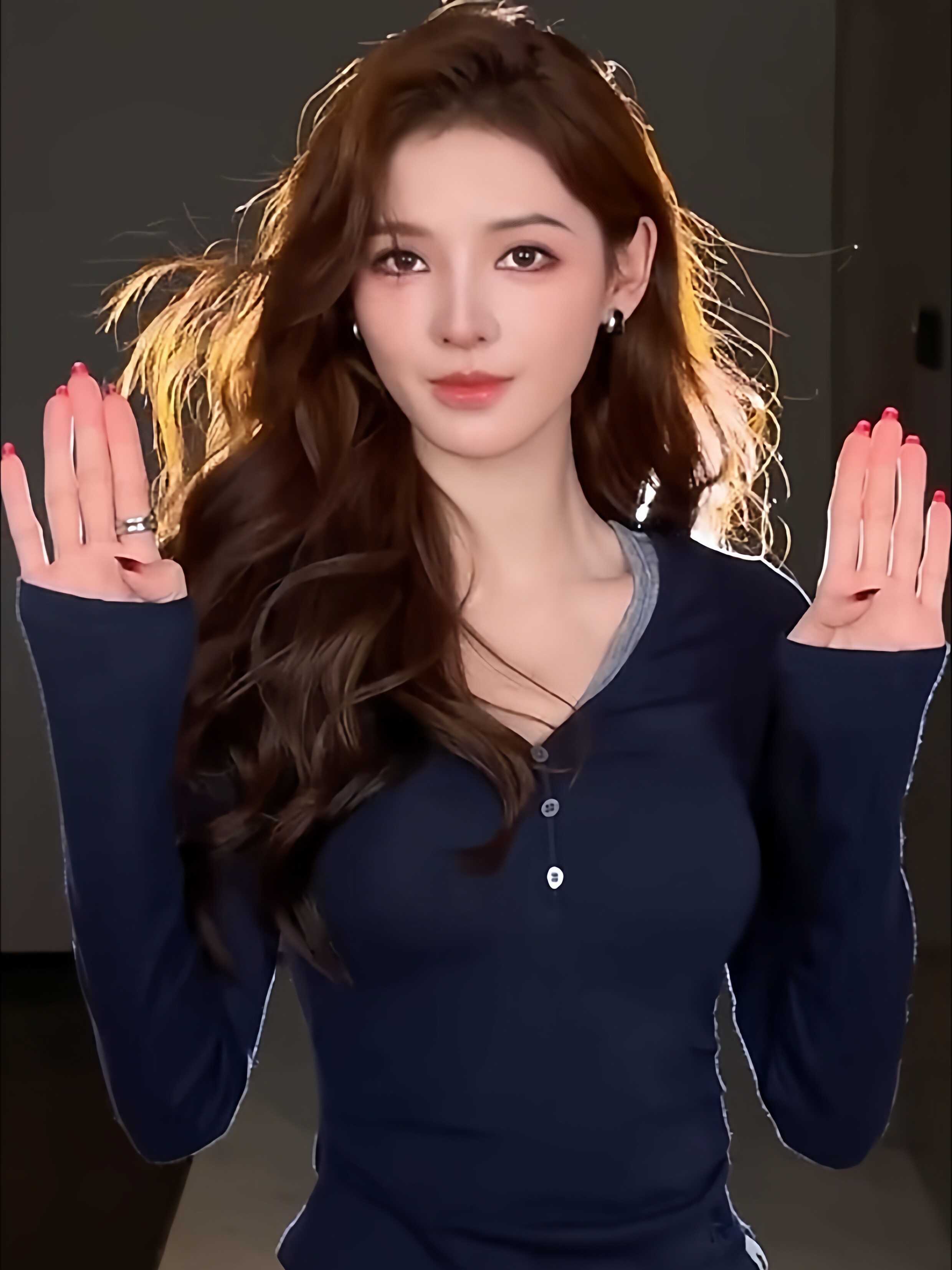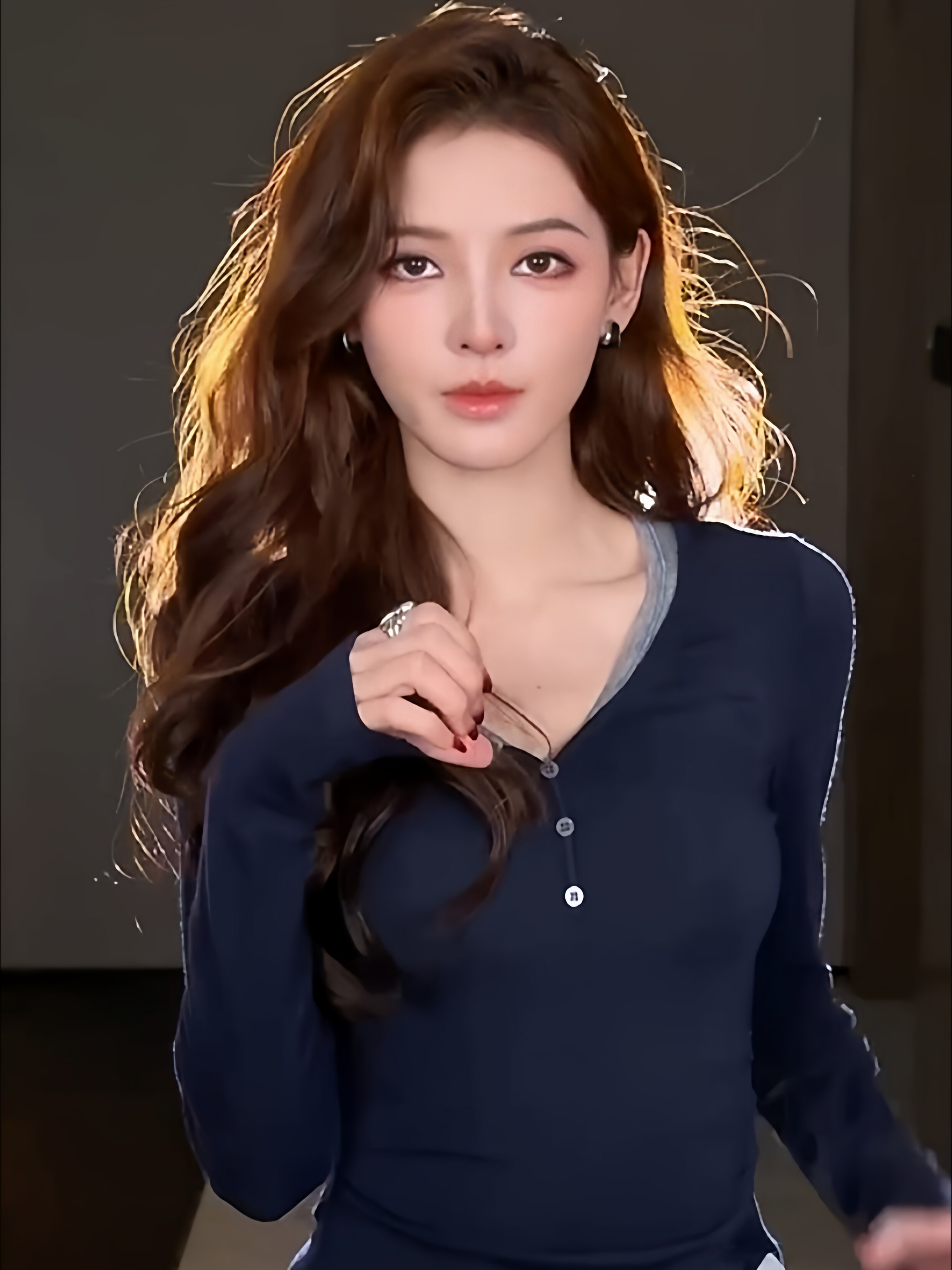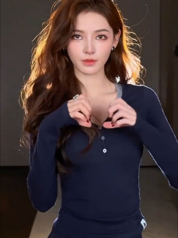 European Style V-Neck Button-Up Long-Sleeve T-Shirt for Women, New Autumn and Winter Design, Unique Lyocell Tencel Waist-Cinching Slimming Top