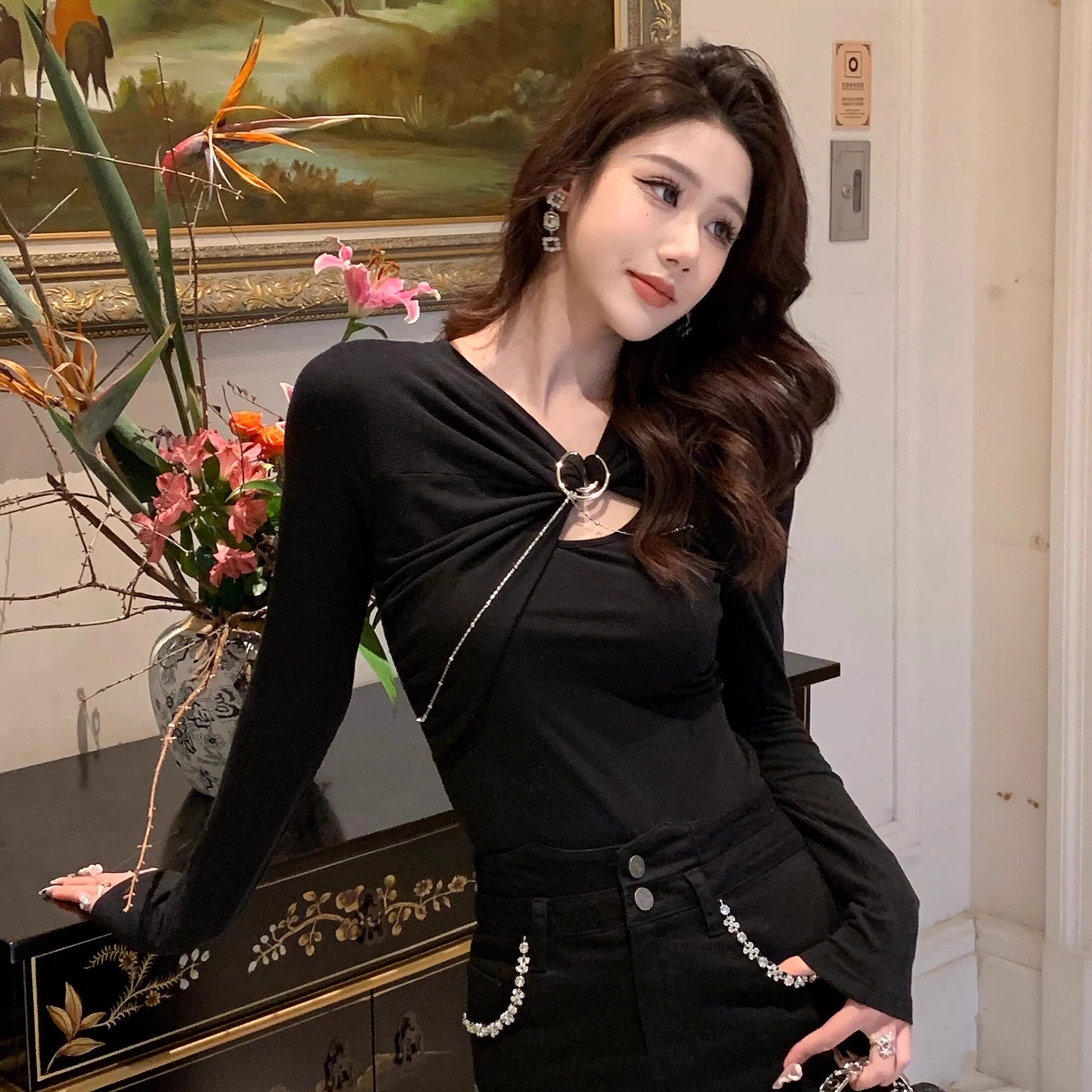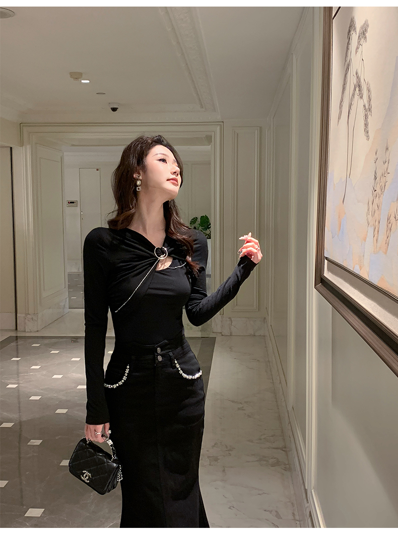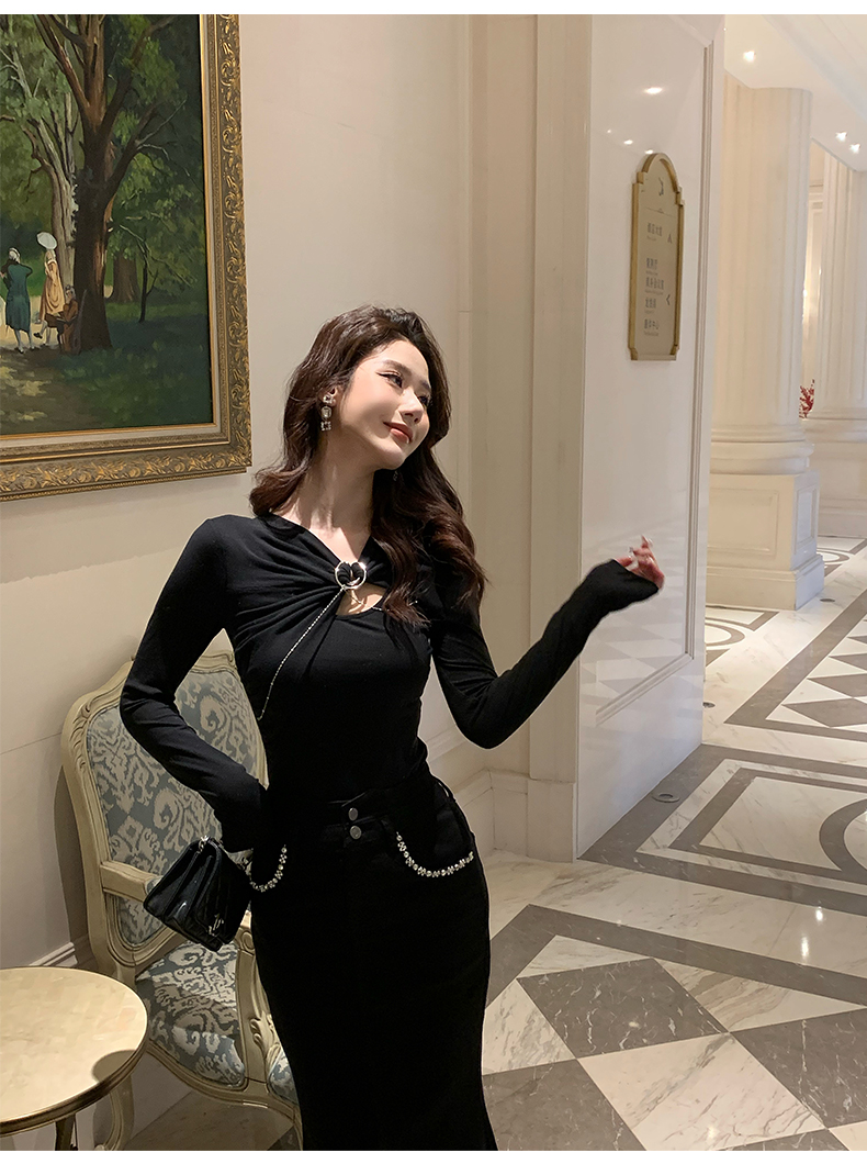 Hollinna Knitted T-Shirt for Women, Spring and Autumn 2025 New Style, Long-Sleeved, Waist-Cinching, Slimming Design, Stylish Top, Base Layer Shirt for Women