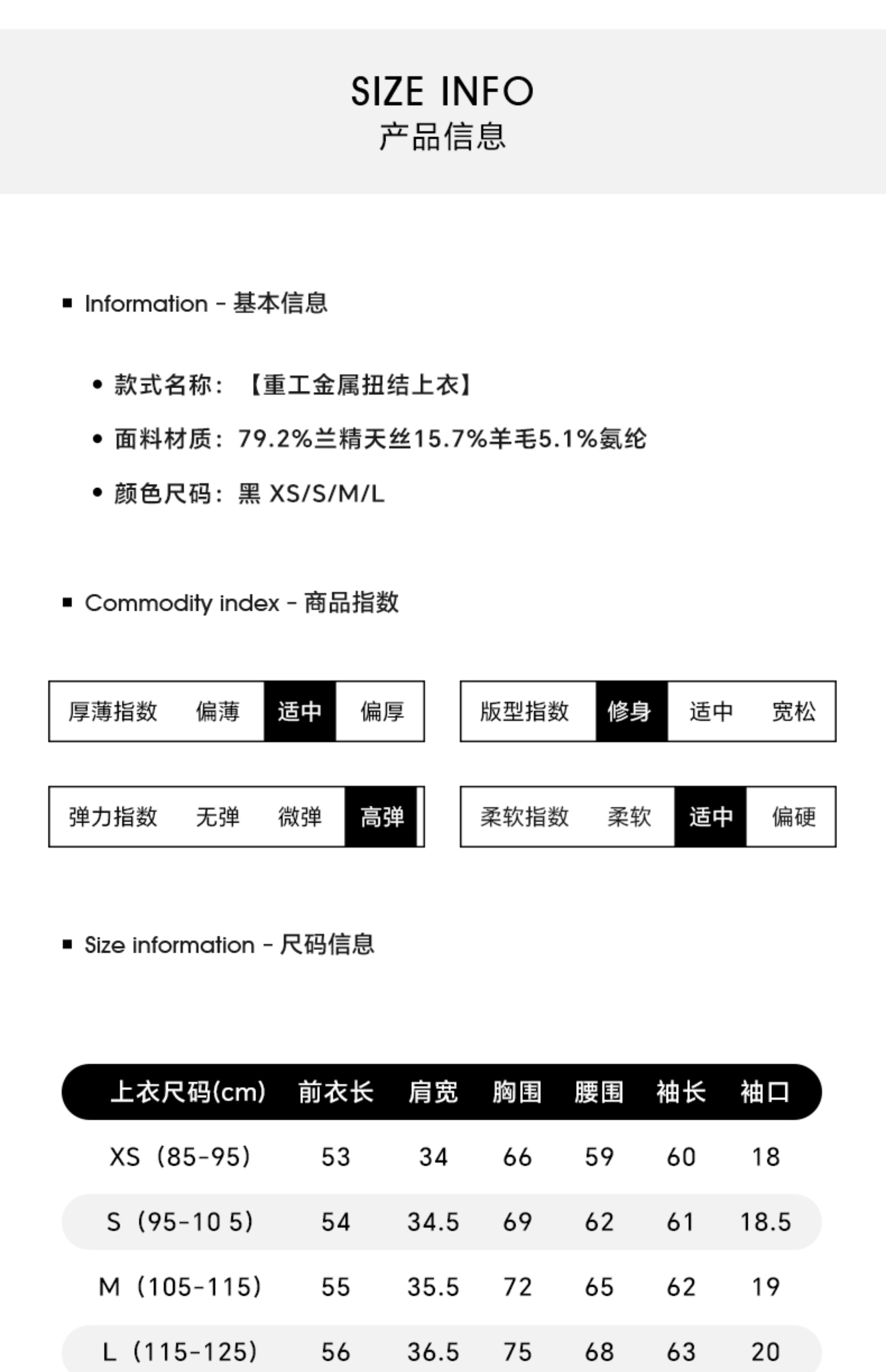 China (cm) 160-165/84-86 165-170 / 88-90 167-172 / 92-96 168-173 / 98-102 170-176 / 106-110