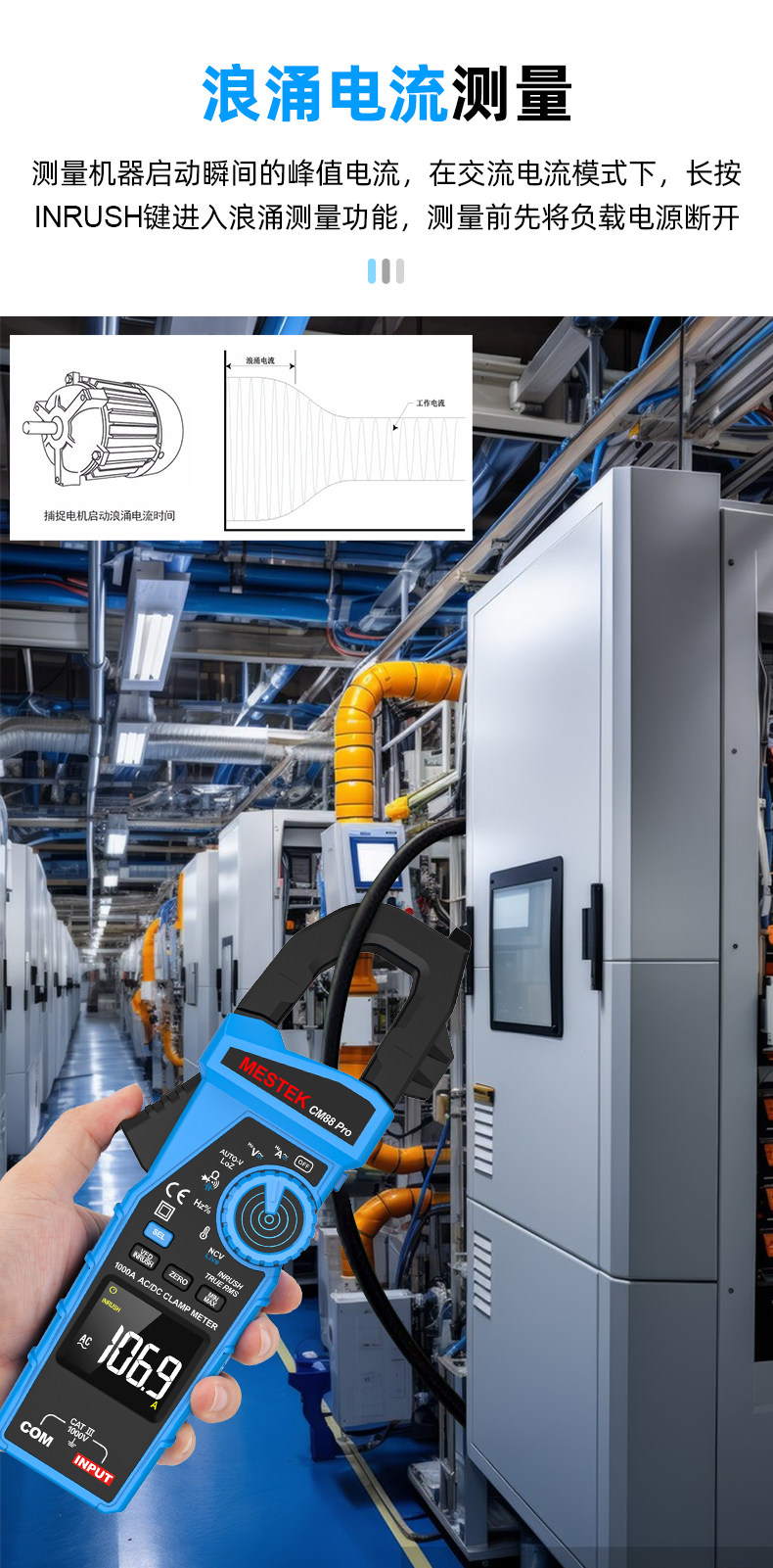Mestek Cm88Pro High Current 1000A Ac/Dc Clamp Meter Vfd/Surge Current Measurement