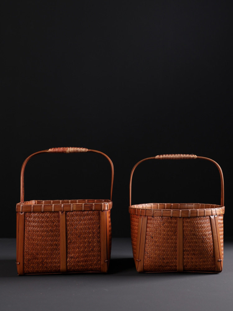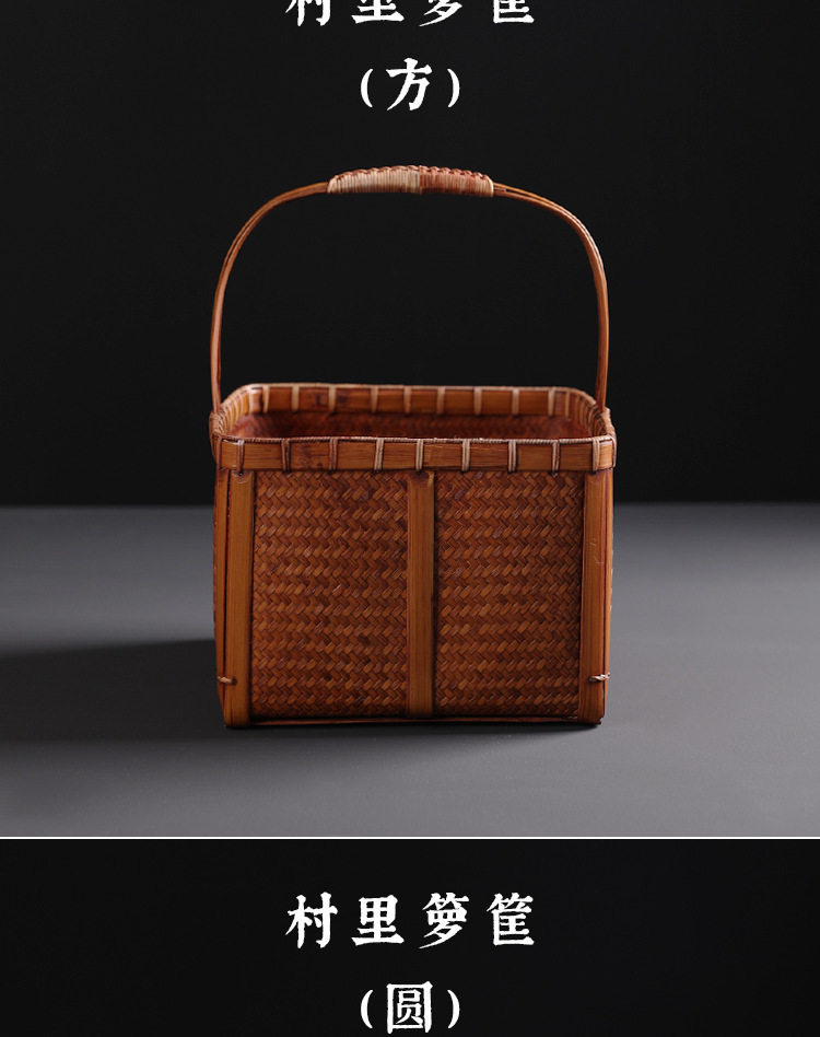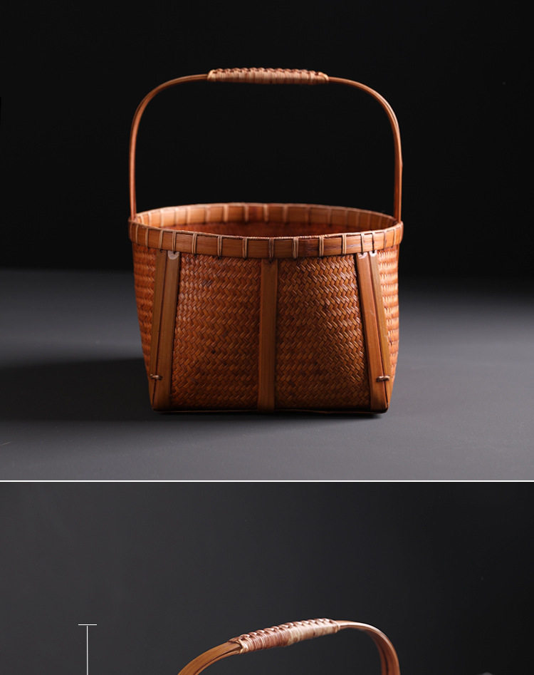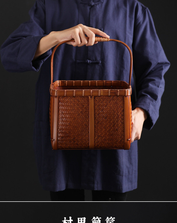 Vintage Bamboo Woven Storage Basket, Picnic Basket, Tea Set Storage Basket, Bamboo Basket, Chinese-Style Distressed Basket, Hand-Woven Basket