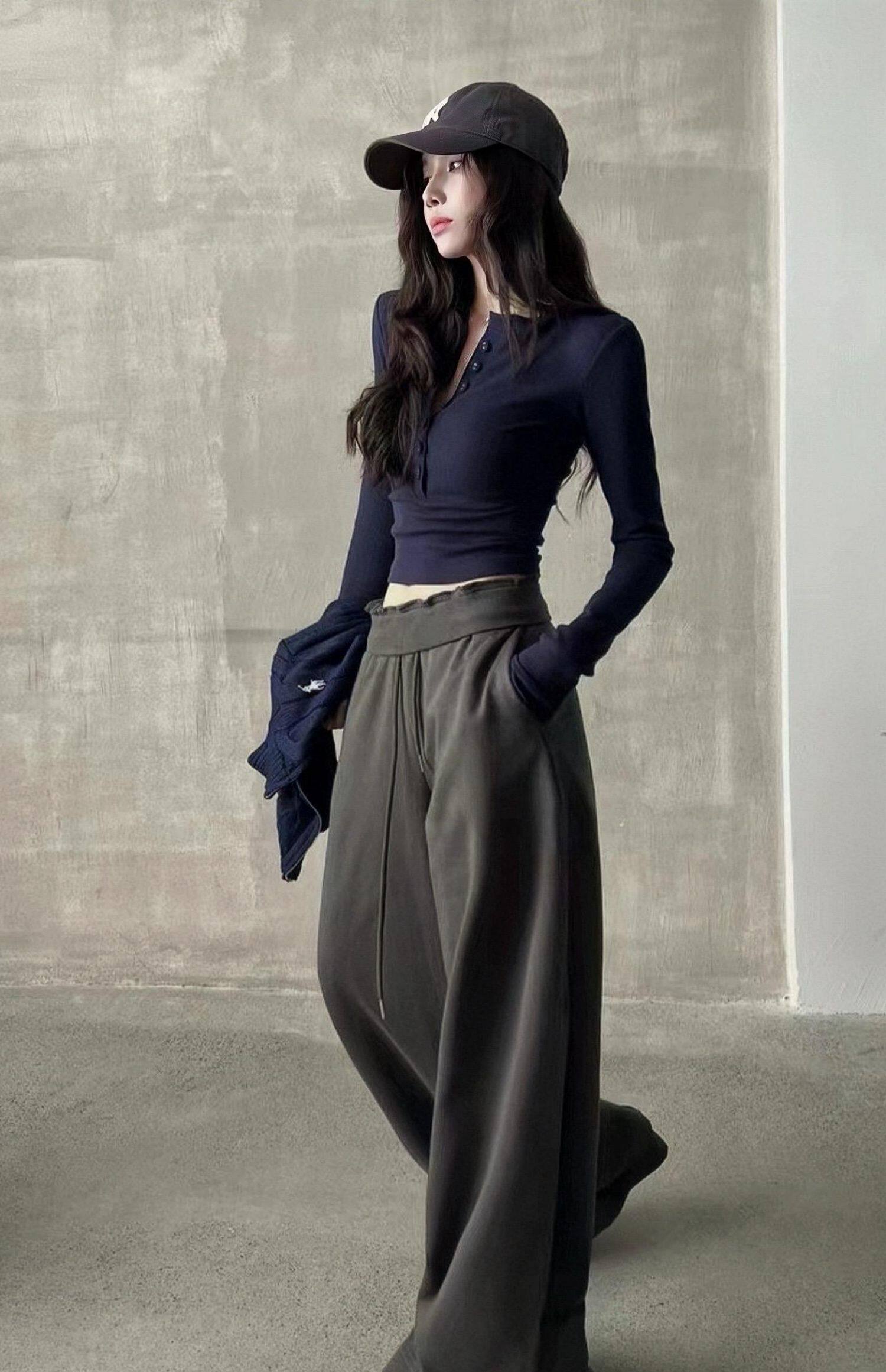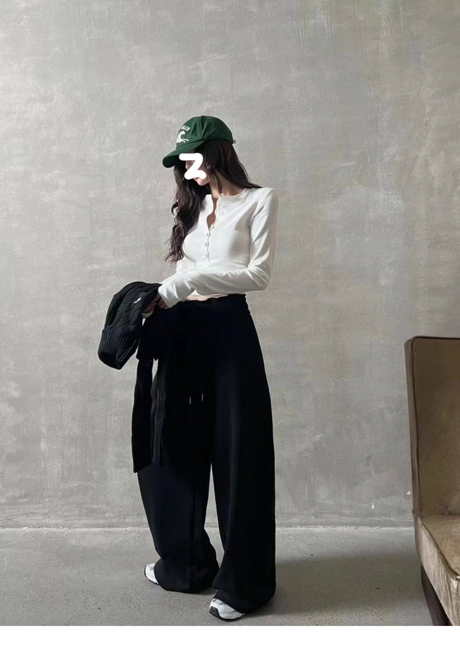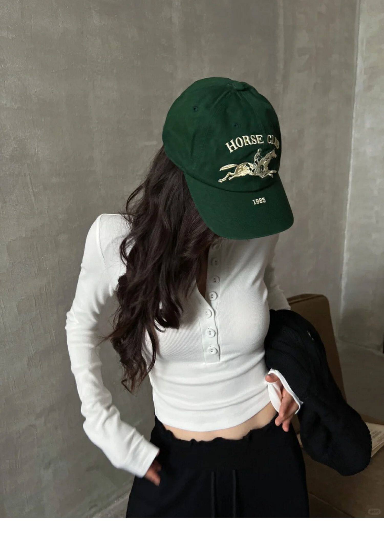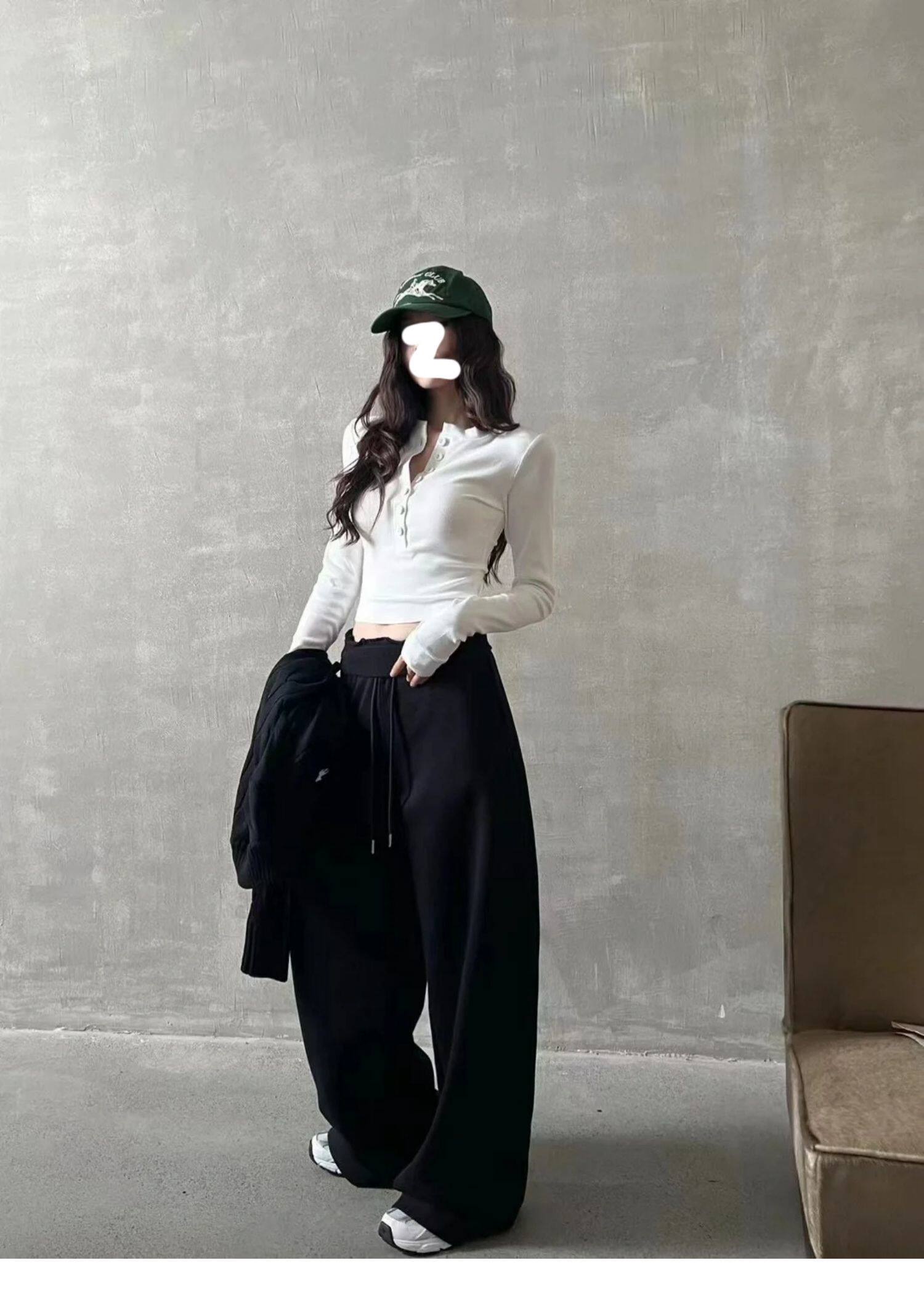 American-Style Spicy Girl Single-Breasted Long-Sleeve T-Shirt for Women, Early Autumn, Slim Fit, Inner Layer, Unique Shoulder Design Top