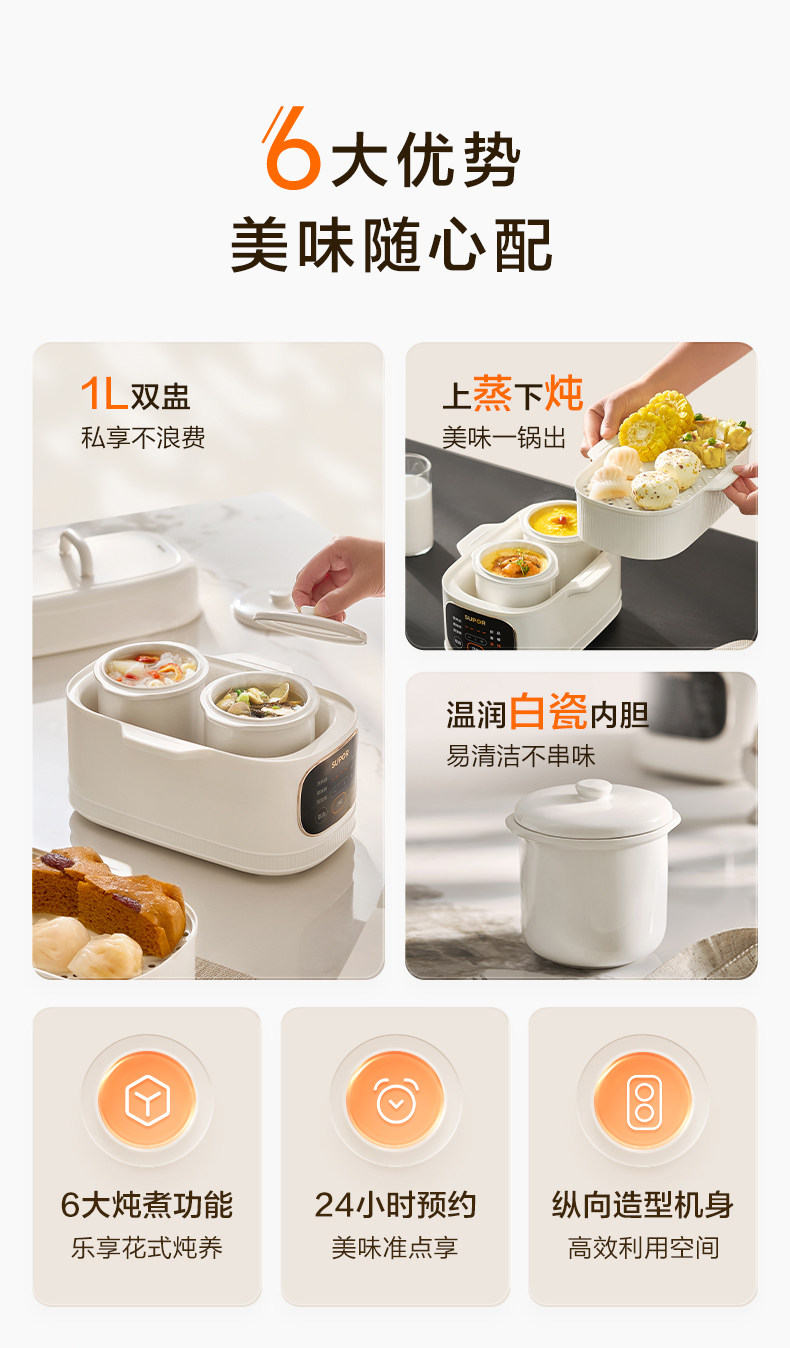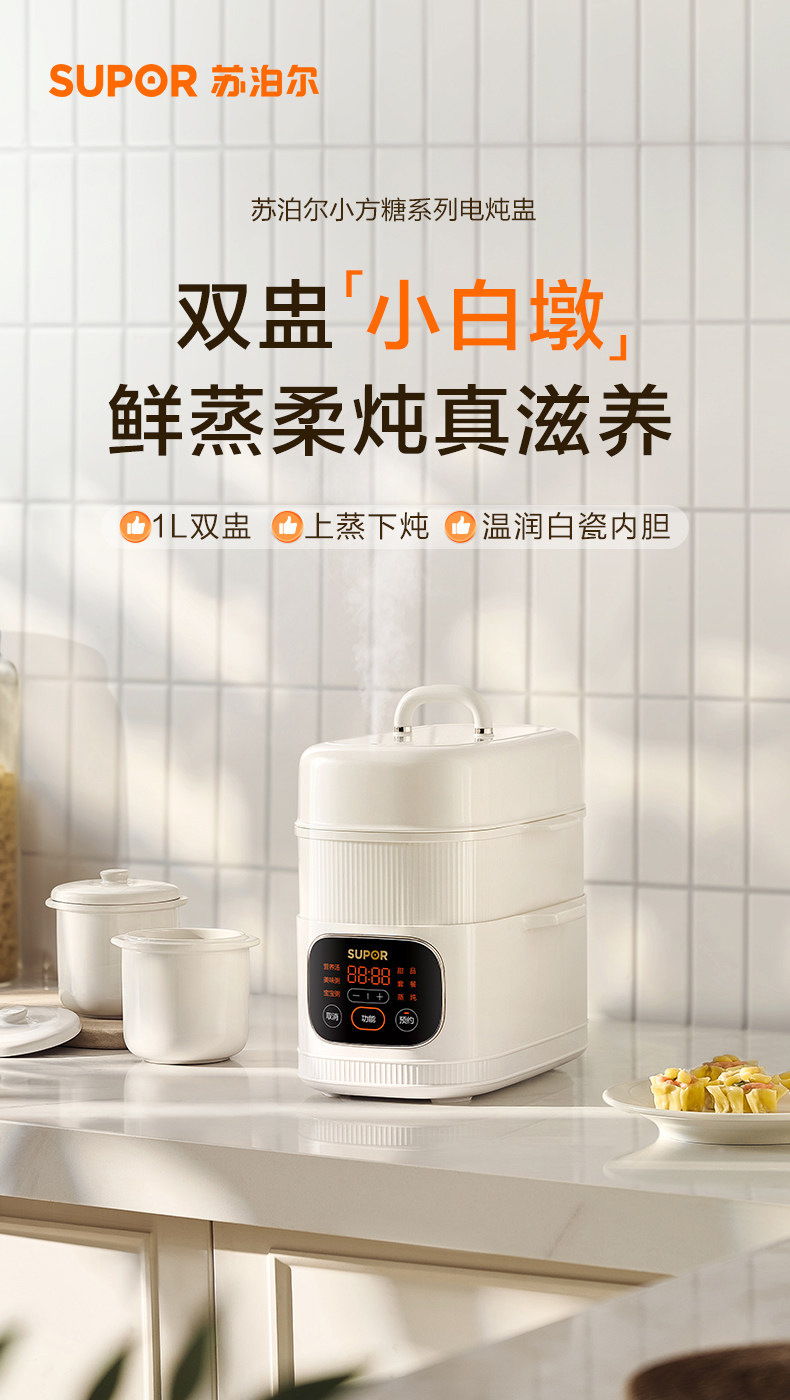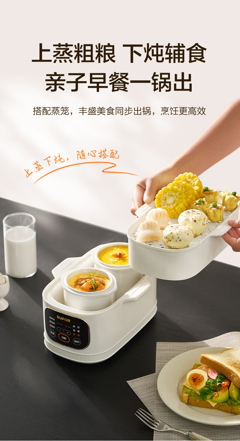 Supor Electric Stew Pot, Water-Separation Stewing Pot, Small Household Bird's Nest Soup Pot, Soup-Making, Baby Food, Porridge Cooking, Steamer, New Model