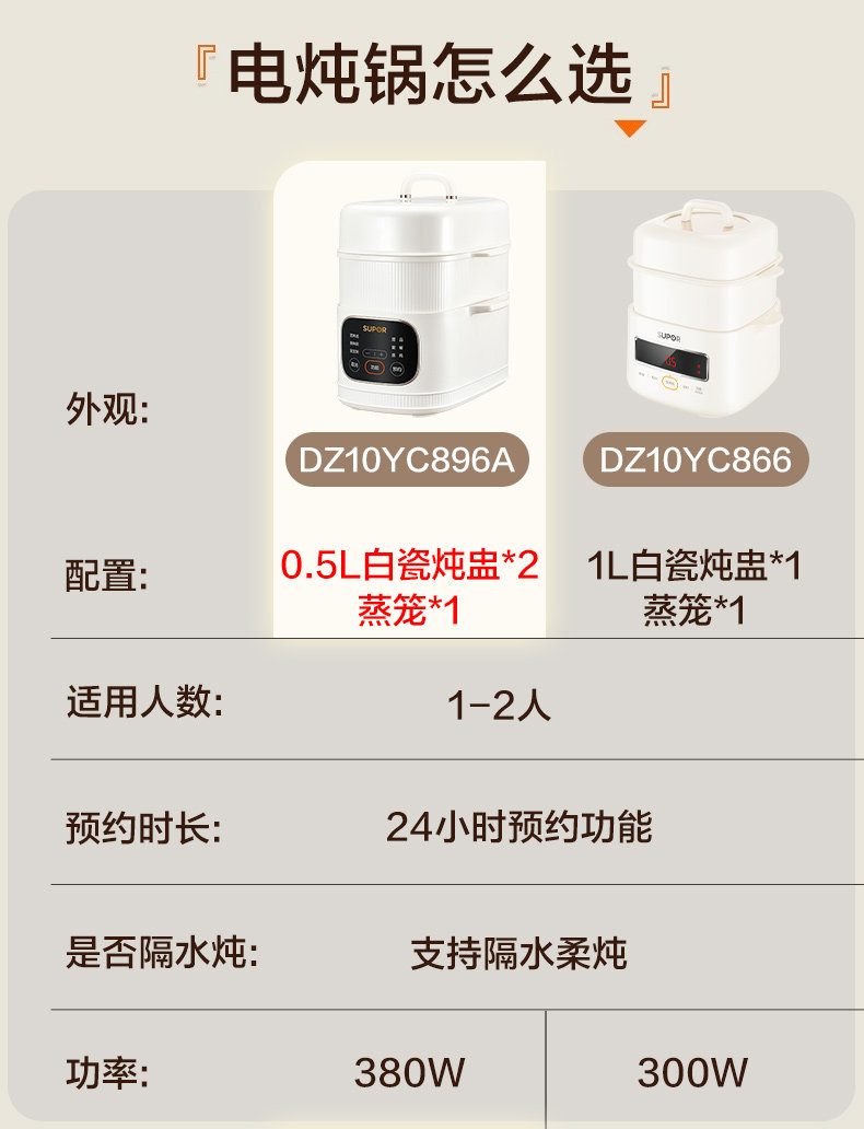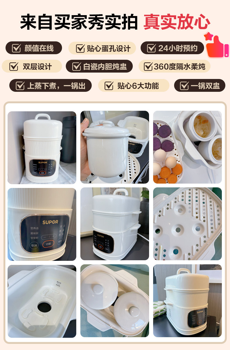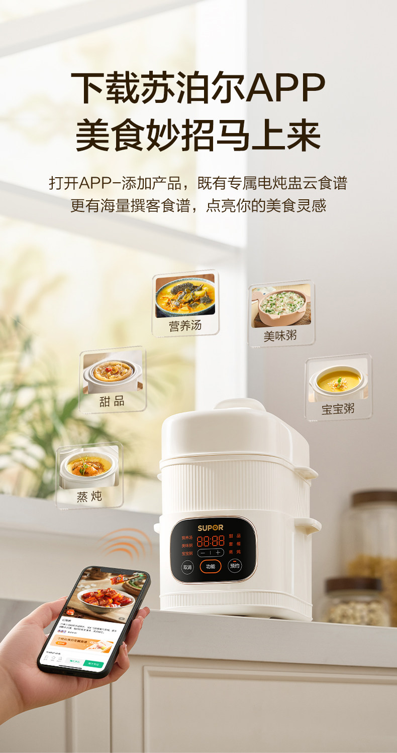 Supor Electric Stew Pot, Water-Separation Stewing Pot, Small Household Bird's Nest Soup Pot, Soup-Making, Baby Food, Porridge Cooking, Steamer, New Model