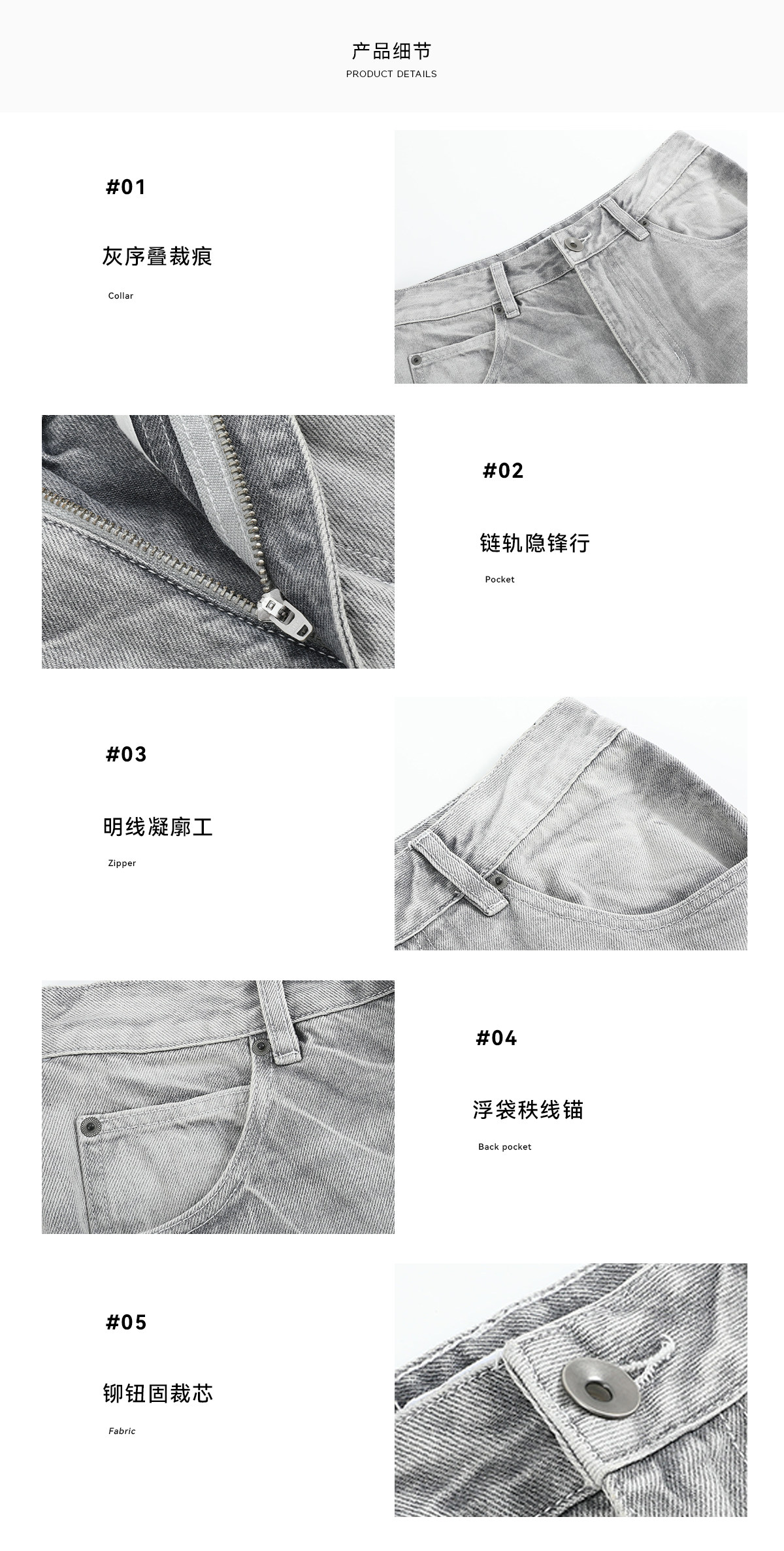 Slight vogue丨Fair-faced concrete washed lime white mid-rise casual commuter straight jeans