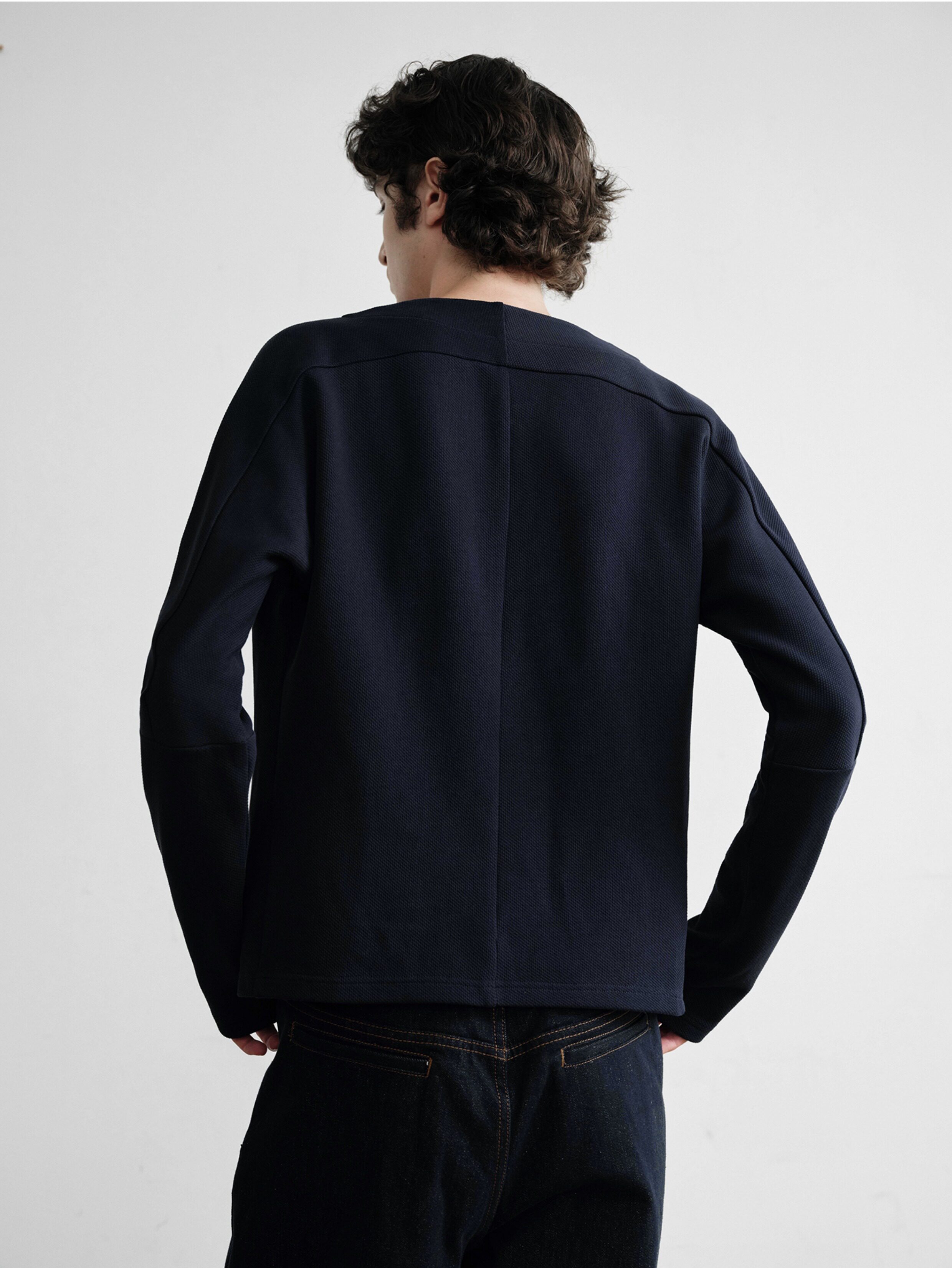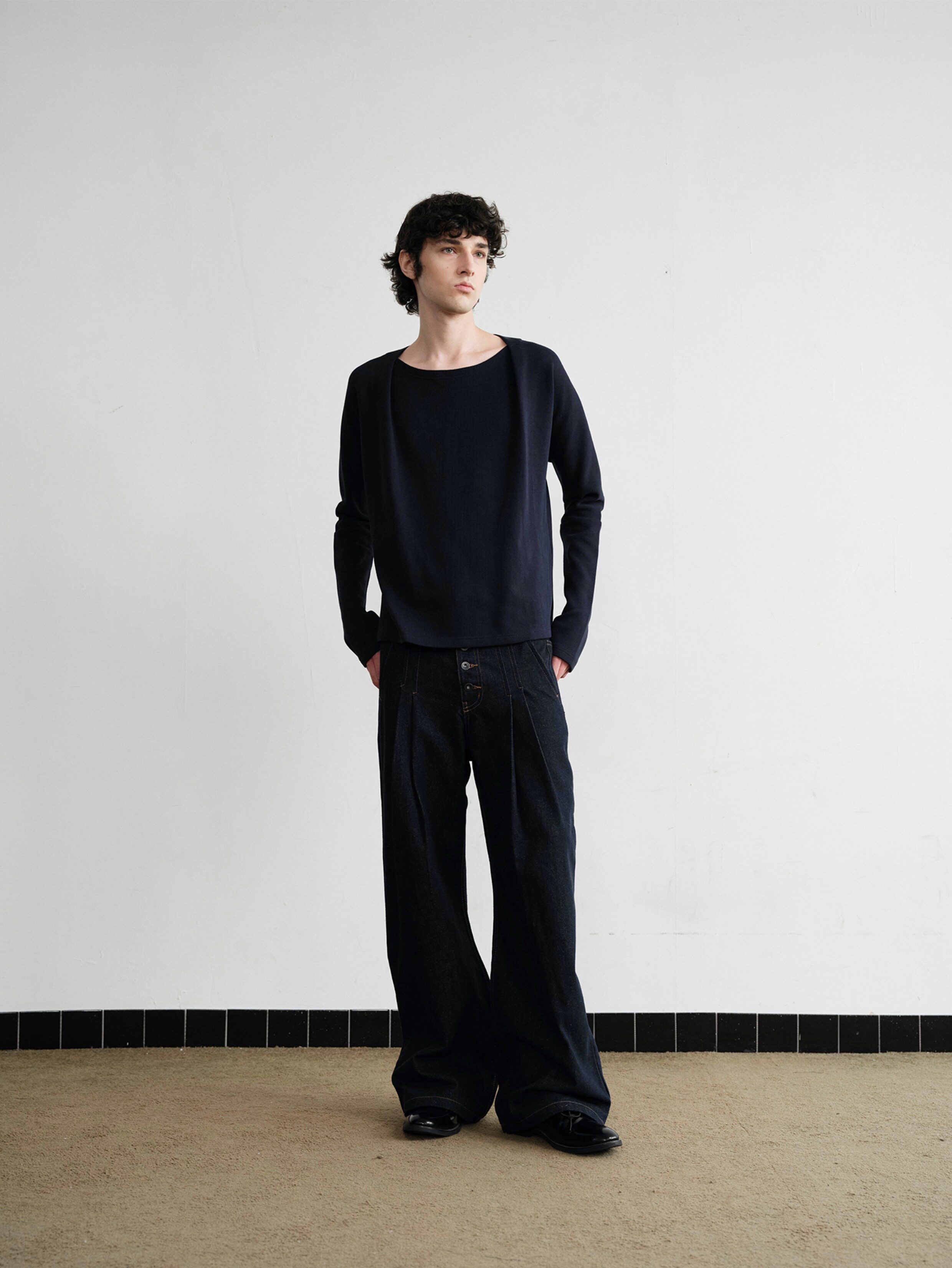Slight Vogue丨Unstructured pleated single-cut silhouette horizontal collar sweatshirt loose single wear long sleeves