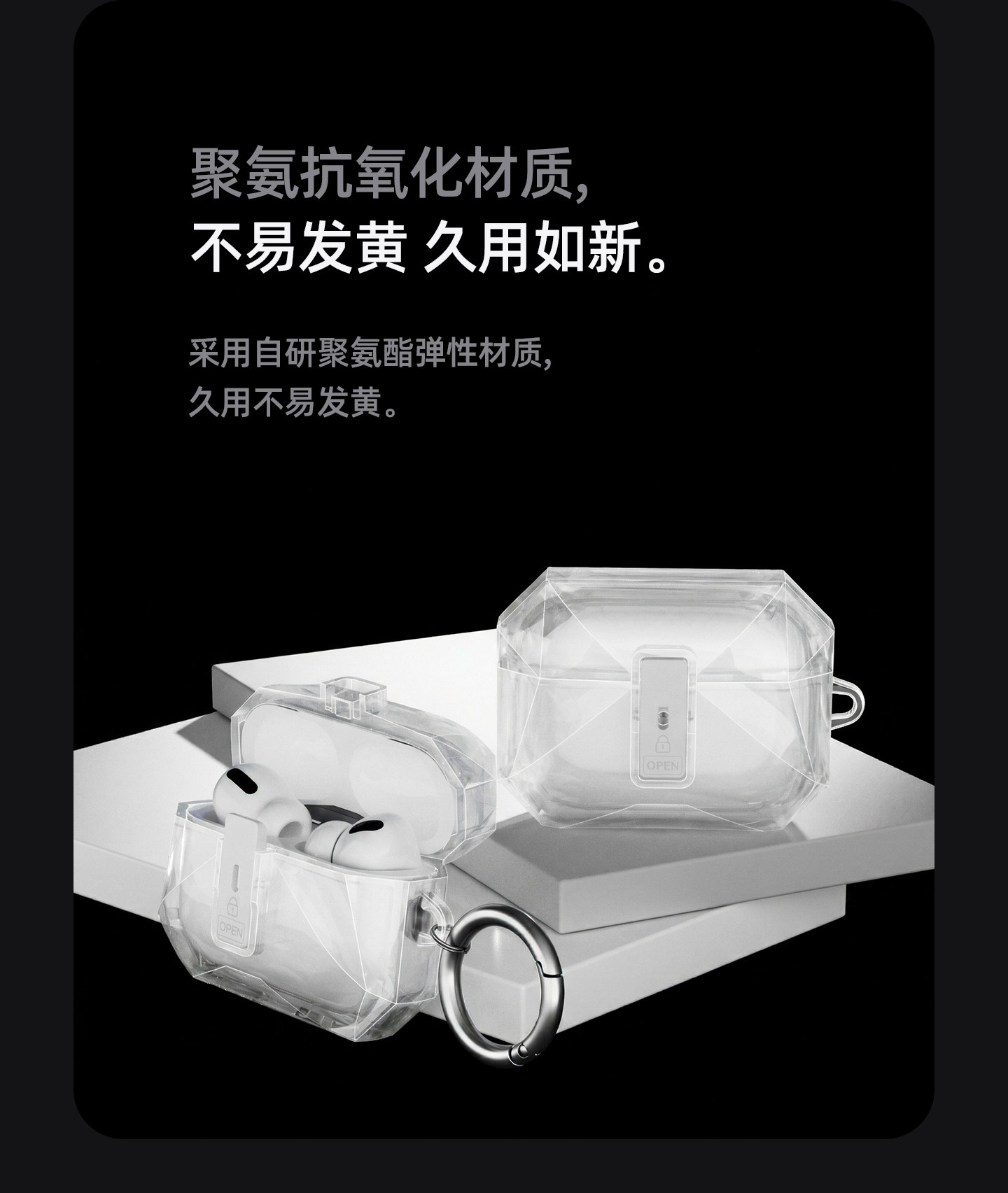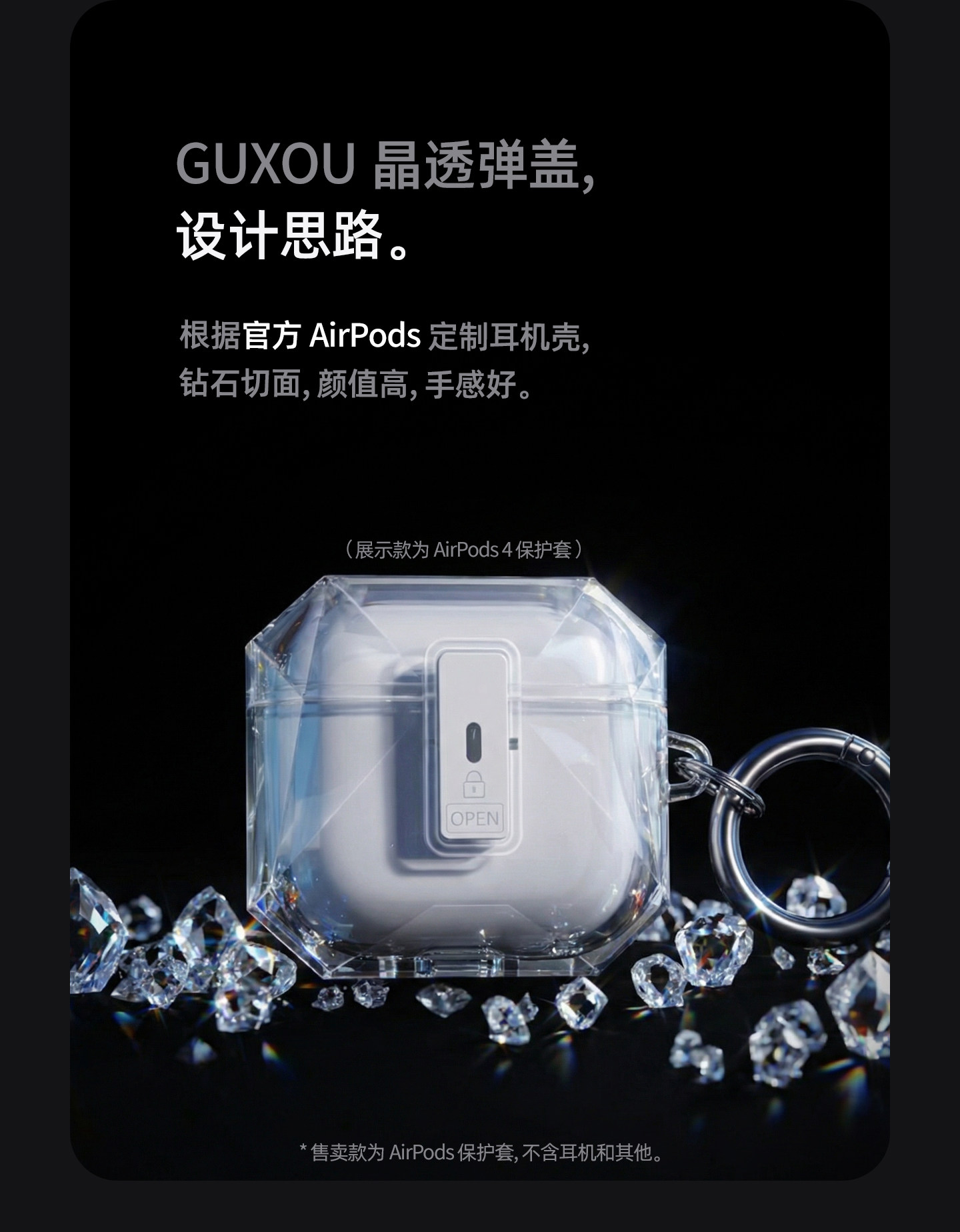 [Guxou Patented Model]Suitable for Airpodspro3 Automatic Pop-Up Crystal Clear Diamond Transparent Protective Case for Apple 1, 2, 3, 4 Generation Airpods4 Earphone Case, High-End Simple New Model