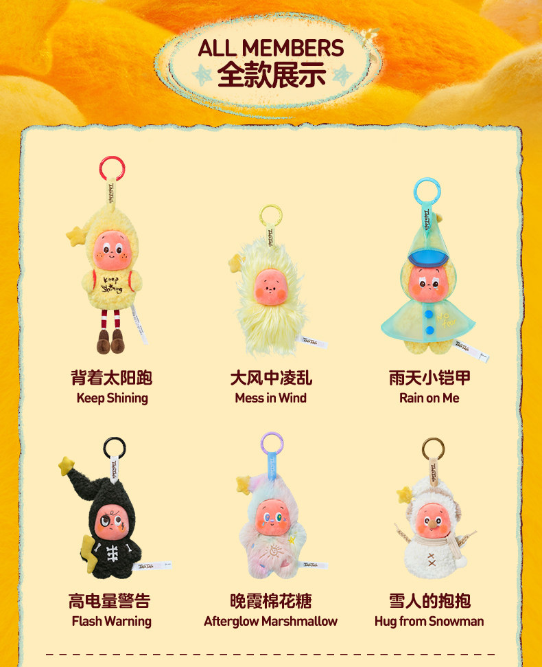 Style description Brand new and unopened single random blind box,Messy in the strong wind,High battery warning,sunset marshmallow,Run with the sun on your back,snowman hug,Rainy day armor,Hidden style - come every day,6 basic models that can be unboxed but not bagged,Brand new and unopened in a plastic box (highly likely to be hidden)