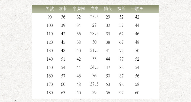China (cm) 165 / 88-90 170 / 96-98 175 / 108-110 180 / 118-122 185 / 126-130