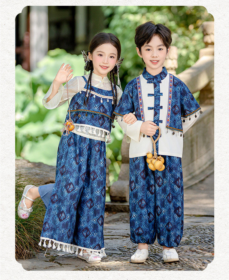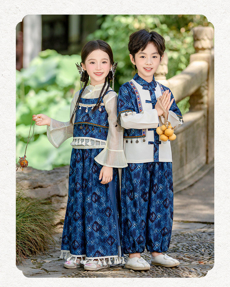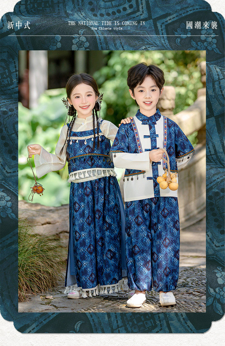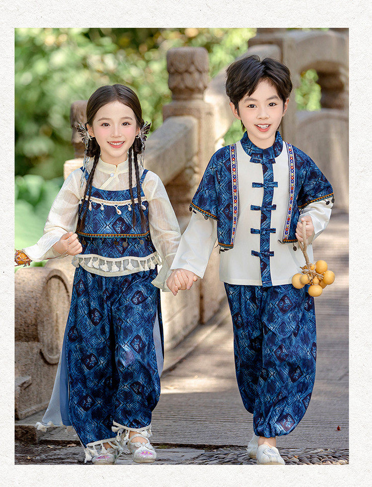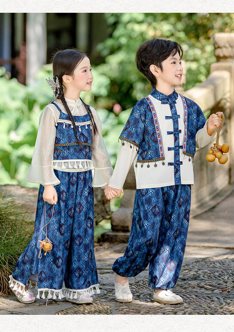 Children's ethnic minority style clothing Yunnan girls tie-dye dress boys national style Hanfu suit performance clothing autumn