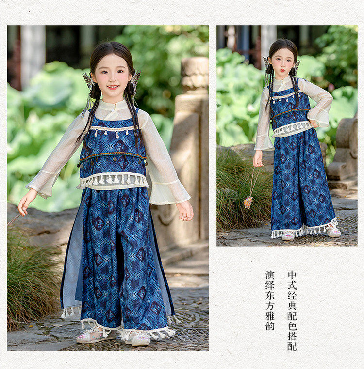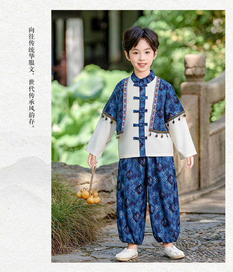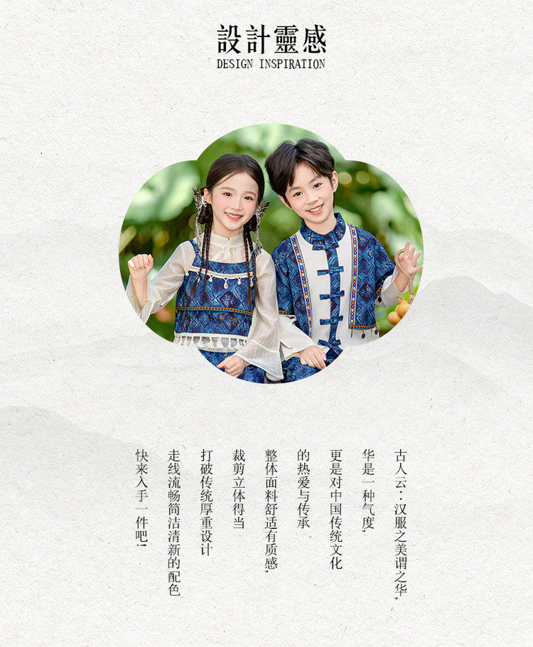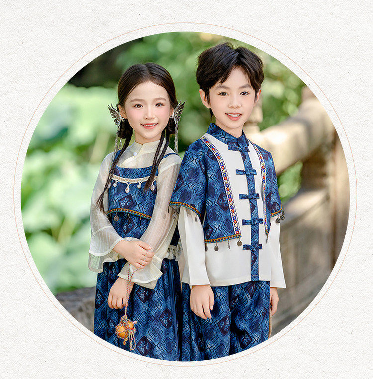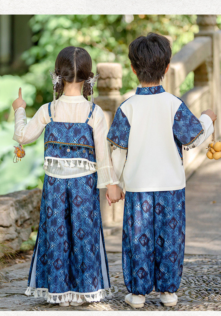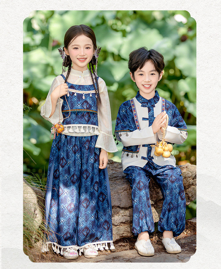 Children's ethnic minority style clothing Yunnan girls tie-dye dress boys national style Hanfu suit performance clothing autumn