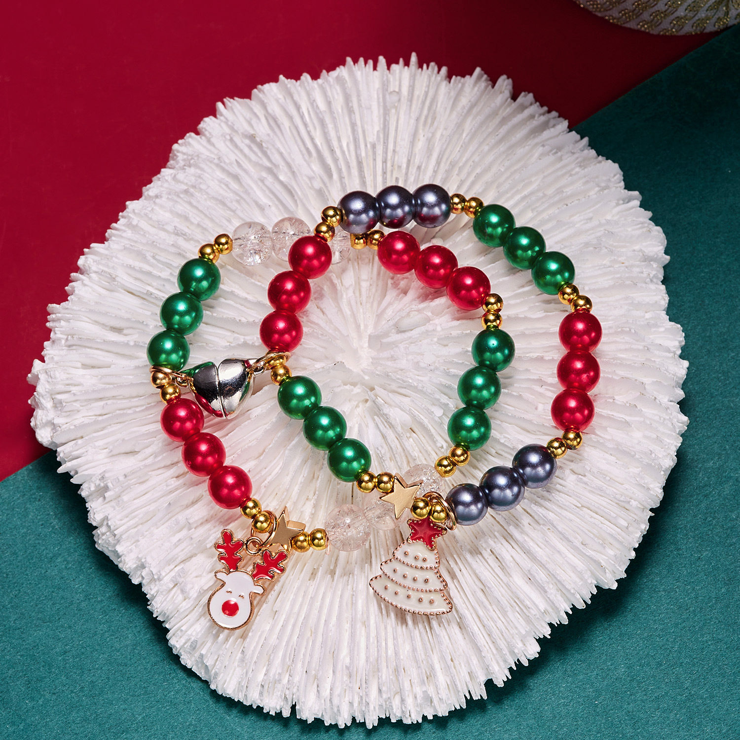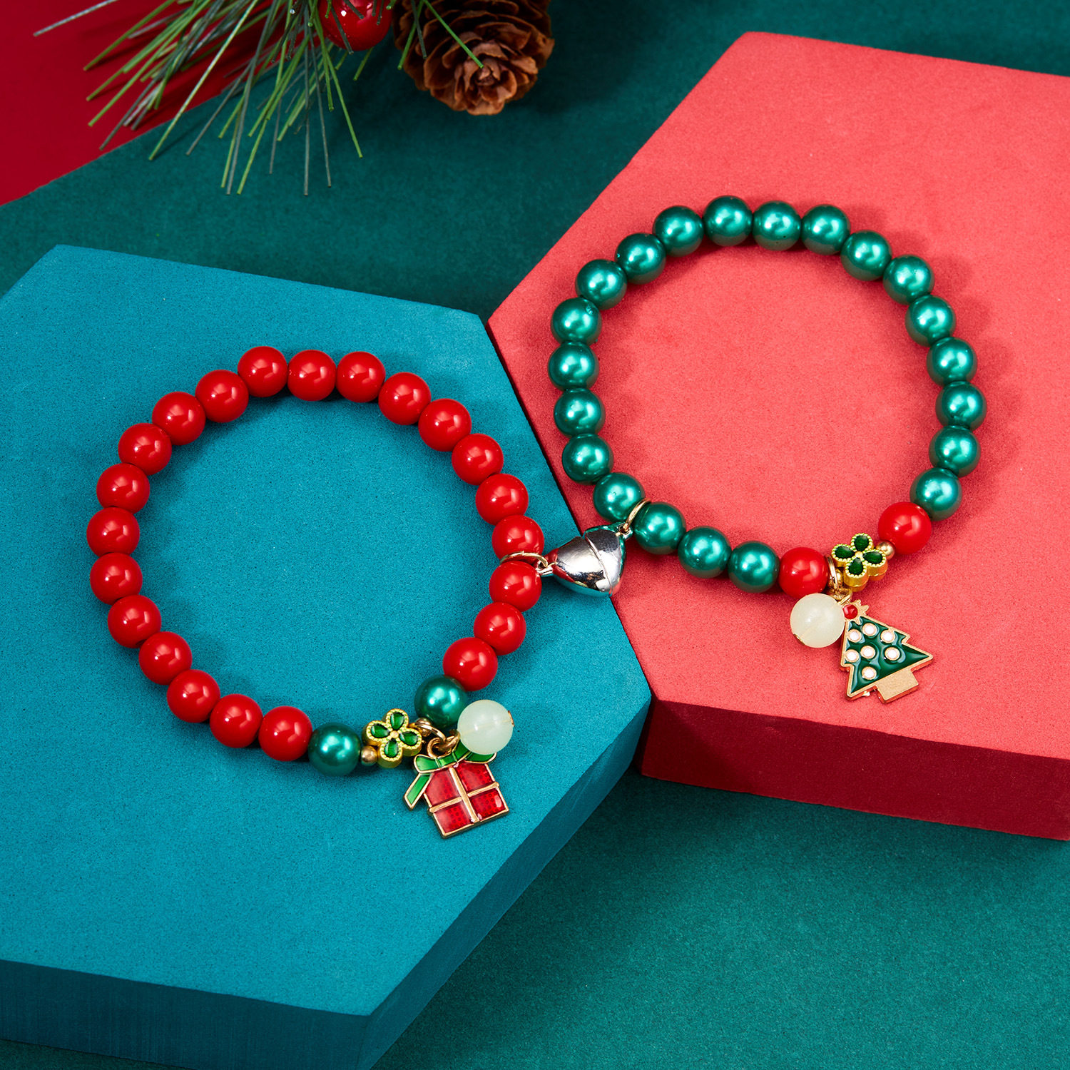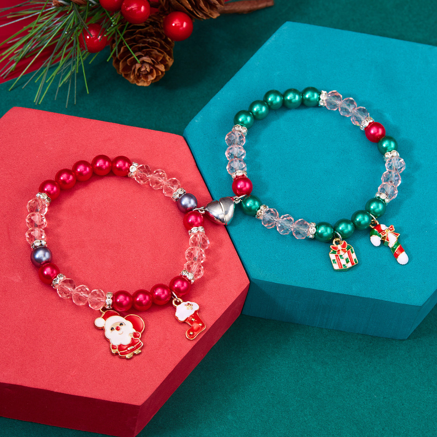 Cross-Border Best-Selling Christmas Holiday Beaded Bracelets Santa Claus Christmas Tree Bells Love Heart Magnetic Couple Bracelets