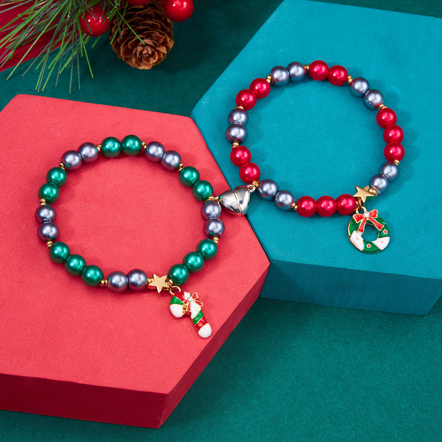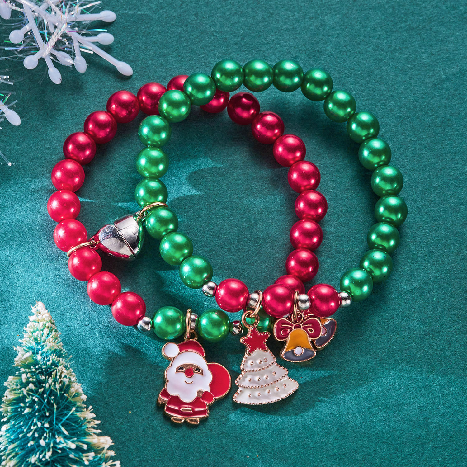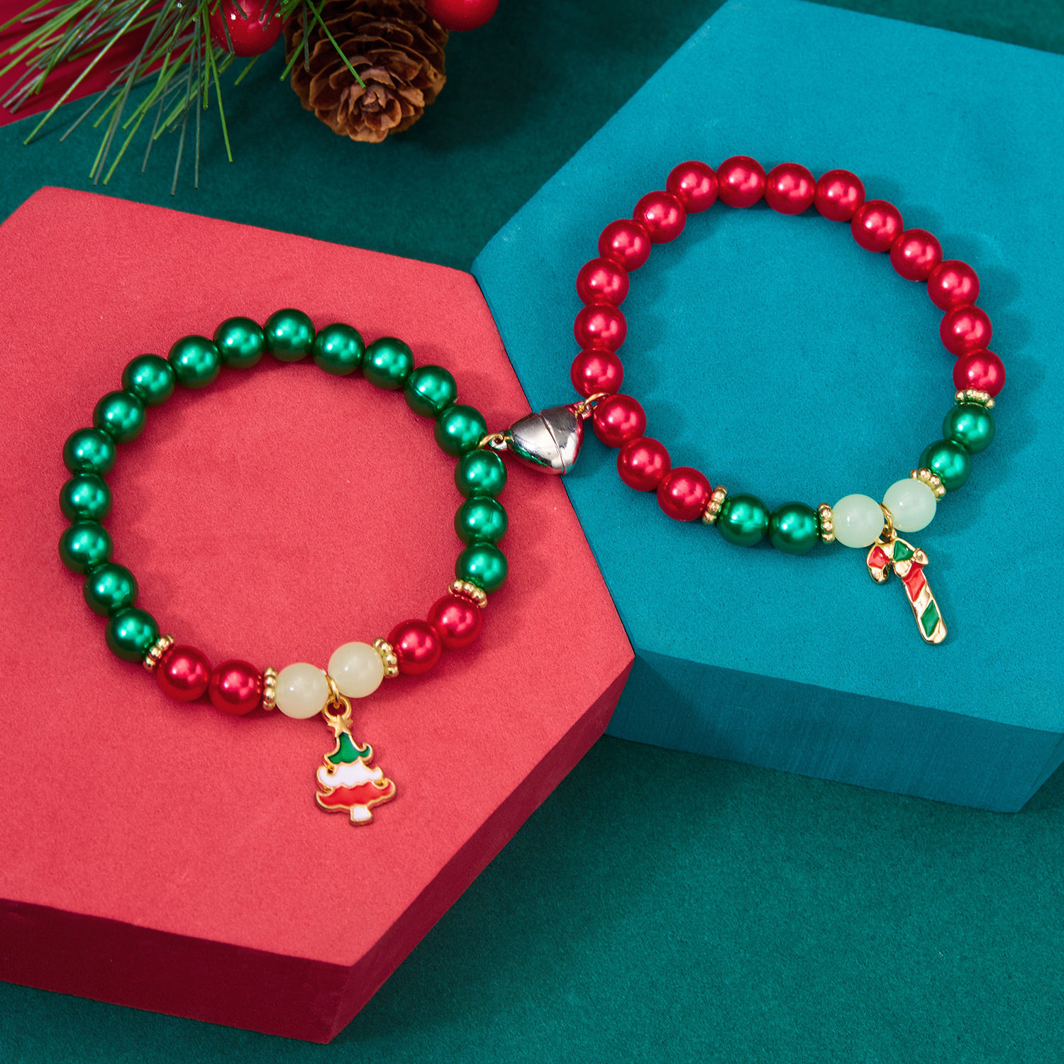 Cross-Border Best-Selling Christmas Holiday Beaded Bracelets Santa Claus Christmas Tree Bells Love Heart Magnetic Couple Bracelets