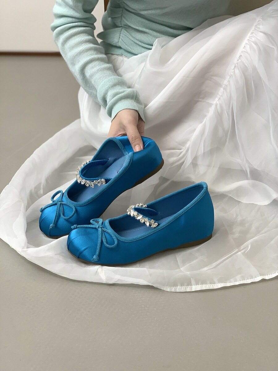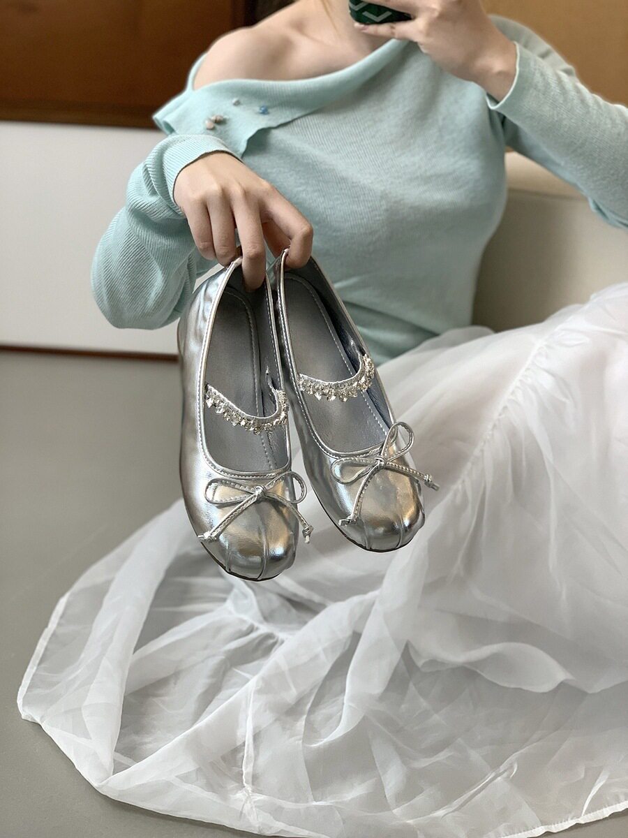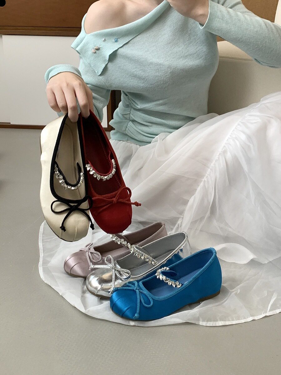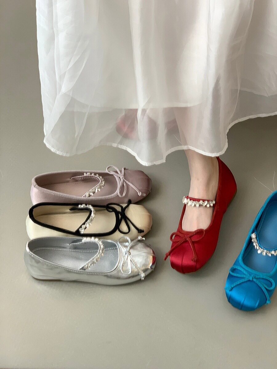 Women's French-Style Mary Jane Shoes with 4cm Hidden Height Increase, Red Rhinestone Ballet Shoes for Spring/Summer 2025