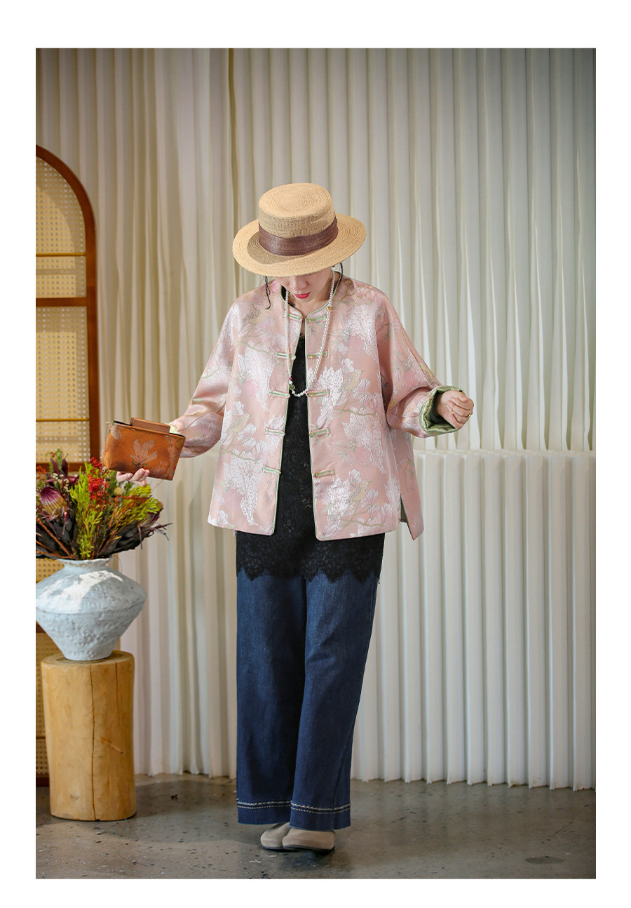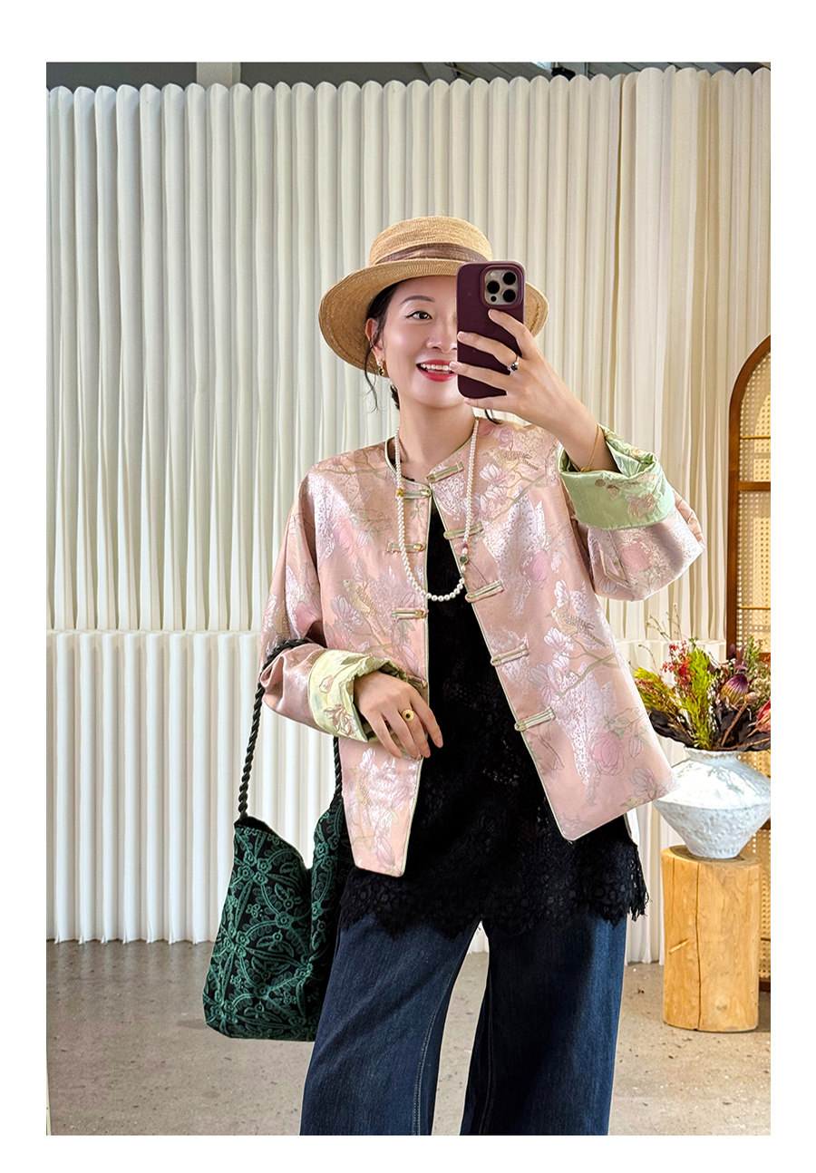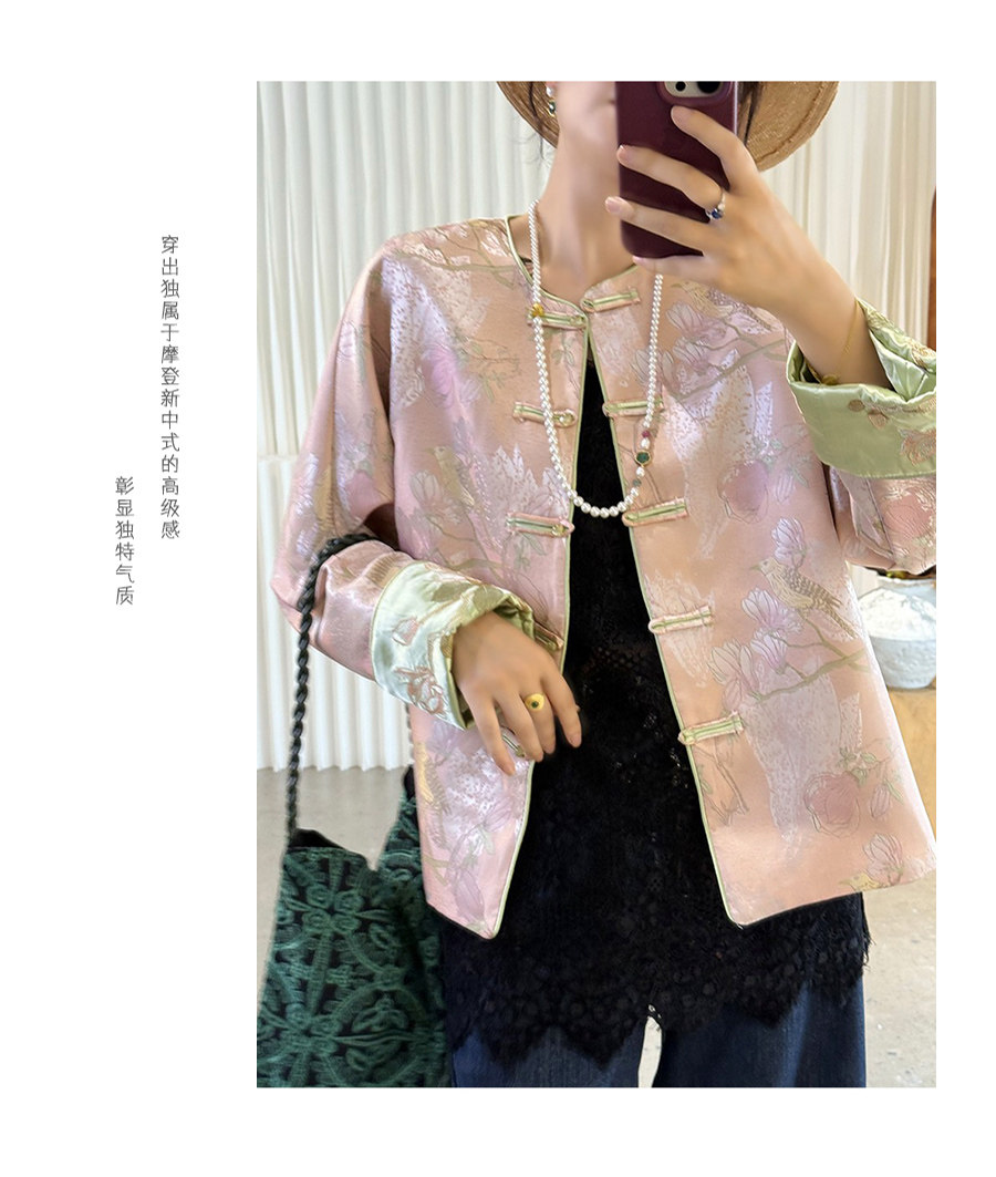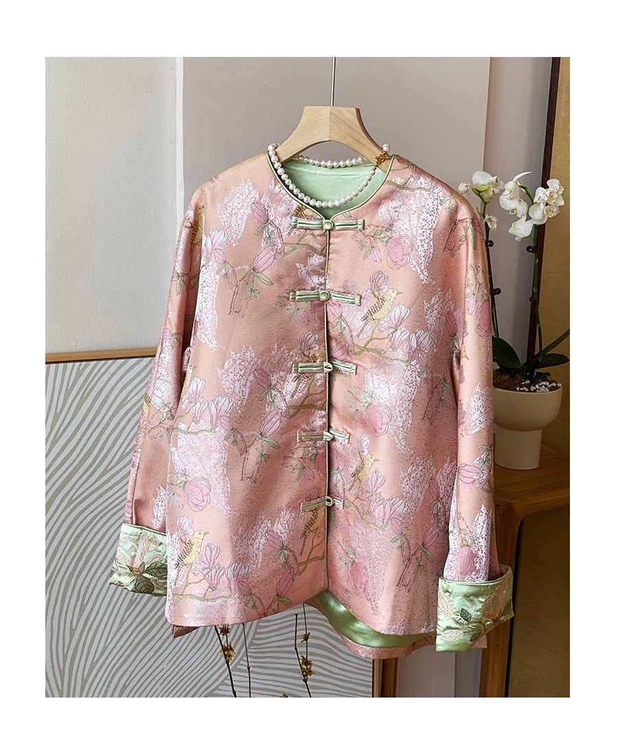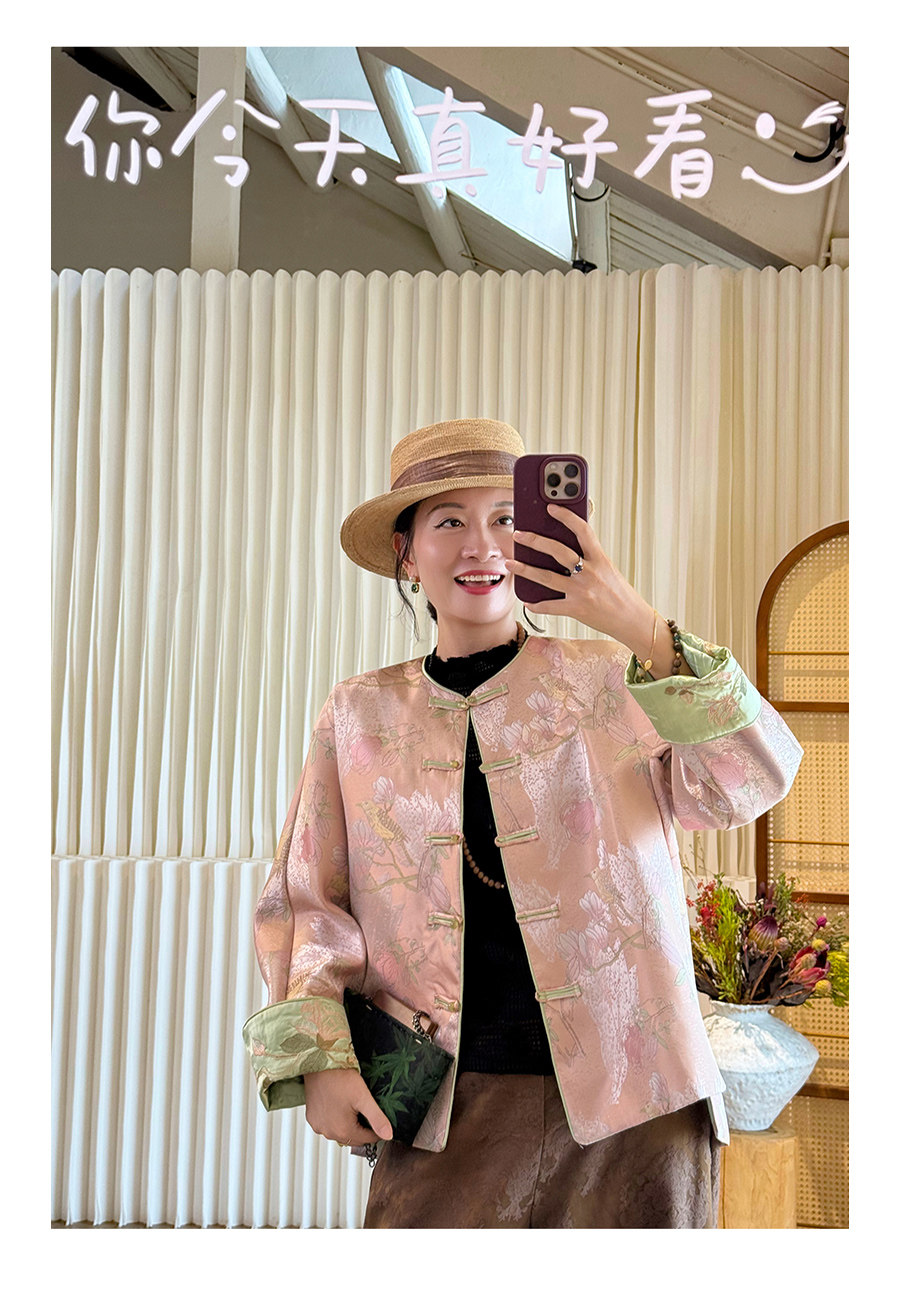 Floating Lotus [Magnolia Youth] Autumn New Chinese Style Luxurious Silk Jacquard Elegant Round Neck Magnolia Embroidered Jacket