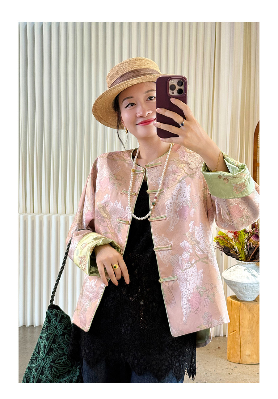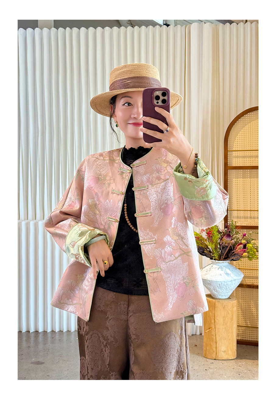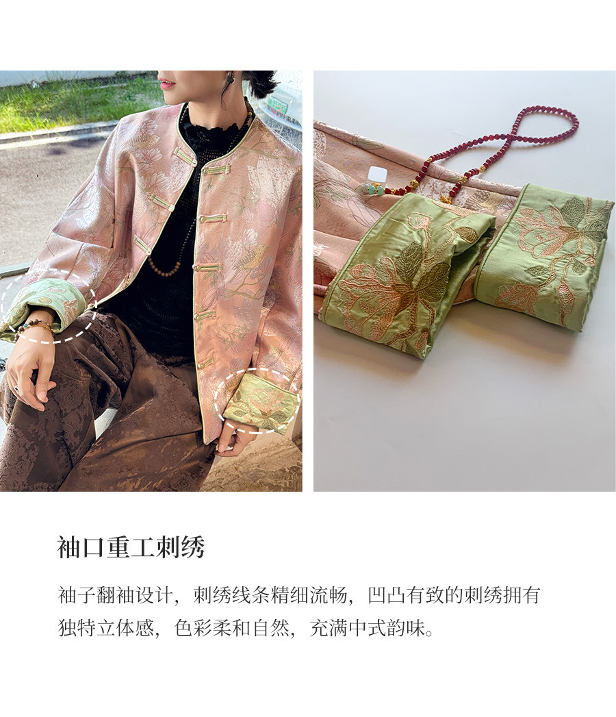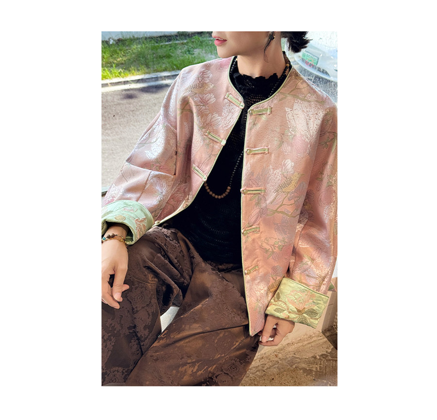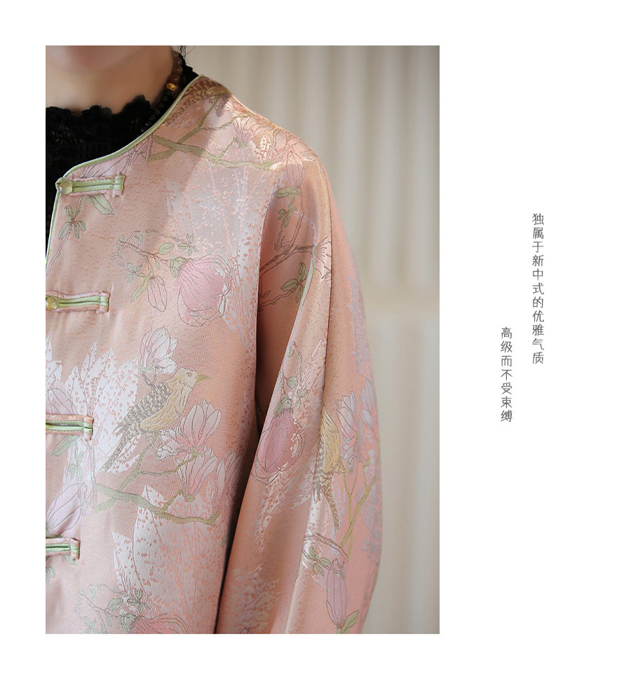 Floating Lotus [Magnolia Youth] Autumn New Chinese Style Luxurious Silk Jacquard Elegant Round Neck Magnolia Embroidered Jacket