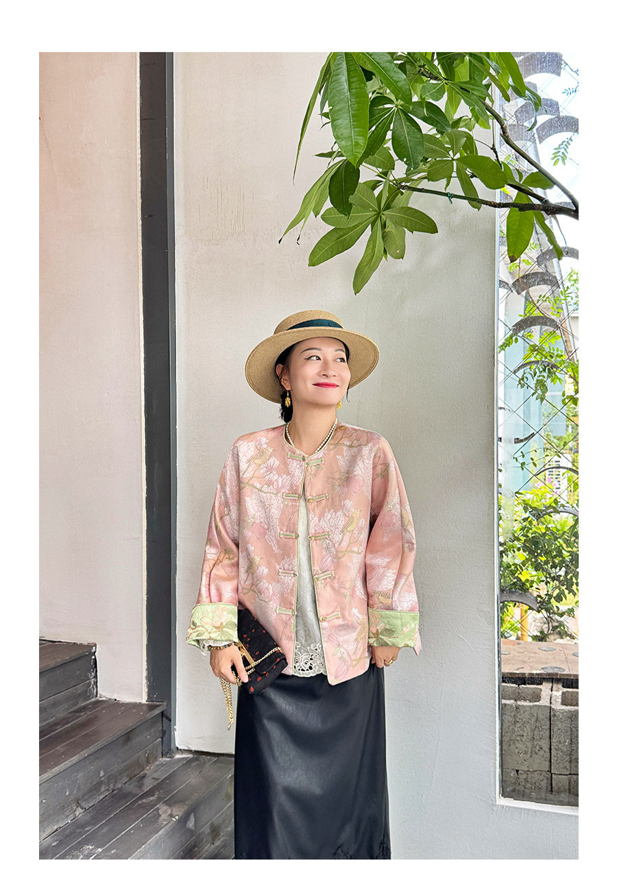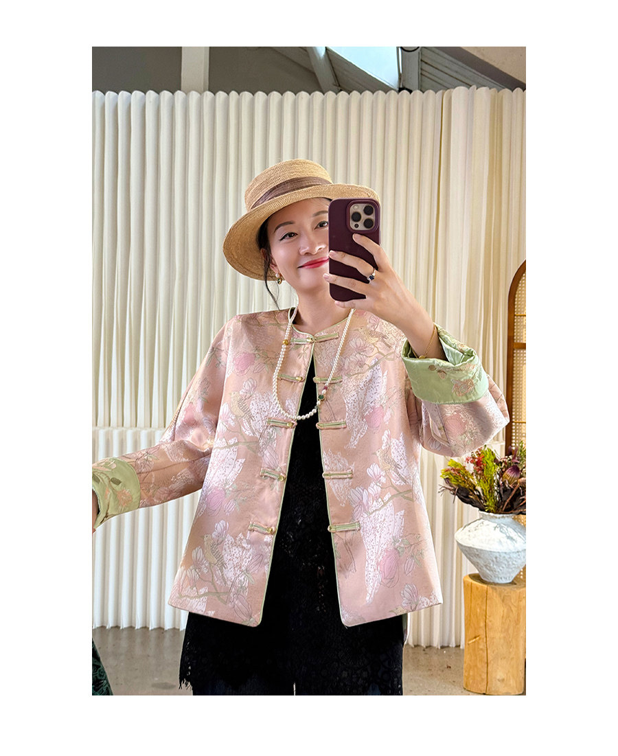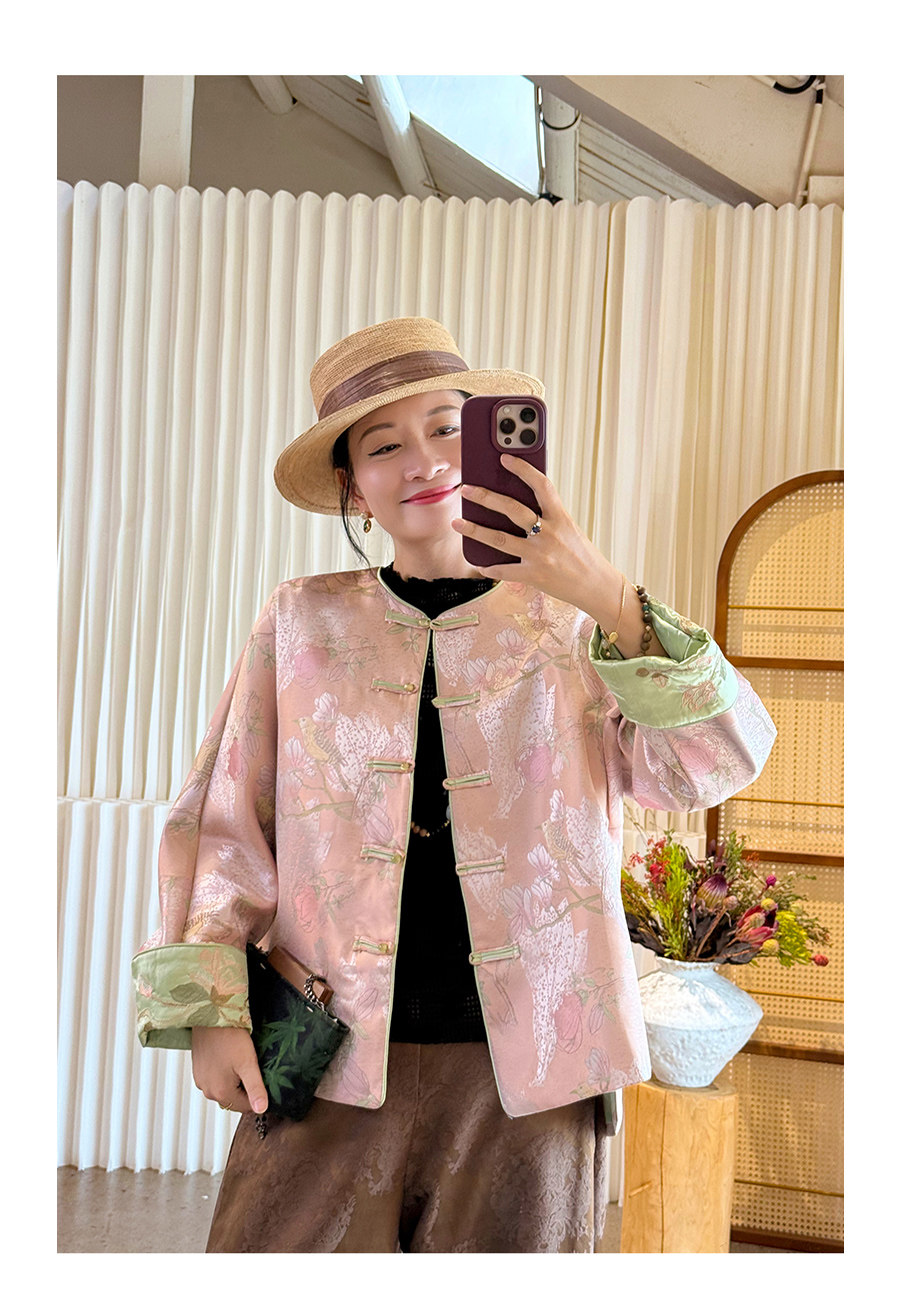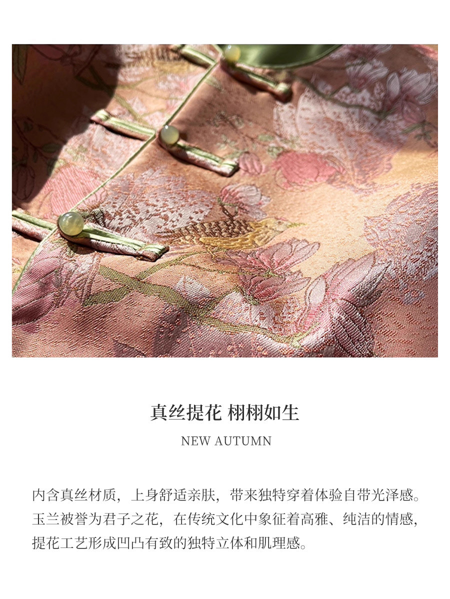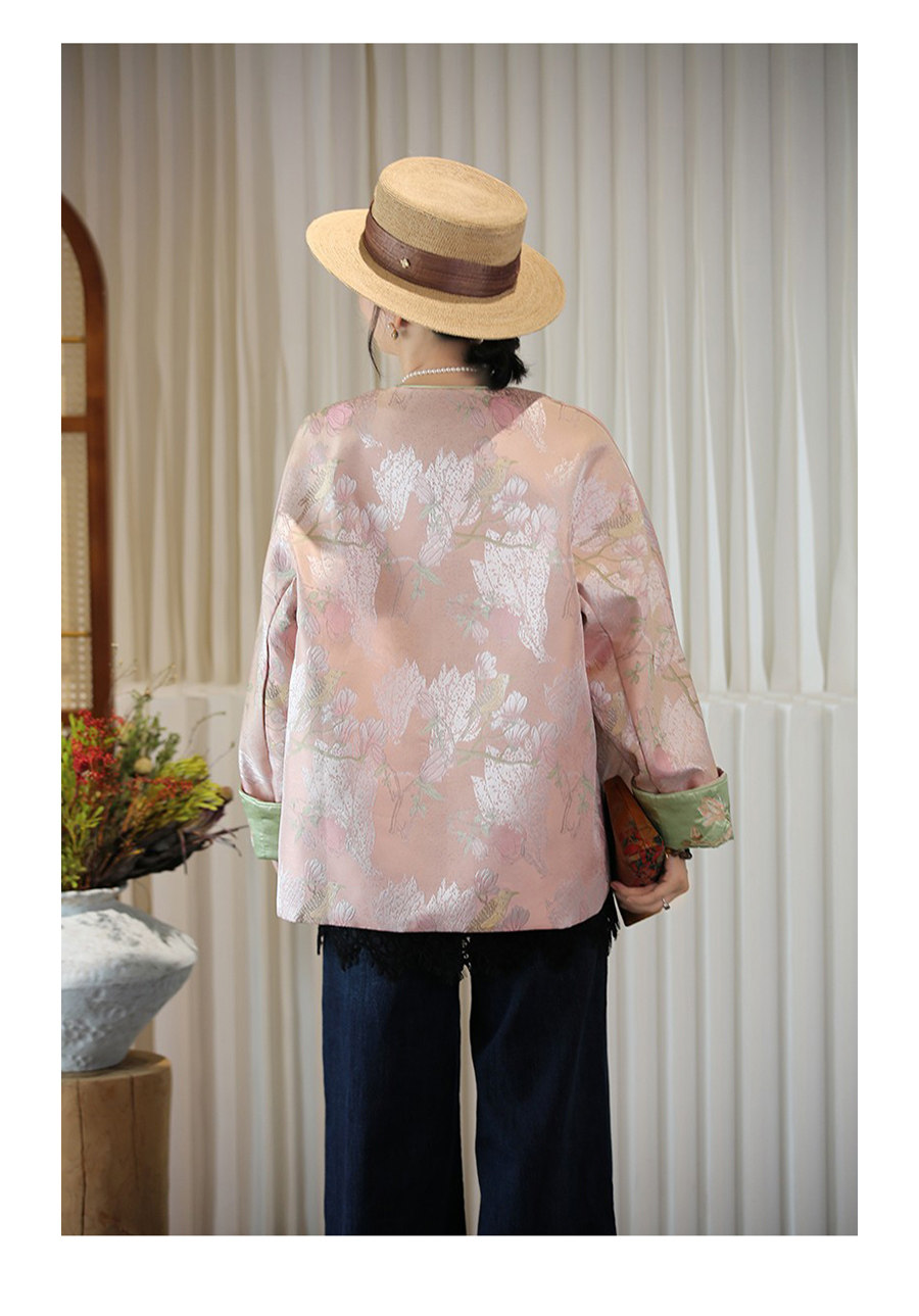Floating Lotus [Magnolia Youth] Autumn New Chinese Style Luxurious Silk Jacquard Elegant Round Neck Magnolia Embroidered Jacket