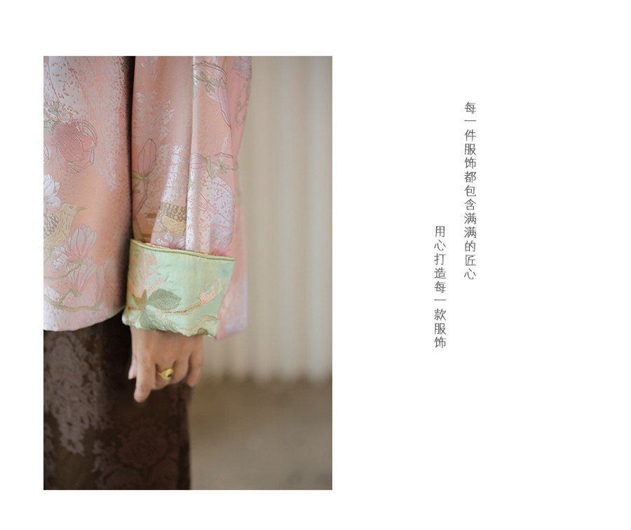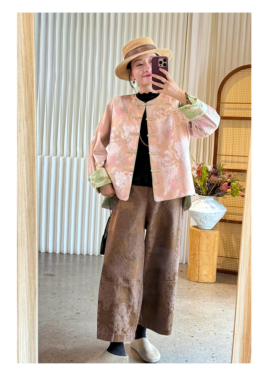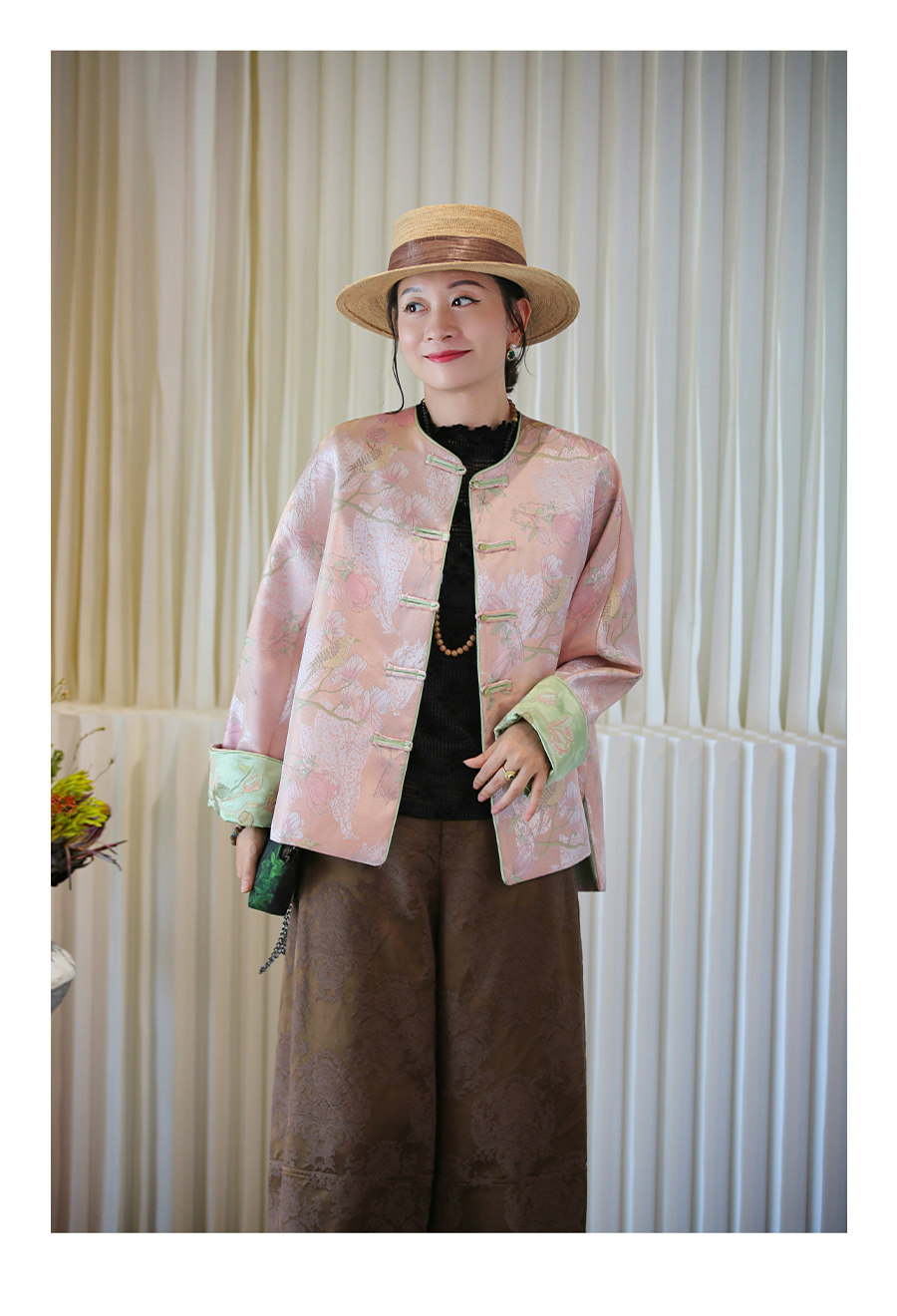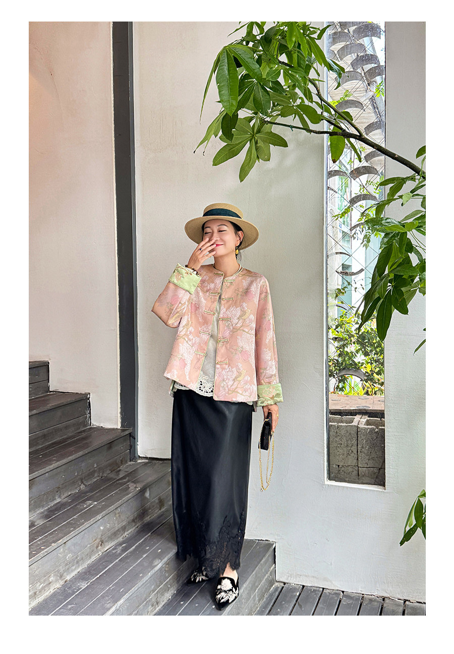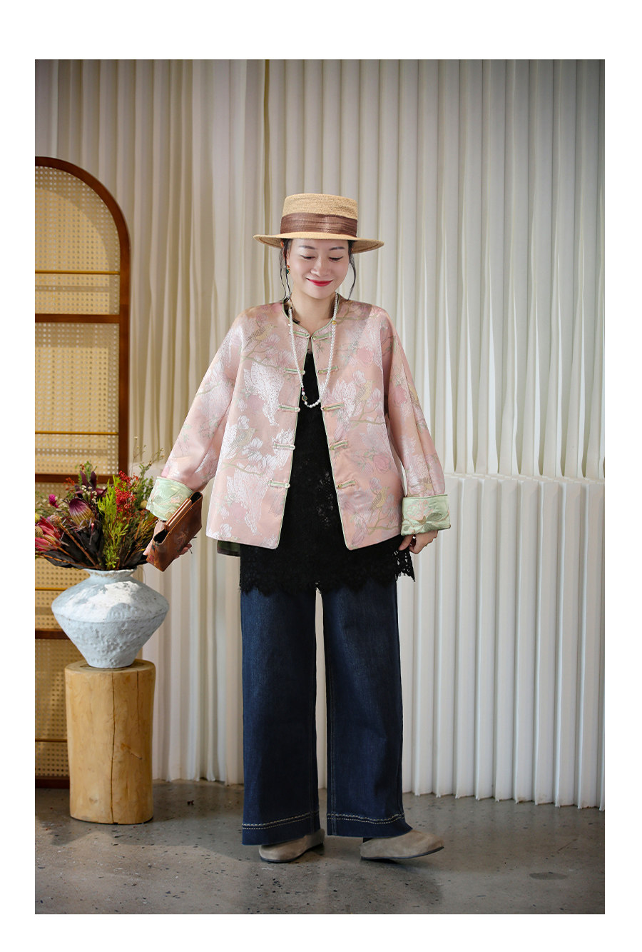 Floating Lotus [Magnolia Youth] Autumn New Chinese Style Luxurious Silk Jacquard Elegant Round Neck Magnolia Embroidered Jacket