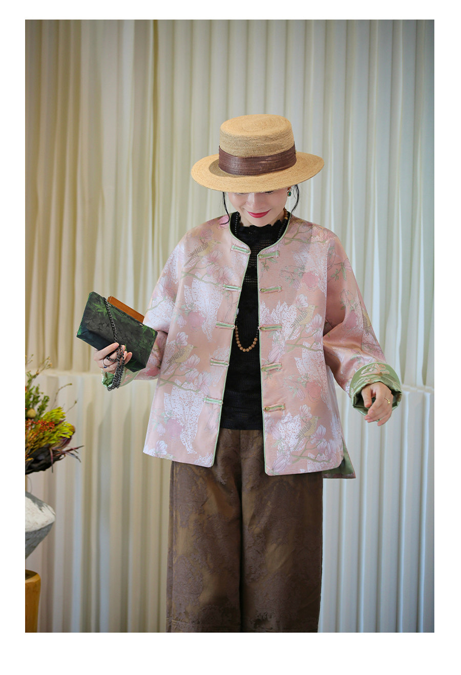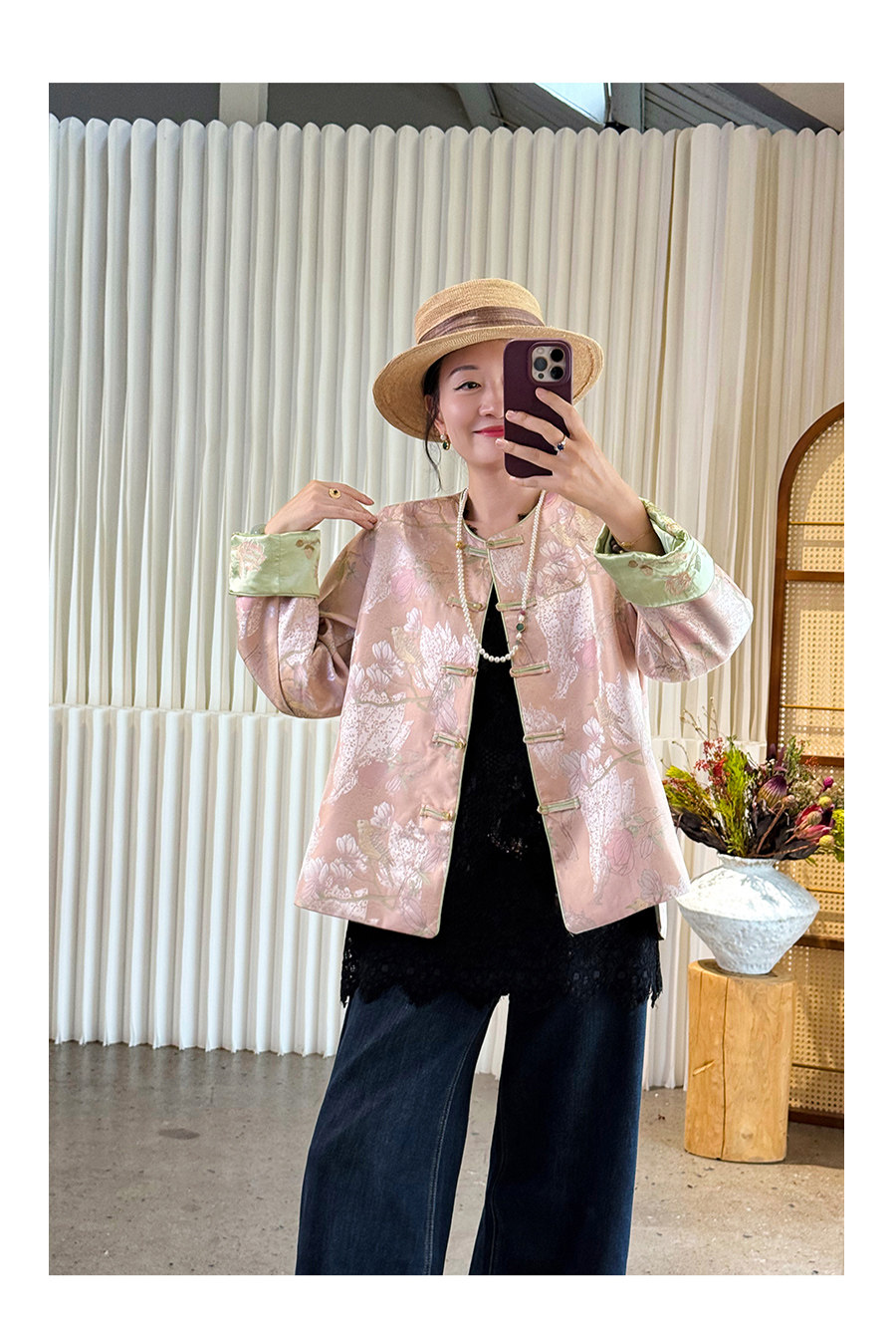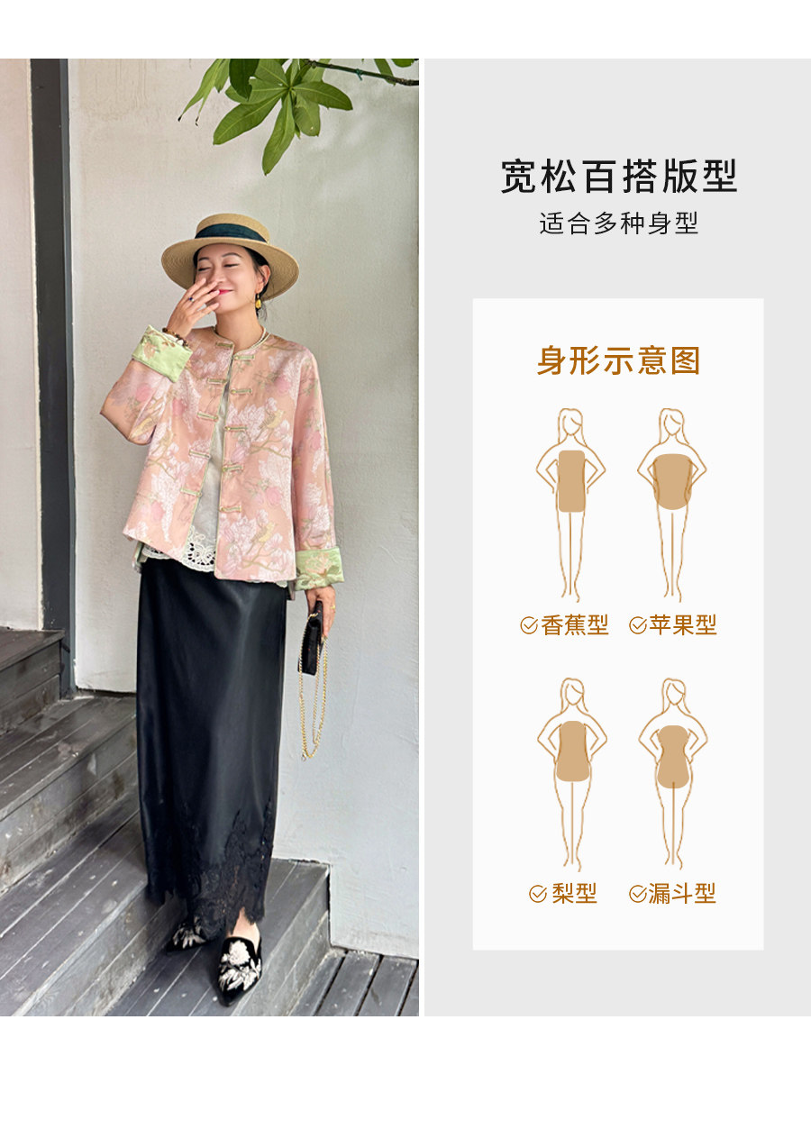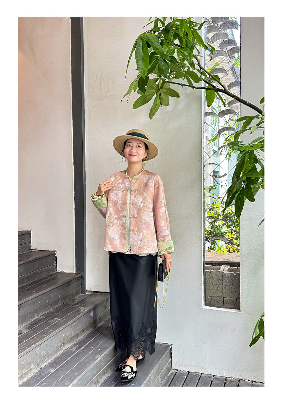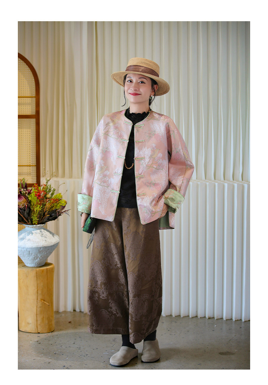 Floating Lotus [Magnolia Youth] Autumn New Chinese Style Luxurious Silk Jacquard Elegant Round Neck Magnolia Embroidered Jacket