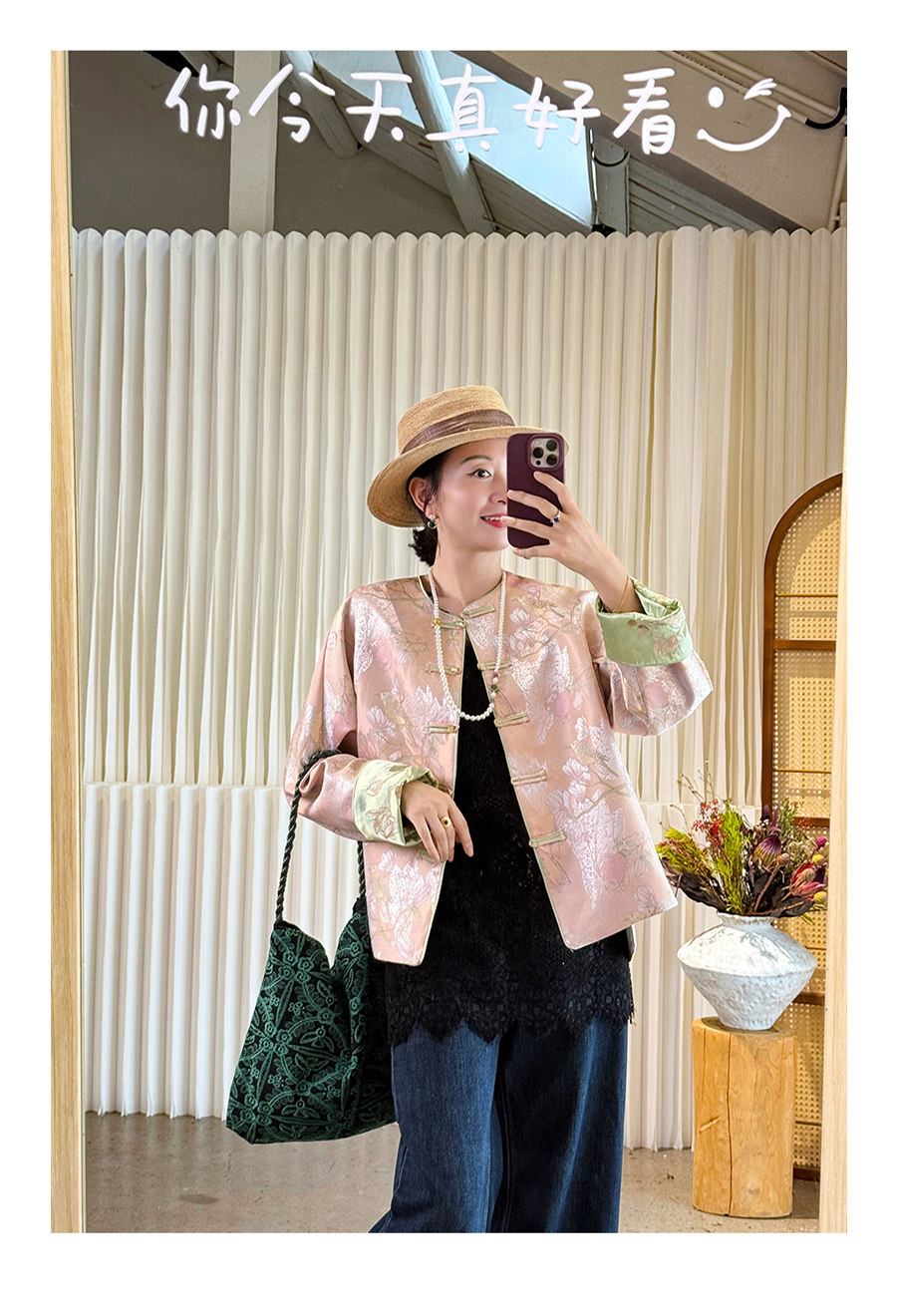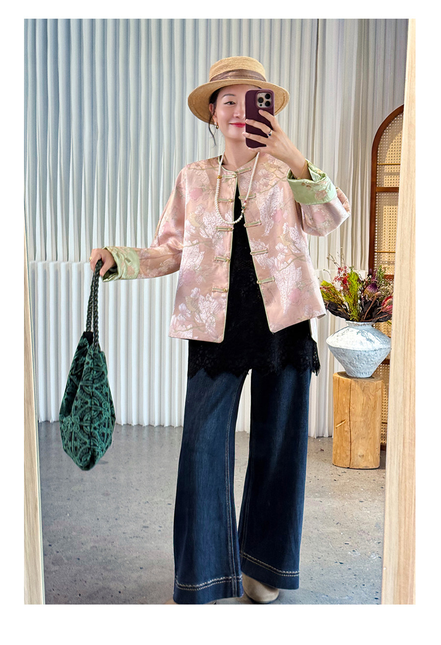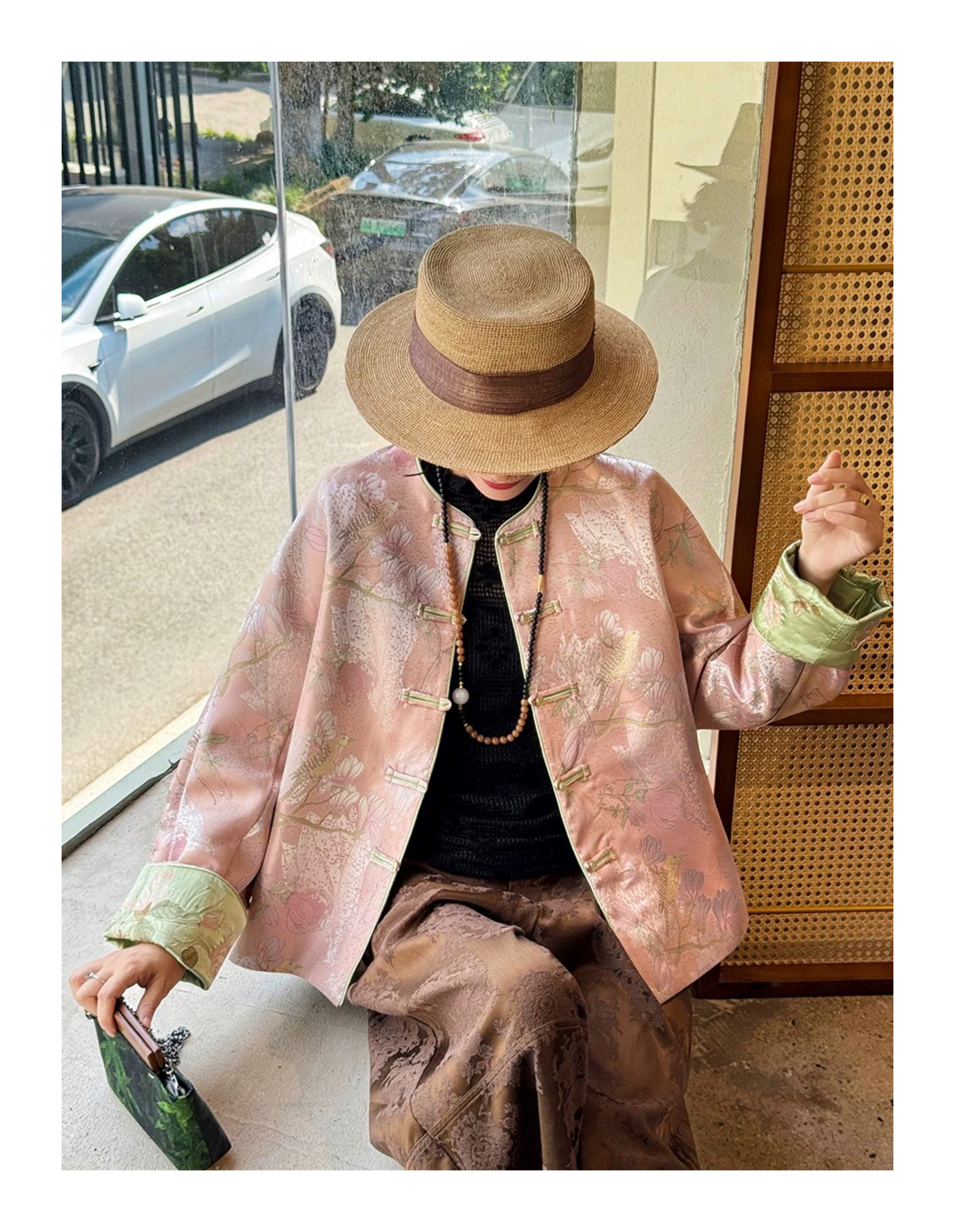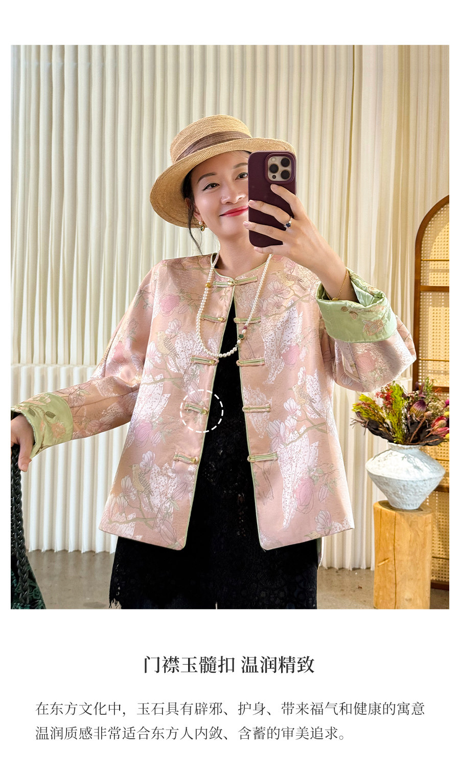 Floating Lotus [Magnolia Youth] Autumn New Chinese Style Luxurious Silk Jacquard Elegant Round Neck Magnolia Embroidered Jacket