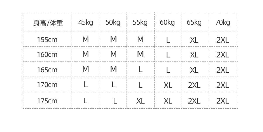 China (cm) 160-165/84-86 165-170 / 88-90 167-172 / 92-96 168-173 / 98-102 170-176 / 106-110