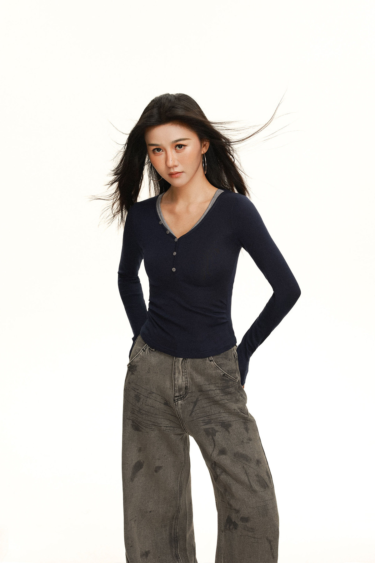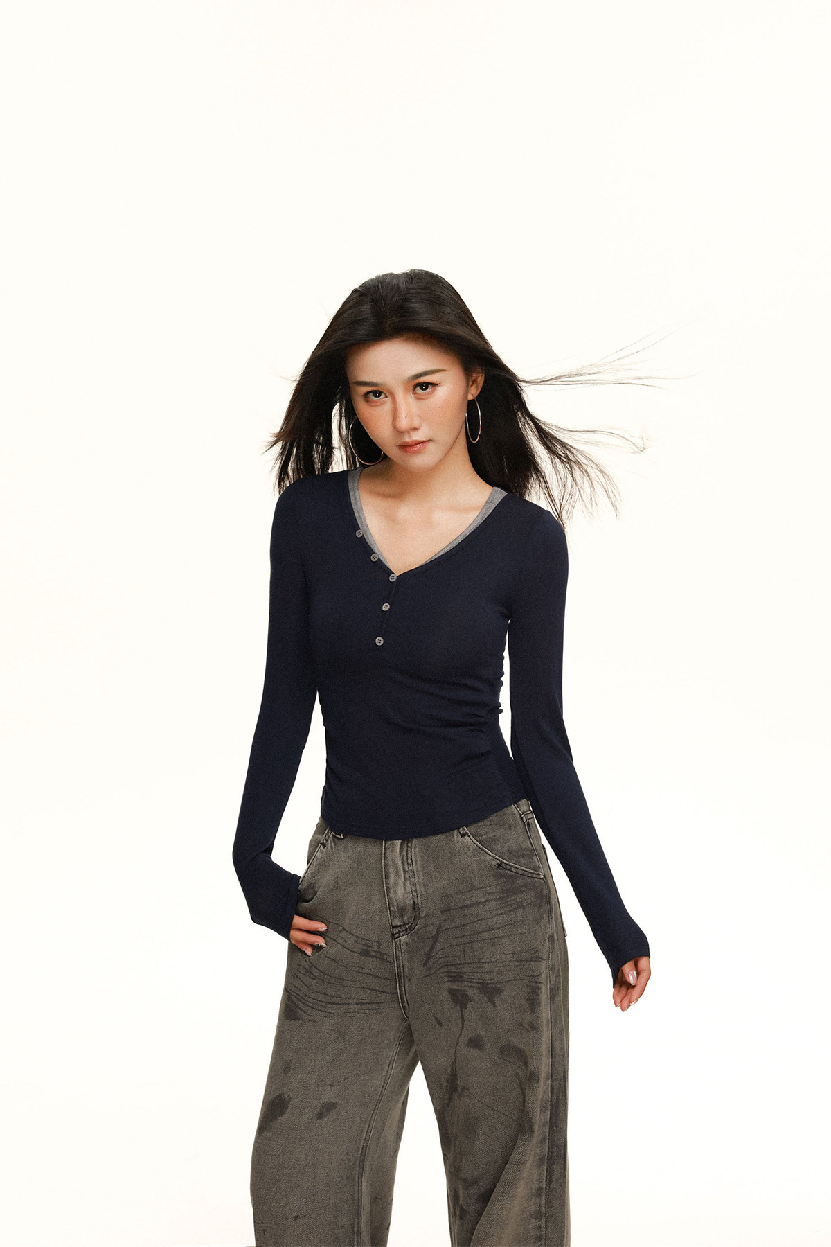 Style Details Contrast Color,Buttons,Splicing