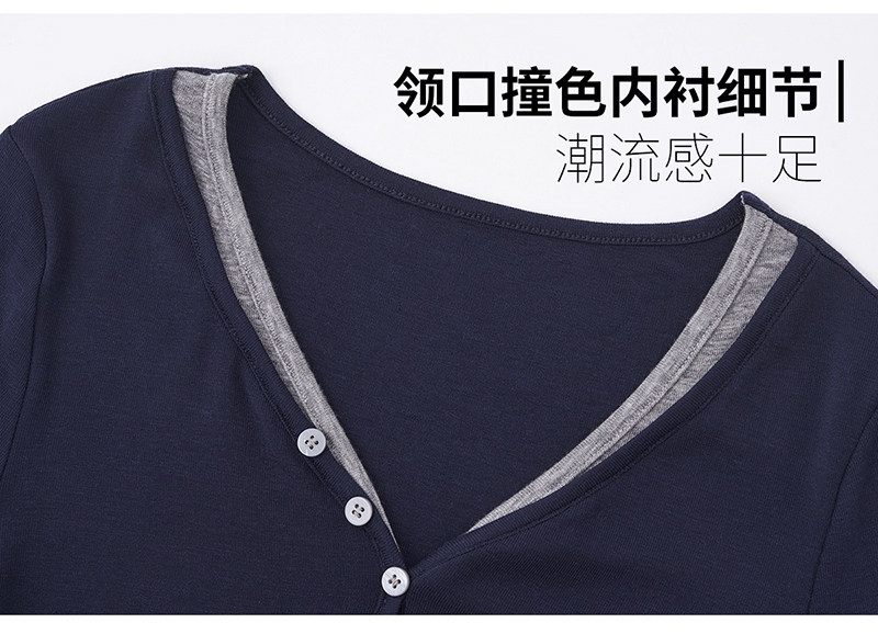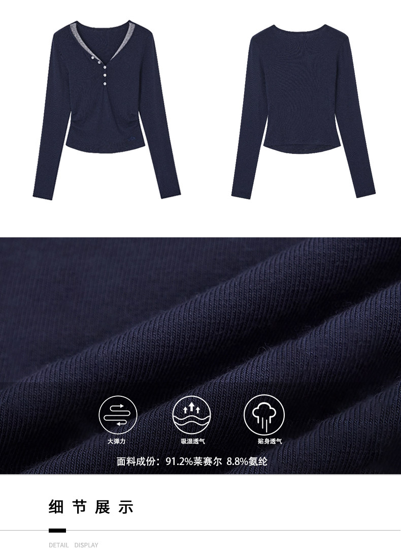 European Style V-Neck Button-Up Long-Sleeve T-Shirt for Women, New Autumn and Winter Design, Unique Lyocell Tencel Waist-Cinching Slimming Top