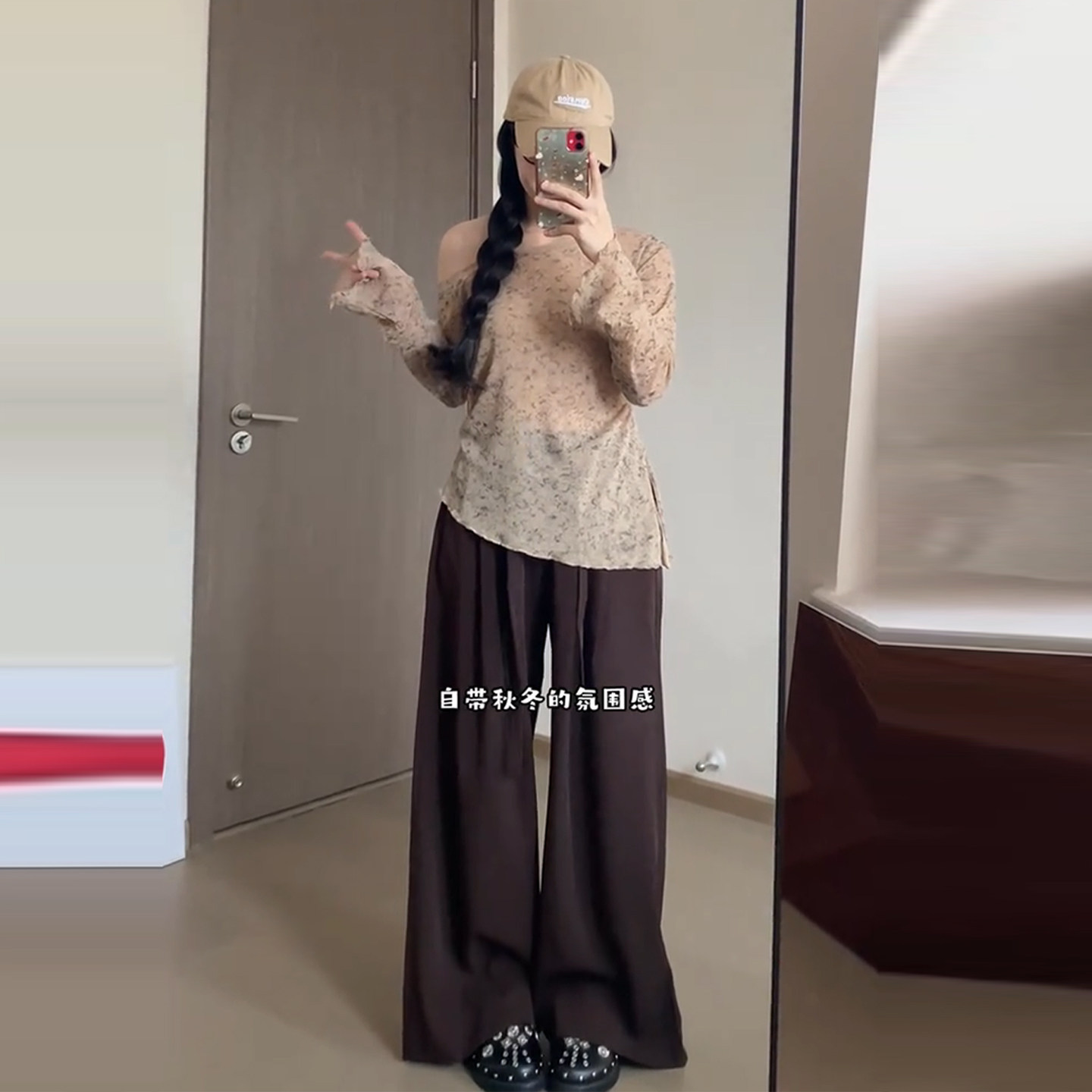 Plus-Size Casual Suit Pants for Women, Autumn and Winter, Slimming Loose Straight-Leg Wide-Leg Pants with Drape Effect, Floor-Length Trousers