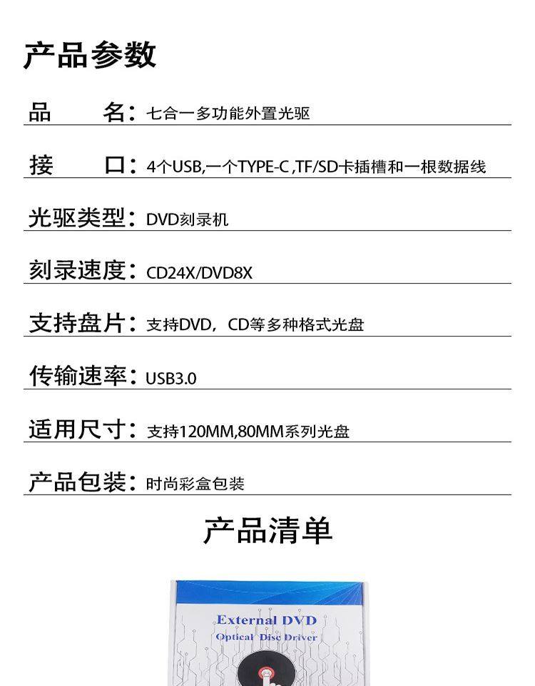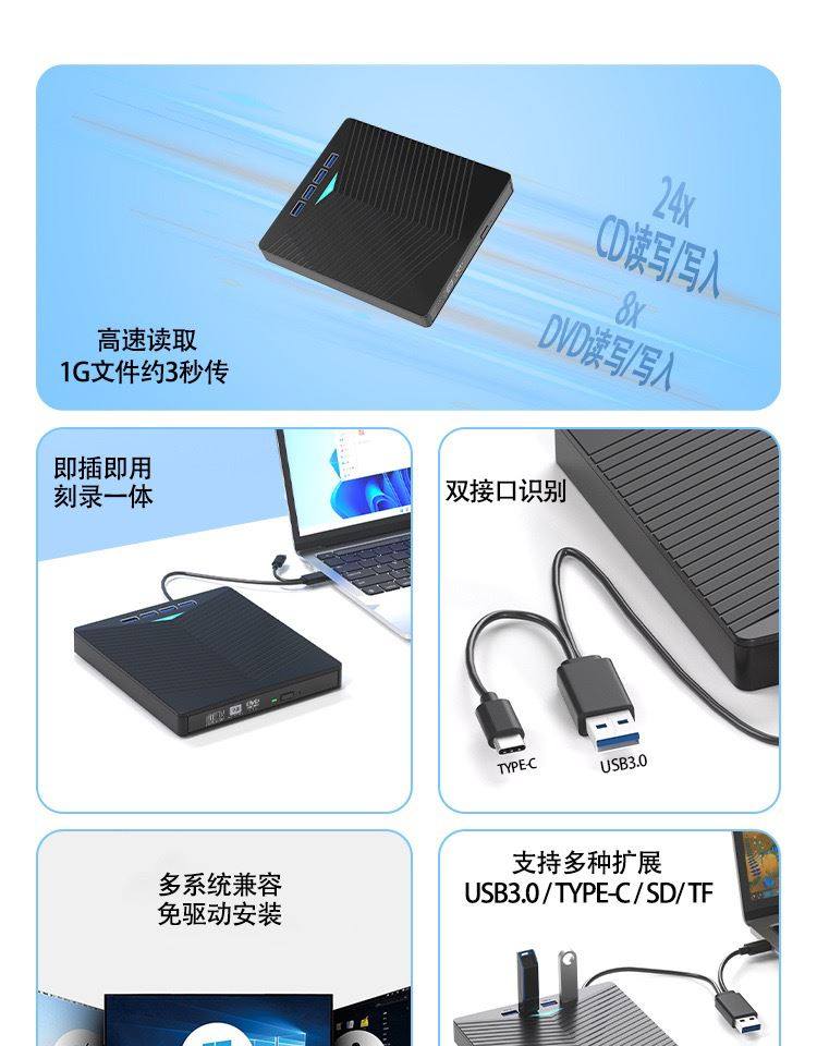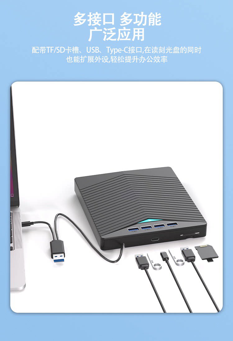 Pulu Usb3.0 External Burner Desktop Dvd All-In-One Plug-In Card Type Multi-Function Bd Disc Player External Mobile Blu-Ray Drive Sd/Tf Card Reader External Reading Player