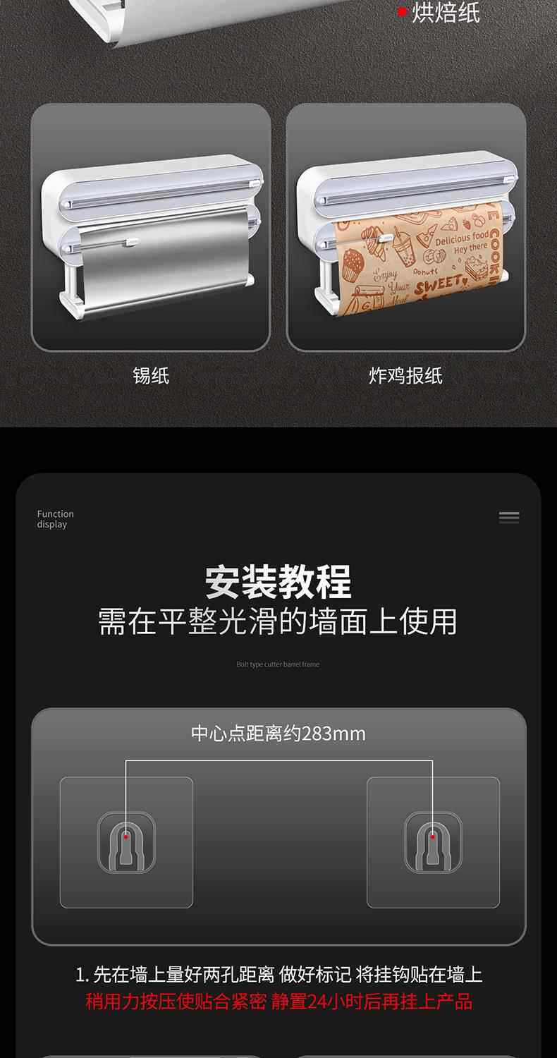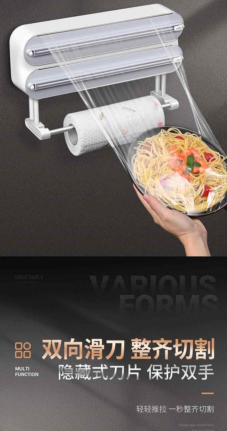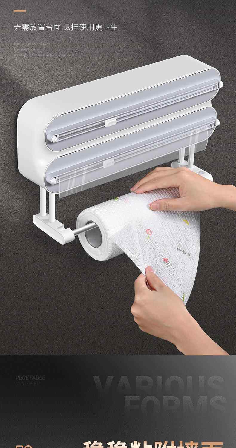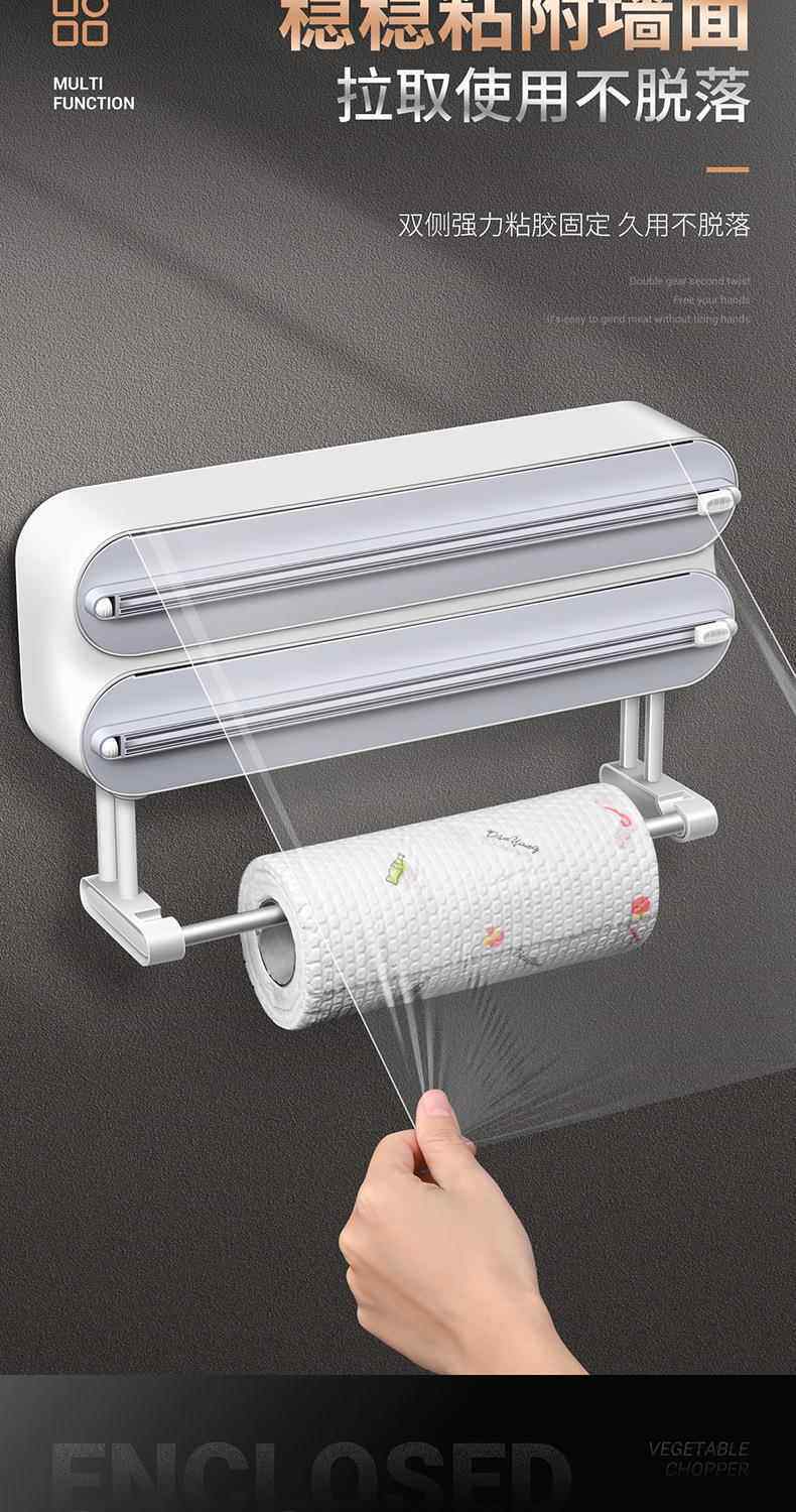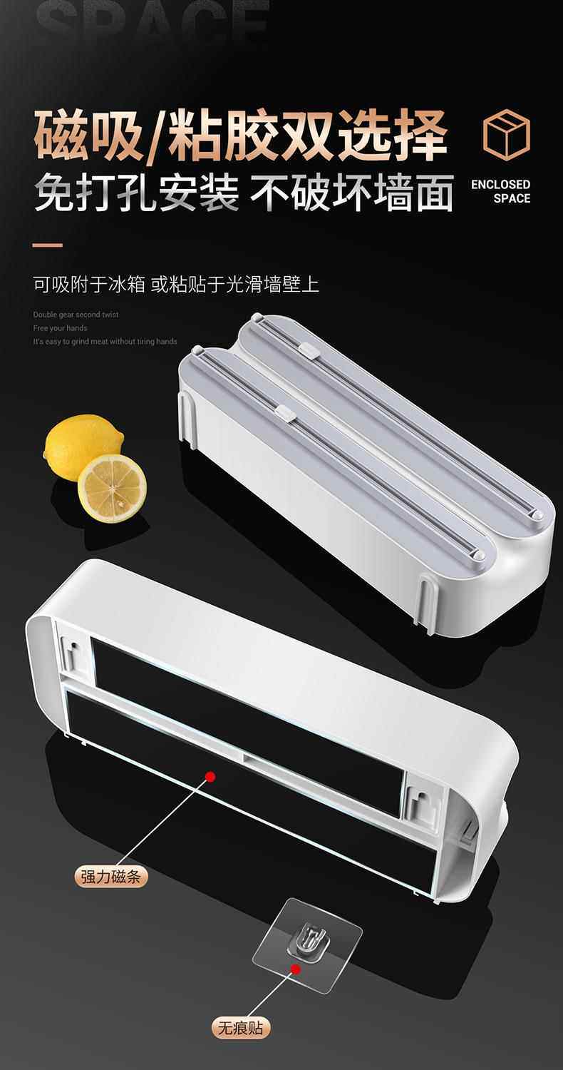 Electric cling film cutter household refrigerator wall-mounted punch-free fully automatic tear-free kitchen smart storage box
