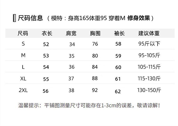 China (cm) 165 / 88-90 170 / 96-98 175 / 108-110 180 / 118-122 185 / 126-130