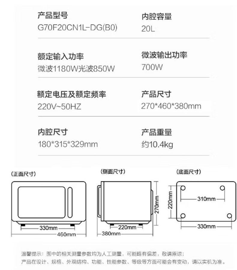 Color Classification 20L Flat Panel Light Wave Micro-Steam and Bake All in One [Dg(B0)],20L Flat Panel Microwave and Micro-Baking All-In-One [Dg(W0)],20L Knob Flat Panel Light Wave Oven [Zs(W0)],20L Stainless Steel Microwave Oven [C2K(Ra)]