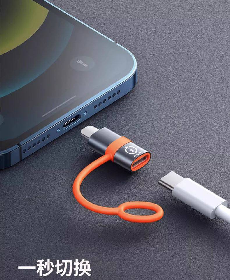 Suitable for Huawei Apple 15/16 Pro Max Anti-Lost Design Adapter Lightning to Type-C Fast Charging Data Cable Pd30W Male-Female Converter Mobile Phone Charging and Transmission Two-In-One Tablet