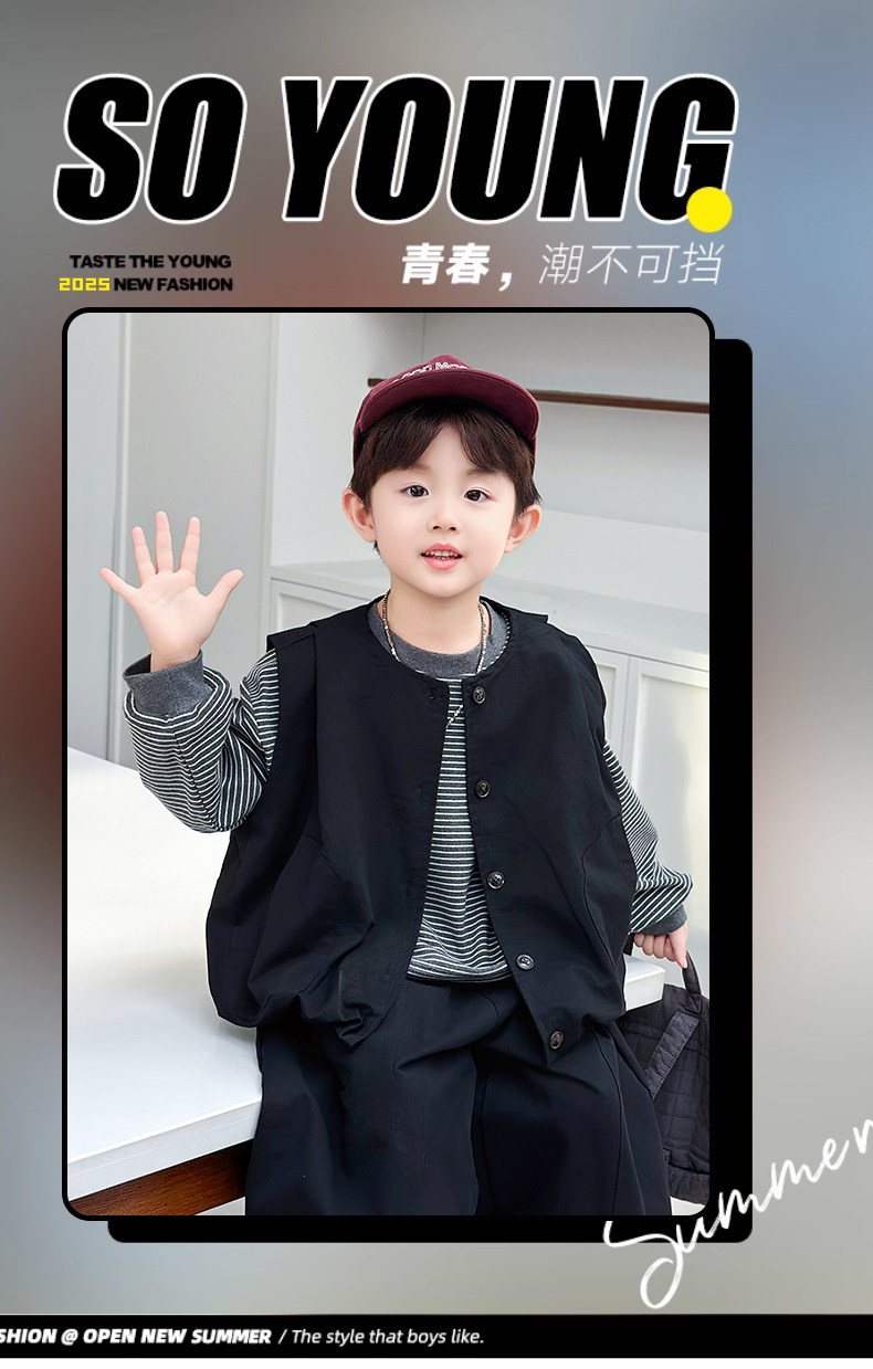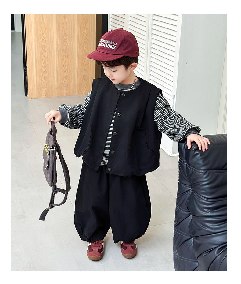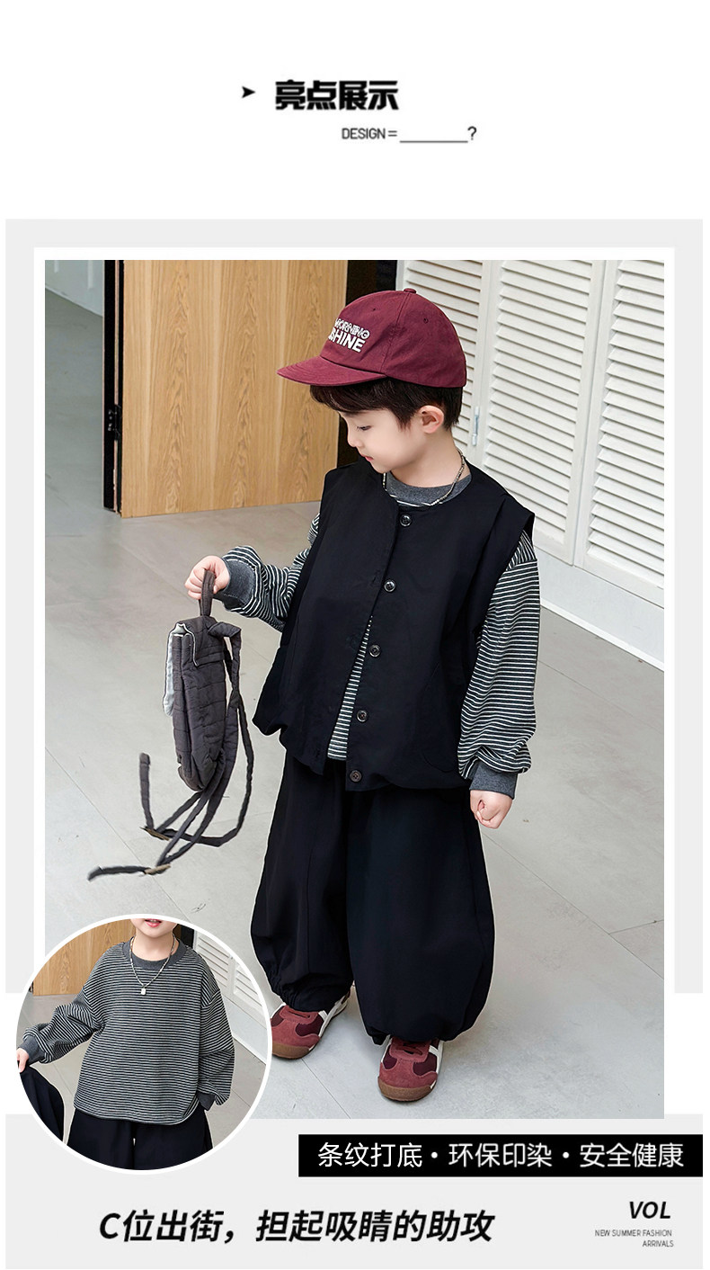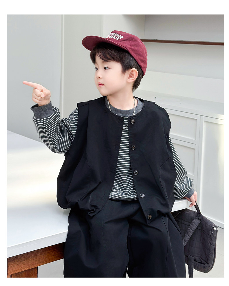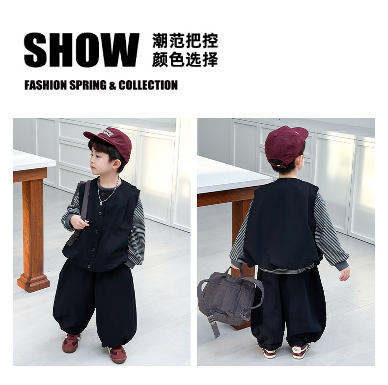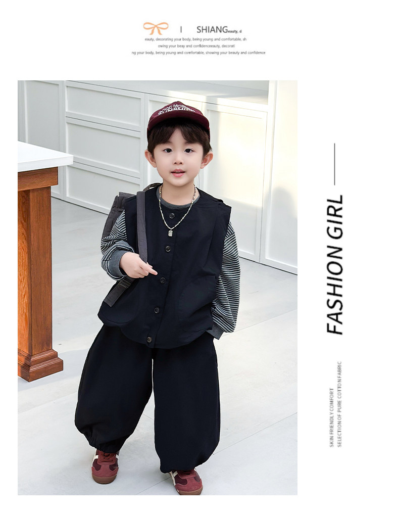 Boys' Suit Autumn 2025 New Children's Korean Style Shirt Vest Three-Piece Set Little Boy Autumn Casual Sweatpants