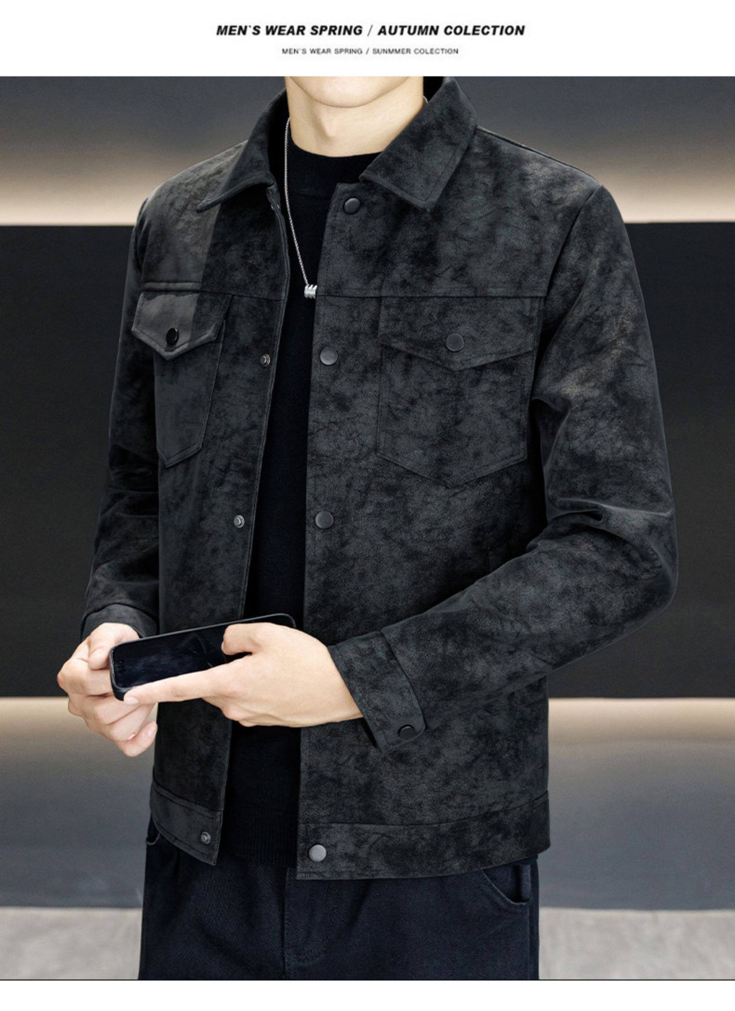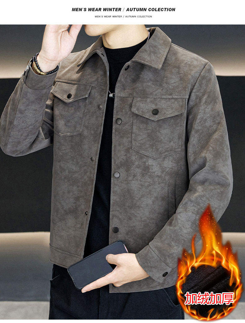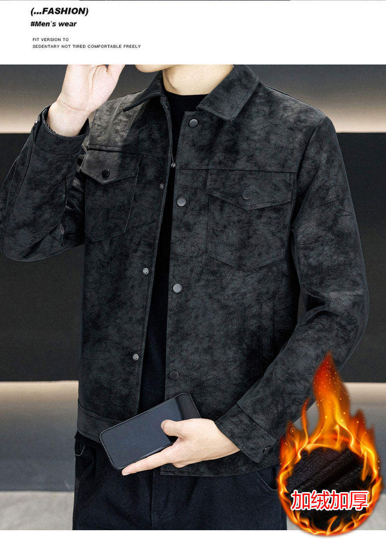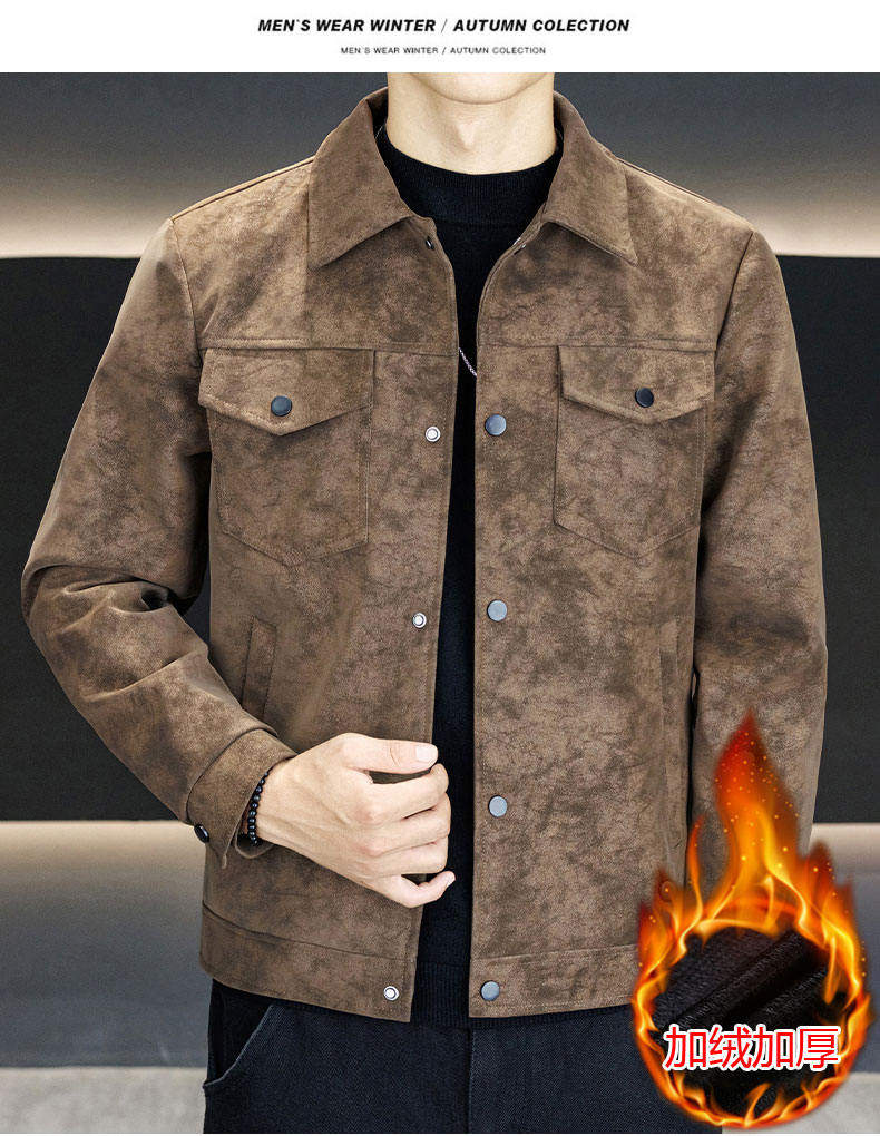 Autumn and winter lapel matte plus velvet leather jacket men's youth internet celebrity slim fit handsome personality warm motorcycle jacket
