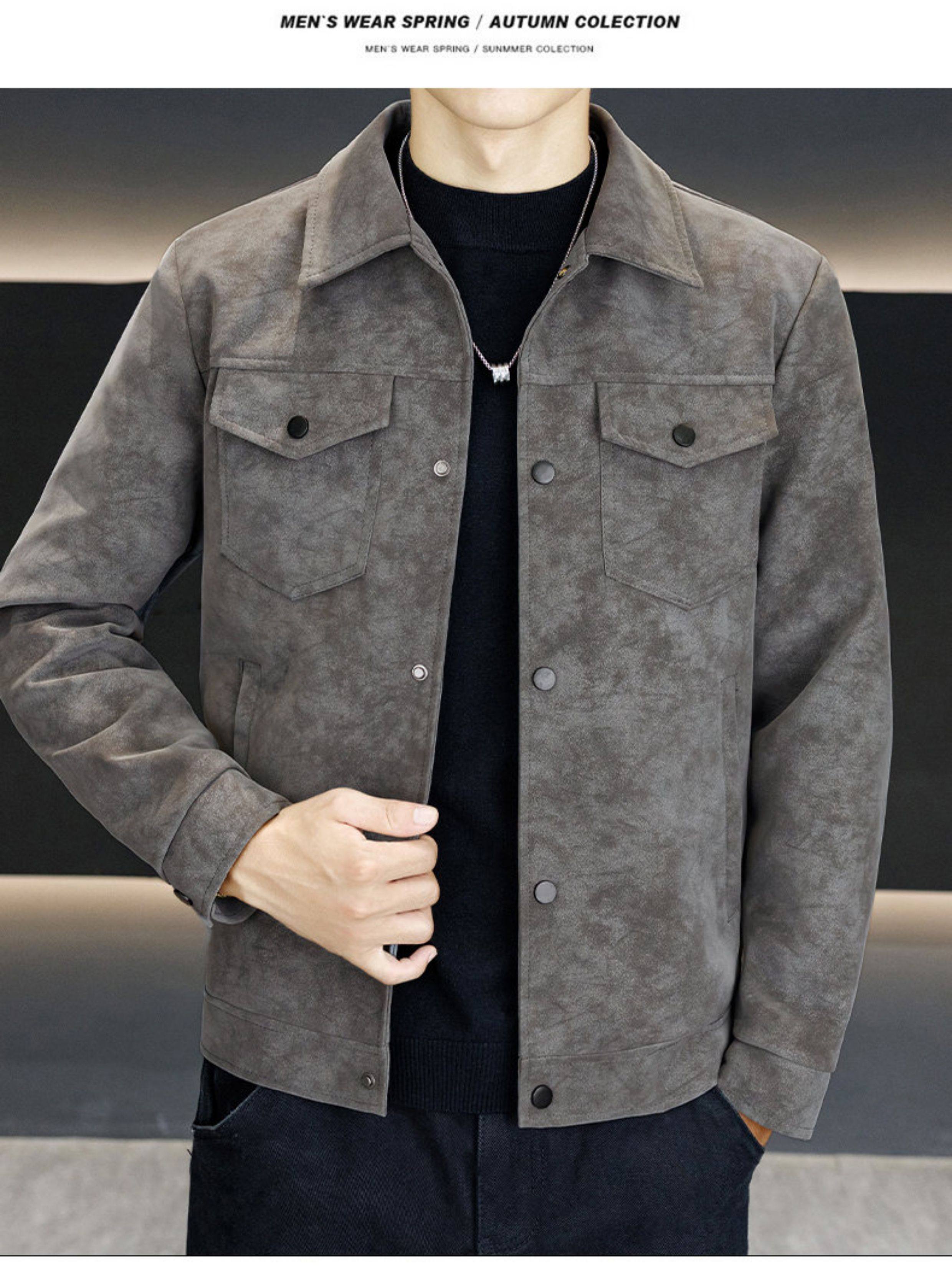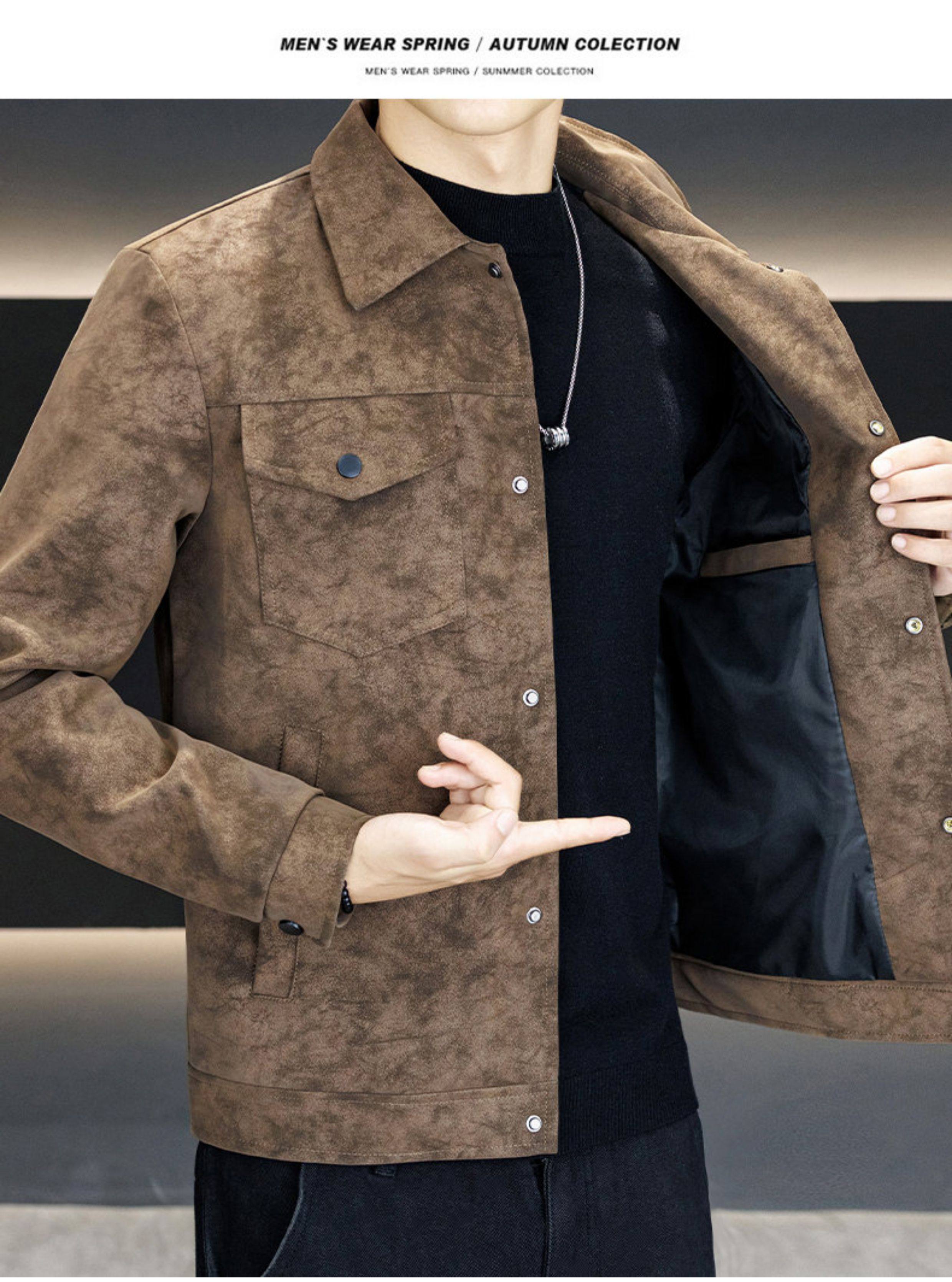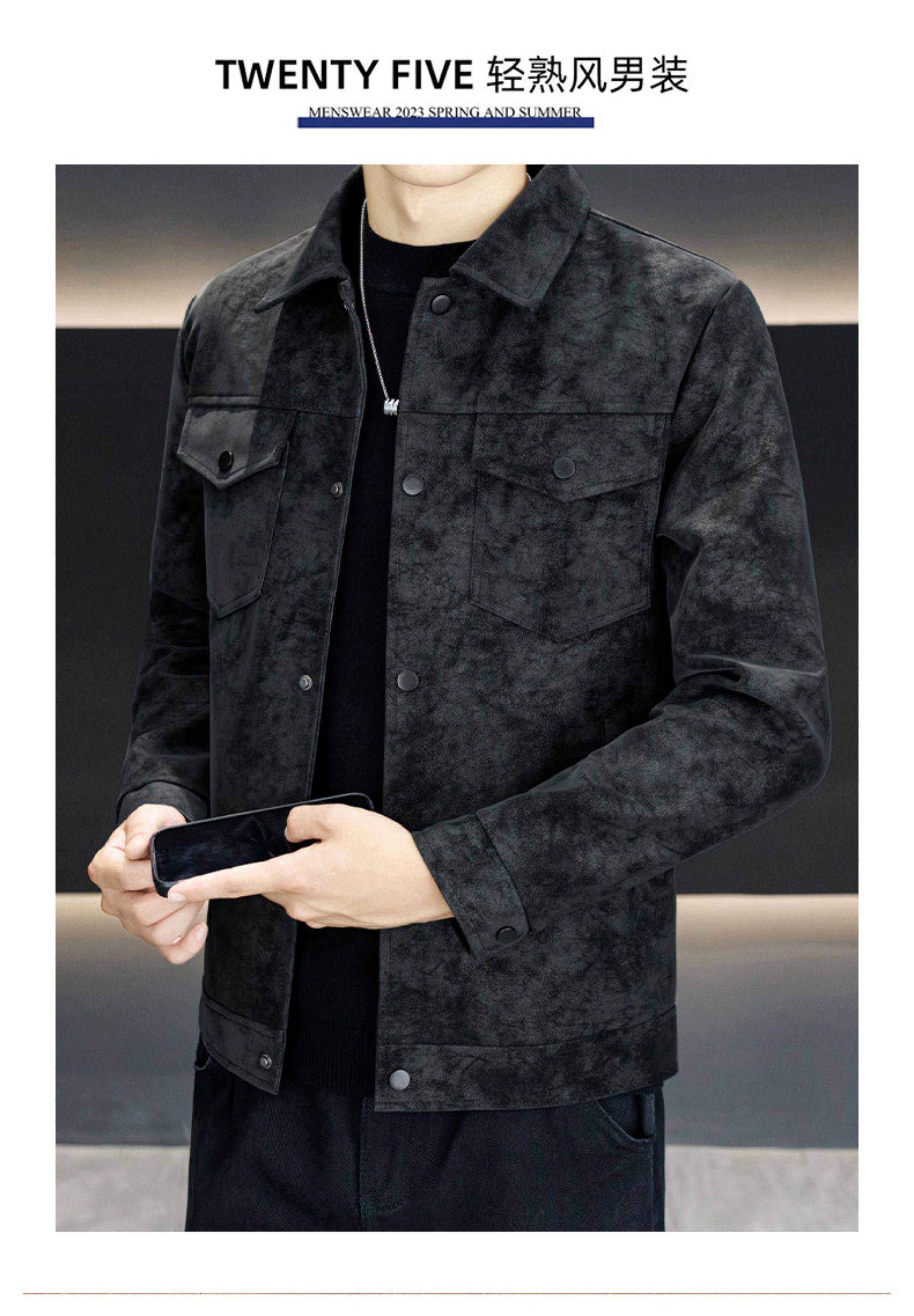 Autumn and winter lapel matte plus velvet leather jacket men's youth internet celebrity slim fit handsome personality warm motorcycle jacket