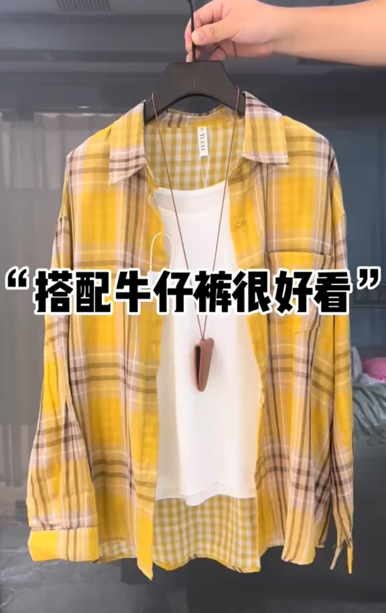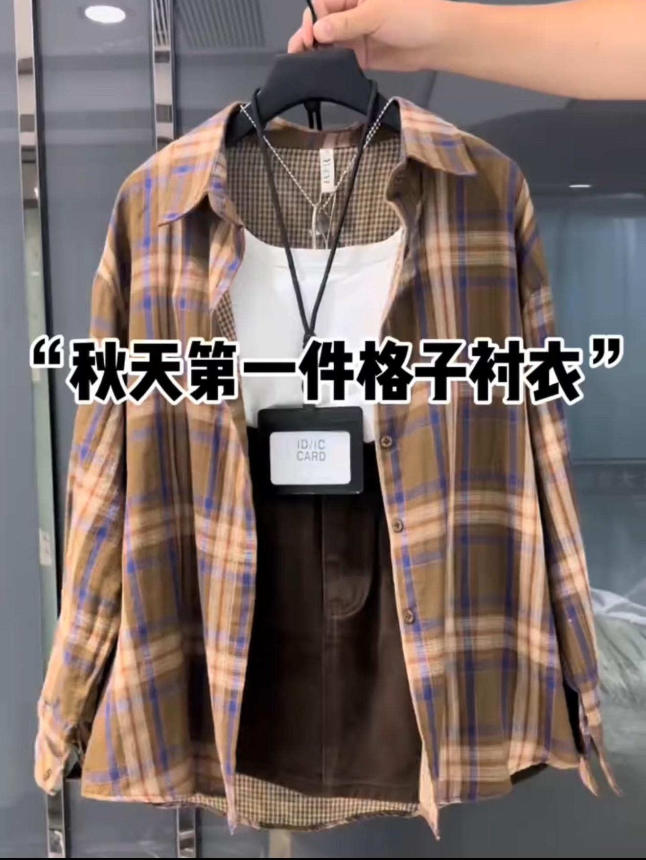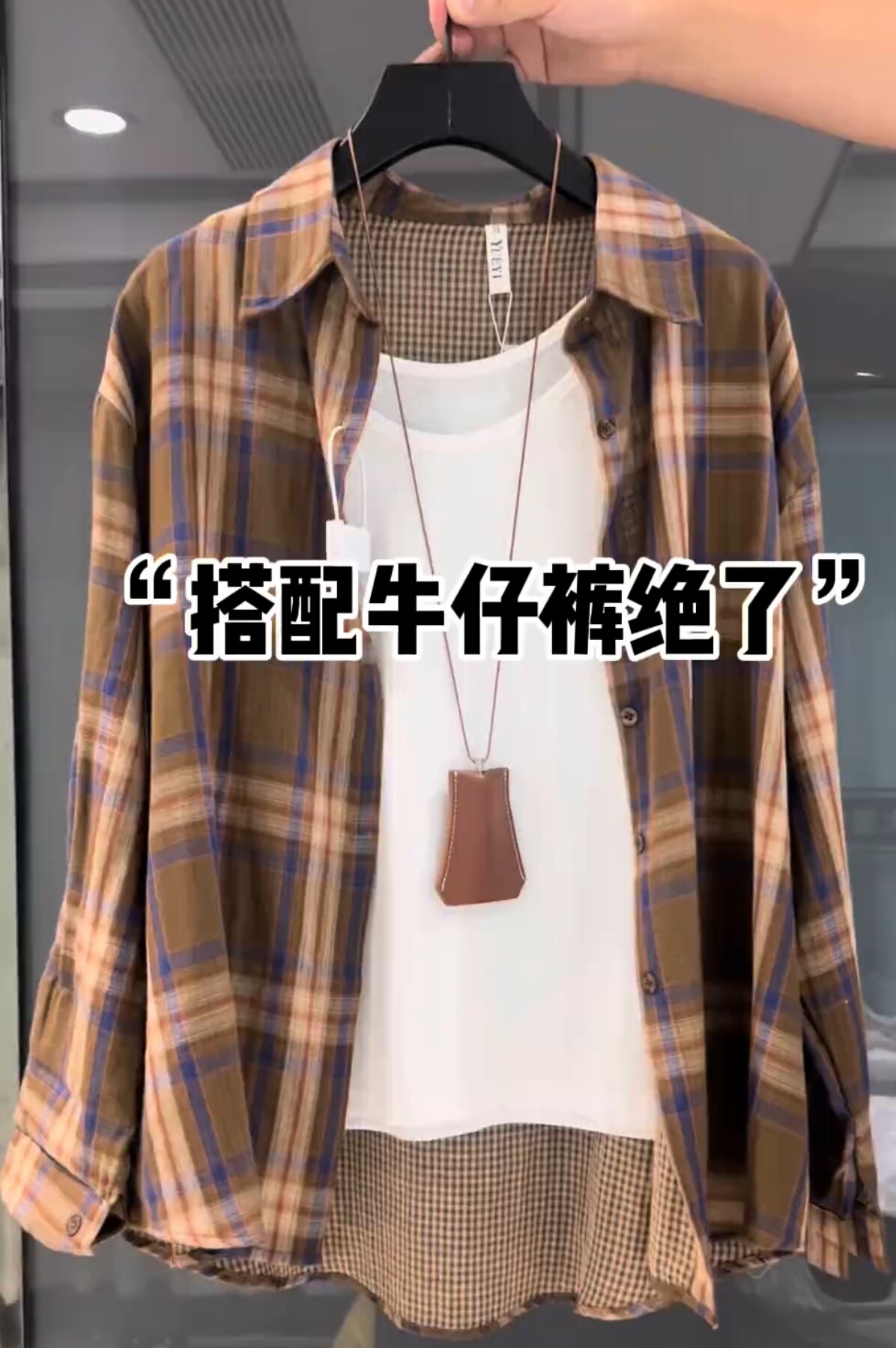 Korean Style Fashionable Ab-Side Double-Layer Cotton Gauze Plaid Long-Sleeve Shirt for Women, Early Autumn Lazy Style Loose Versatile Shirt Jacket