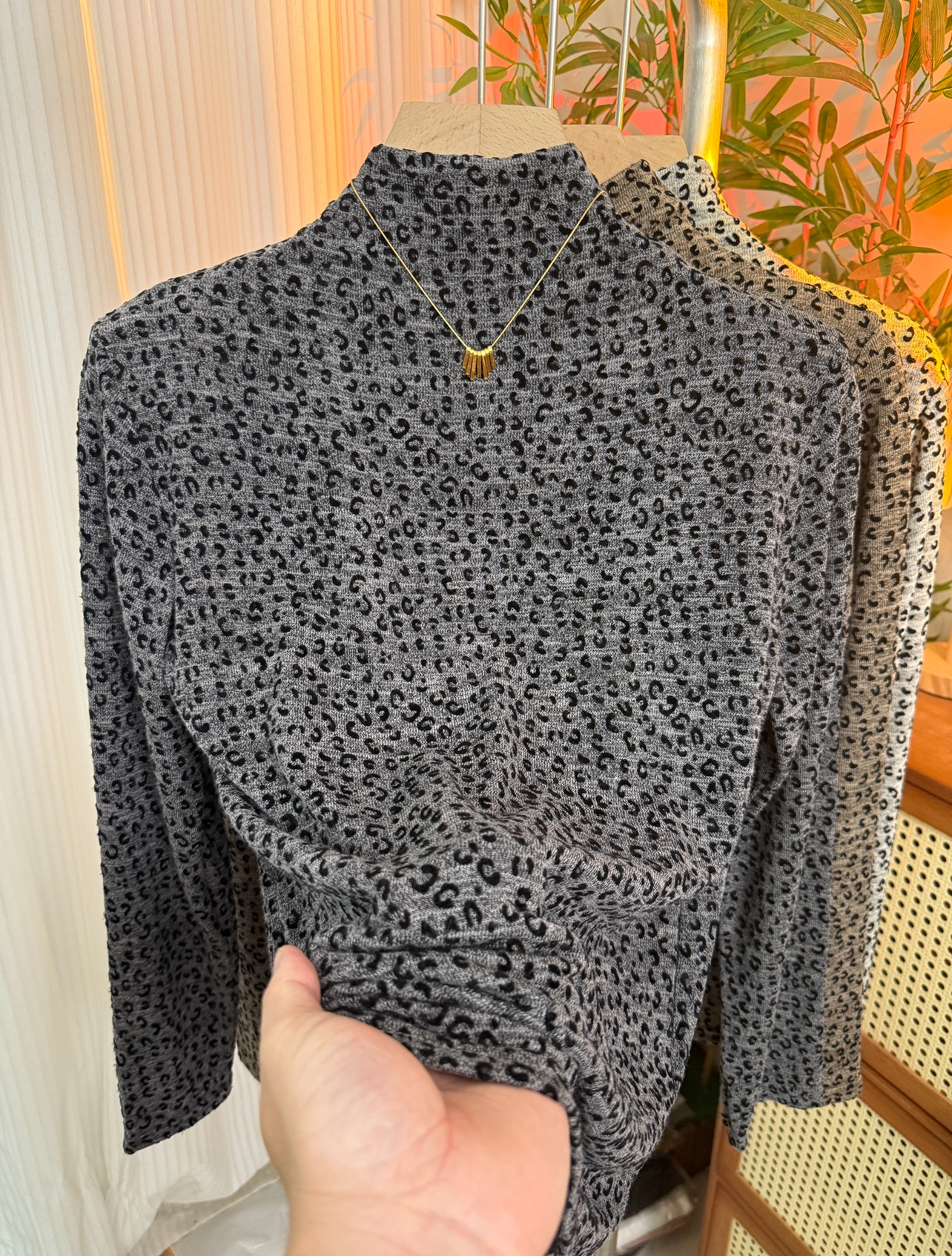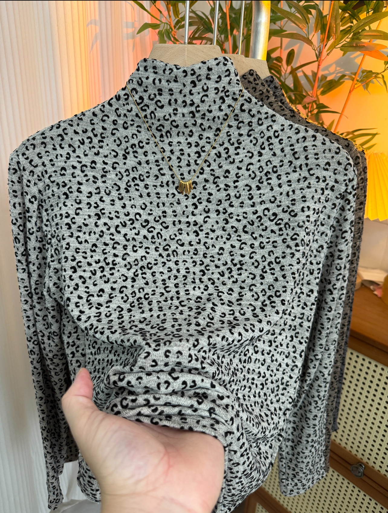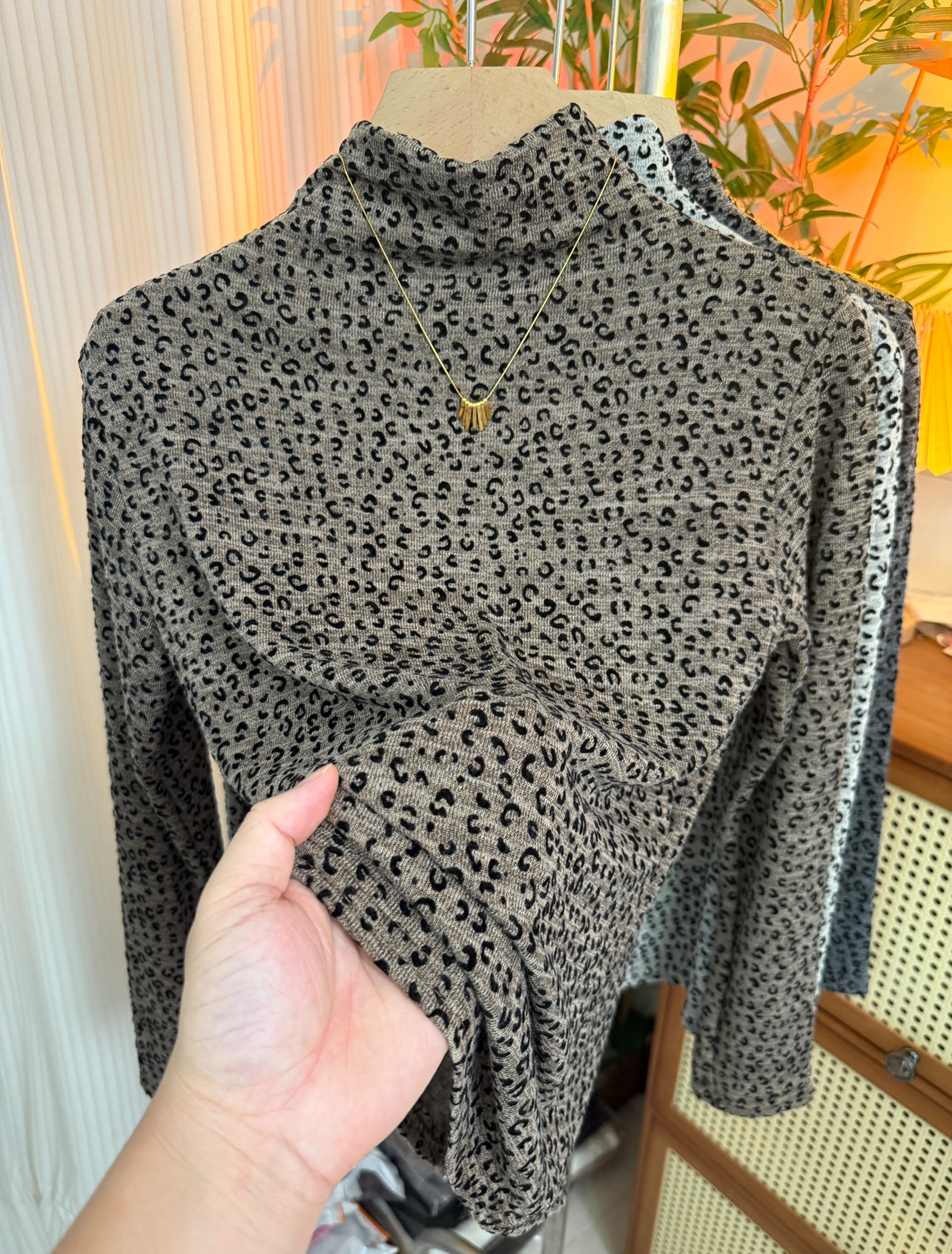 Korean fashion temperament leopard print flocking half turtleneck T-shirt for women 2025 new slim and versatile western-style bottoming shirt
