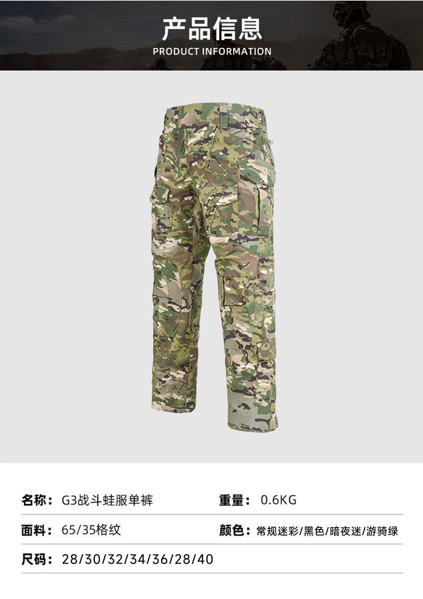 Authentic Replica G3 Combat Frog Suit Tactical Pants Outdoor Military Enthusiasts Wear-Resistant Scratch-Resistant Checkered Camouflage Frog Pants Quick-Drying Pants