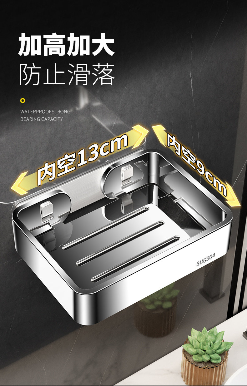 Italian Aisino 304 Stainless Steel Soap Dish Bathroom Punch-Free Wall-Mounted Drainage Rack Bathroom