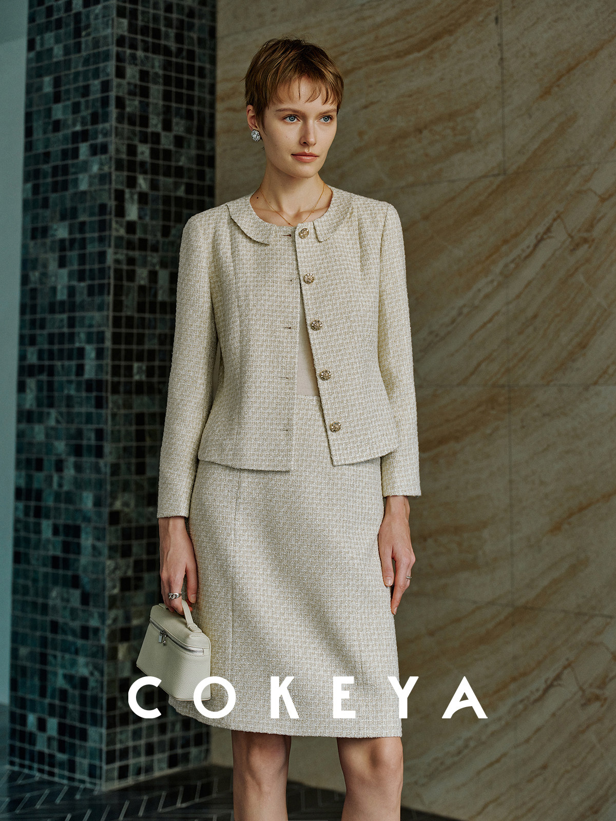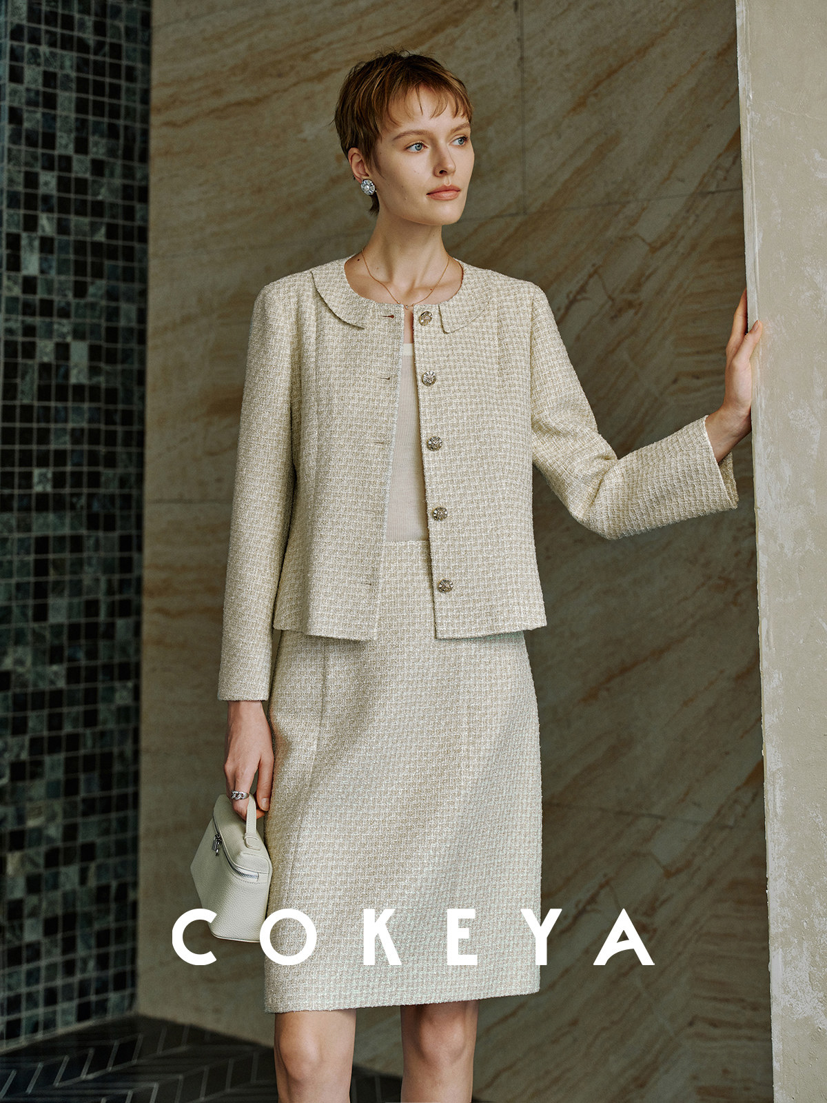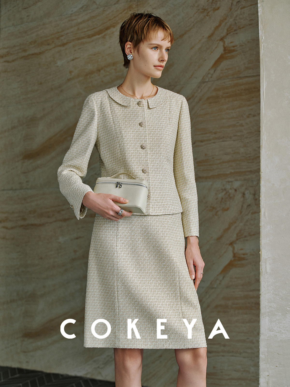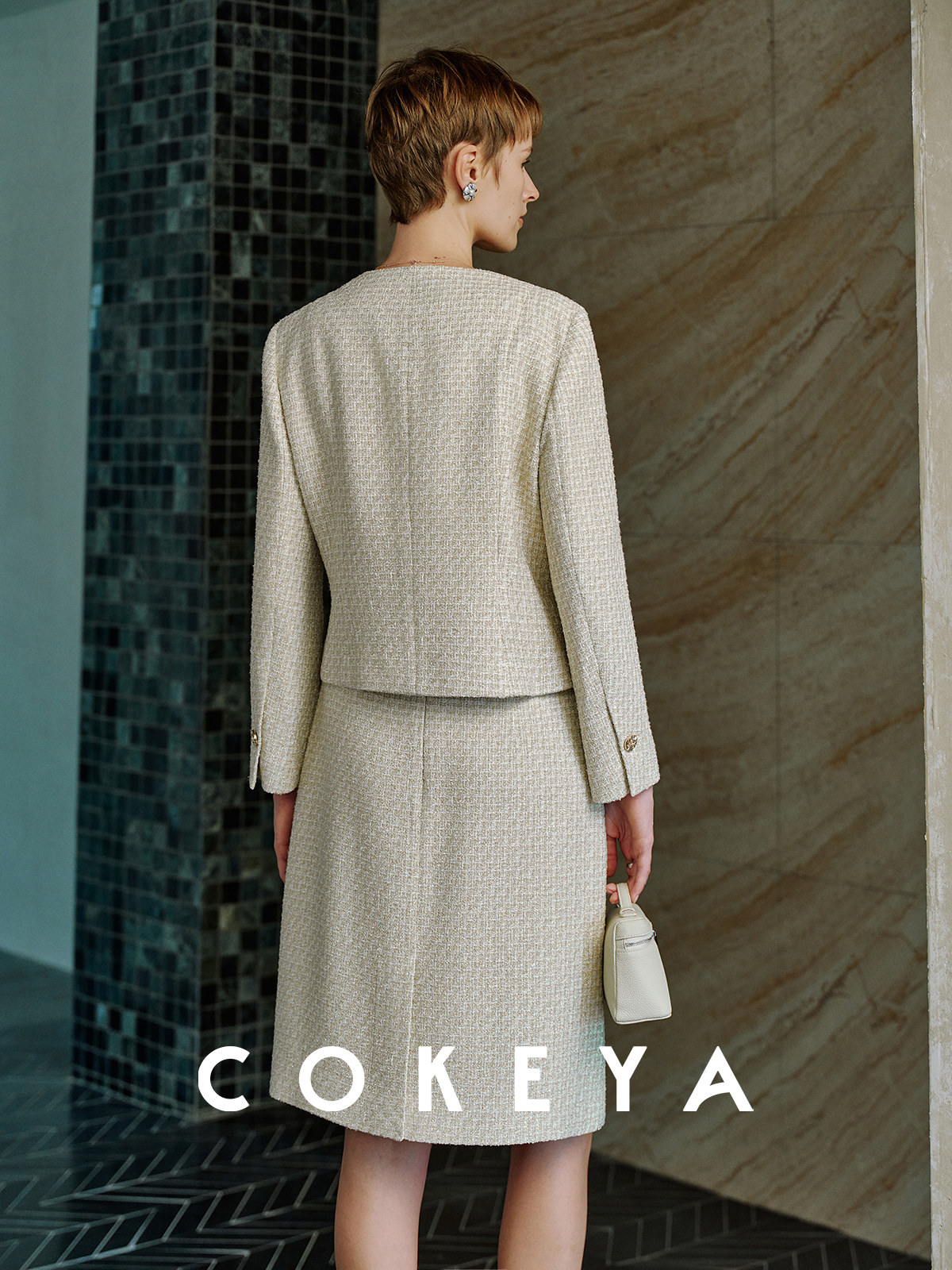 Cokeya/Second-Hand Vtg Legal Drama Style ~ High-Quality Wool Tweed Chanel-Style Jacket Women's Spring Skirt Suit
