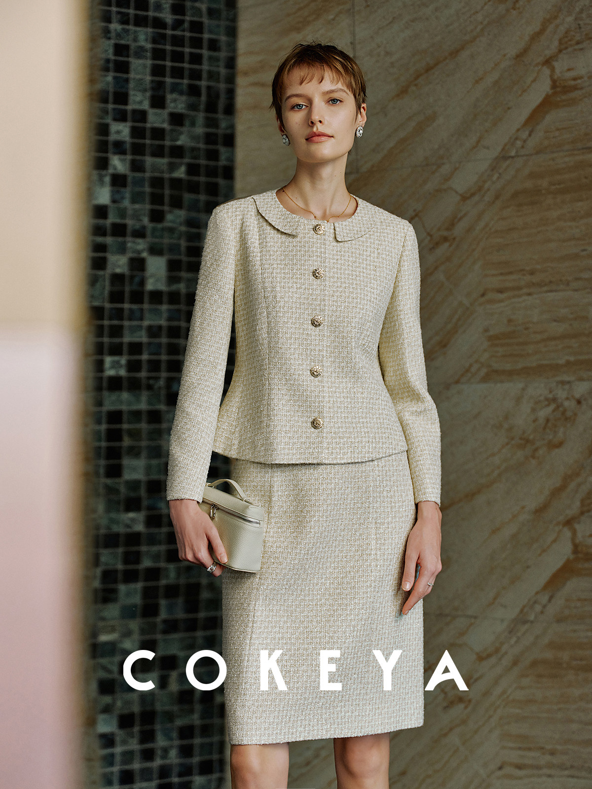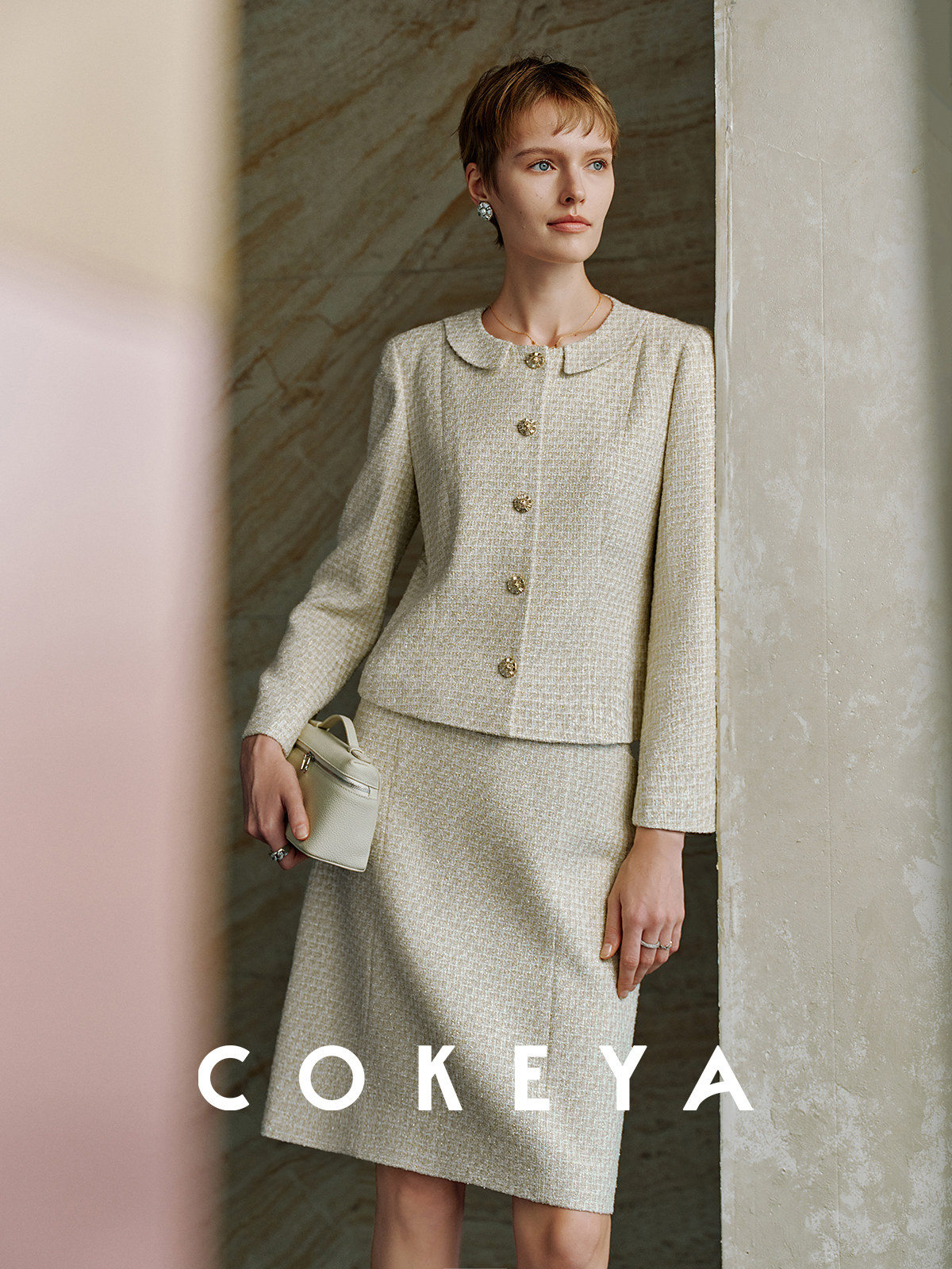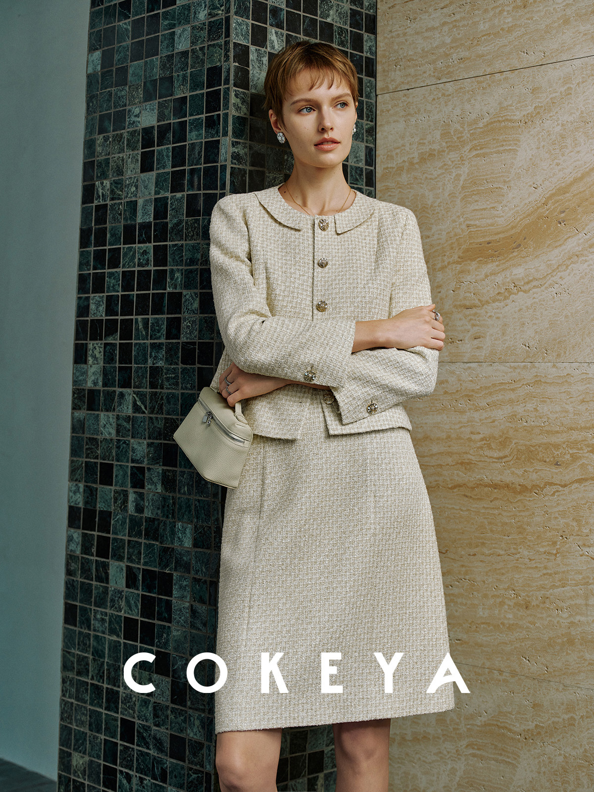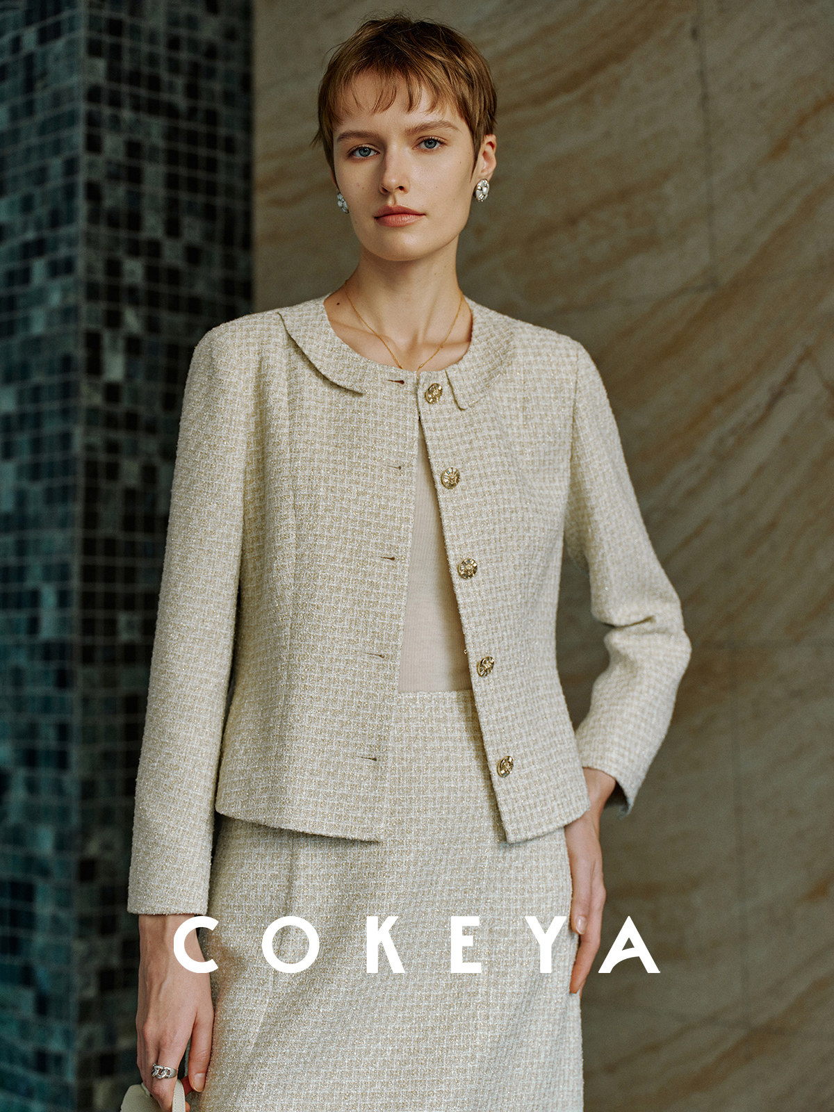 Cokeya/Second-Hand Vtg Legal Drama Style ~ High-Quality Wool Tweed Chanel-Style Jacket Women's Spring Skirt Suit