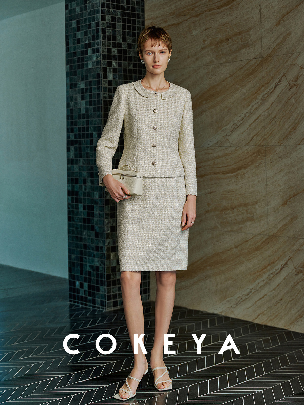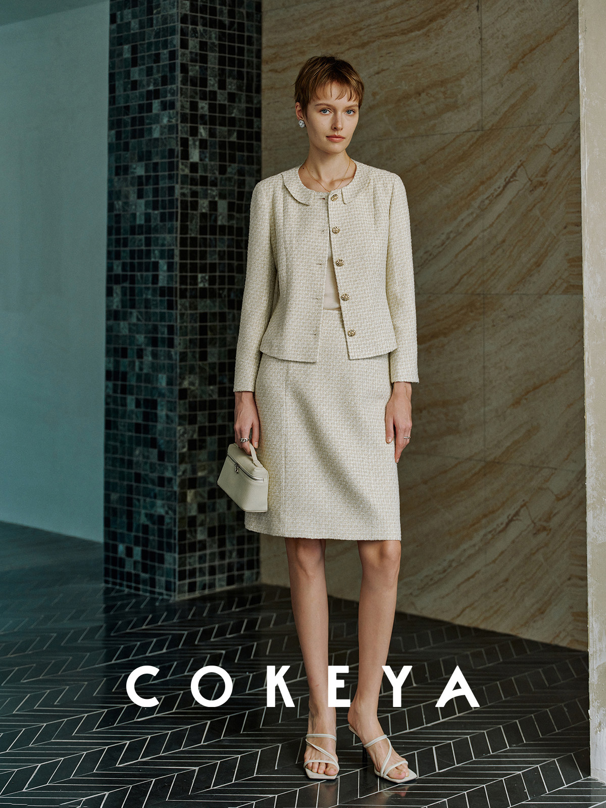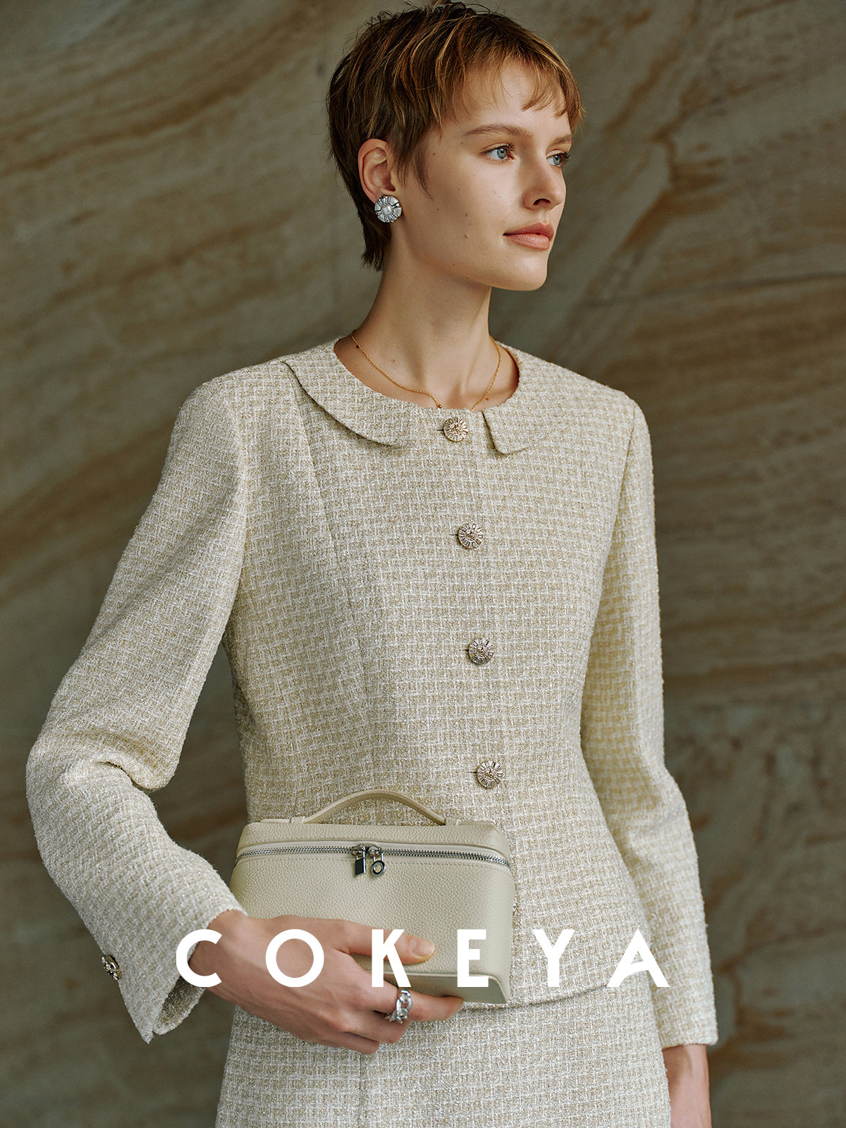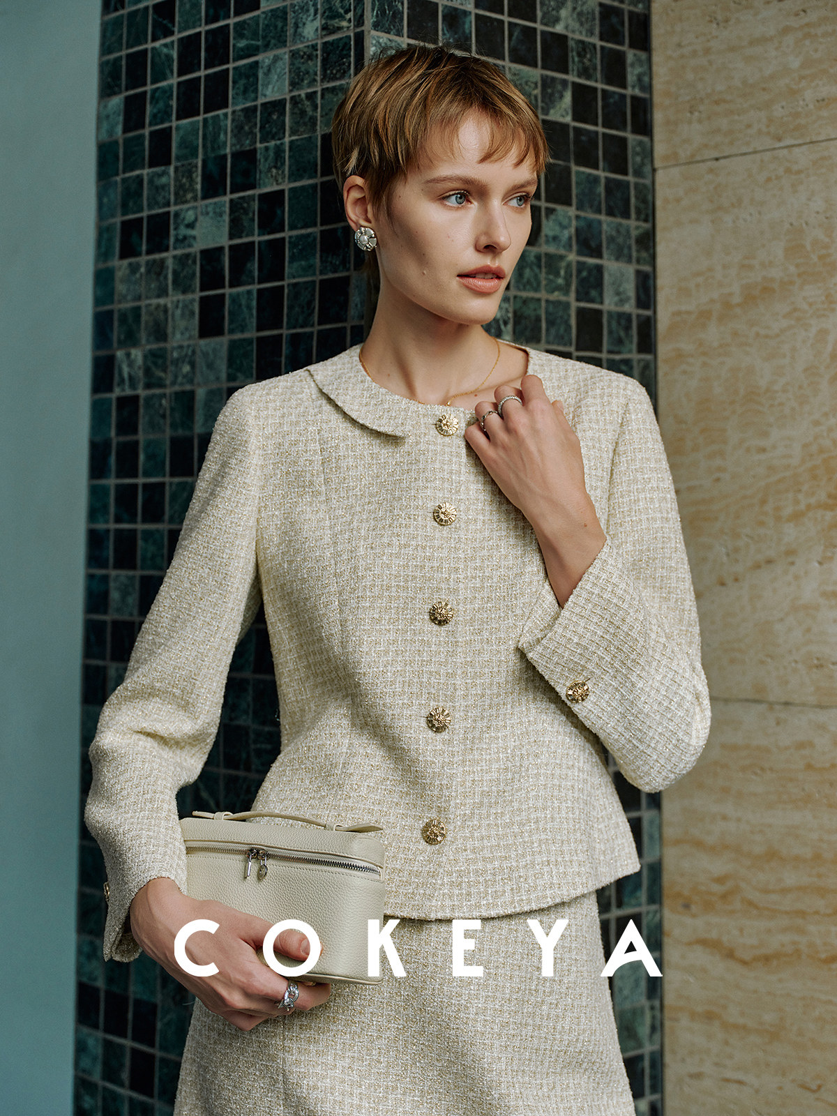 Cokeya/Second-Hand Vtg Legal Drama Style ~ High-Quality Wool Tweed Chanel-Style Jacket Women's Spring Skirt Suit